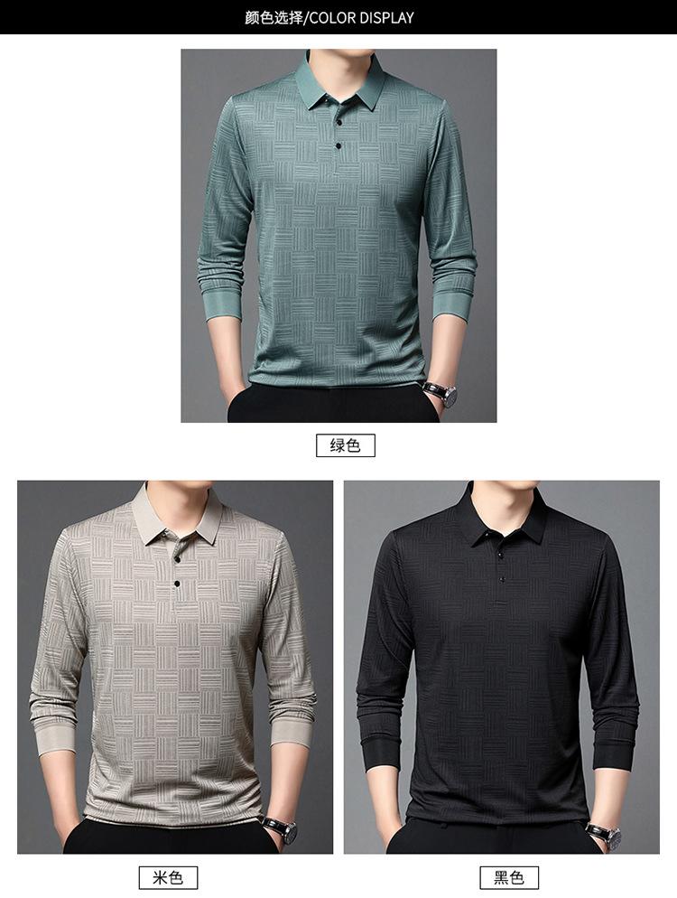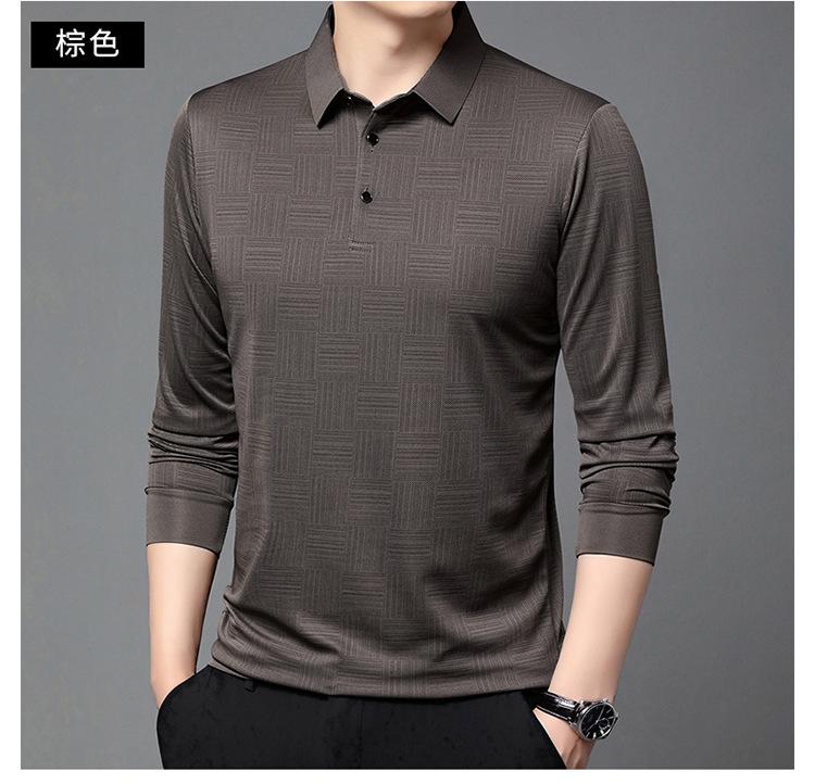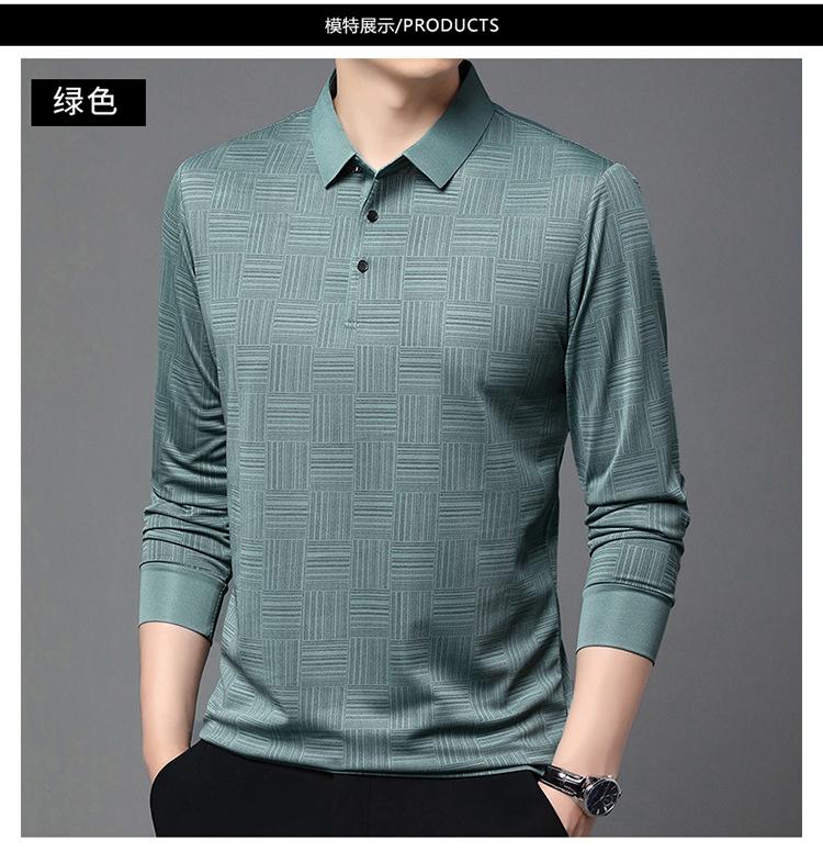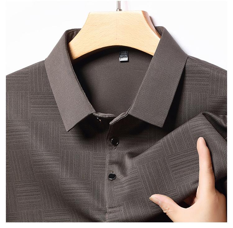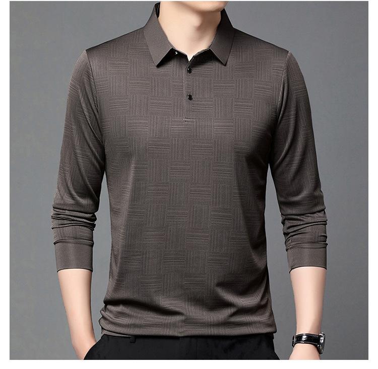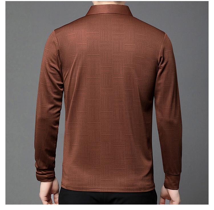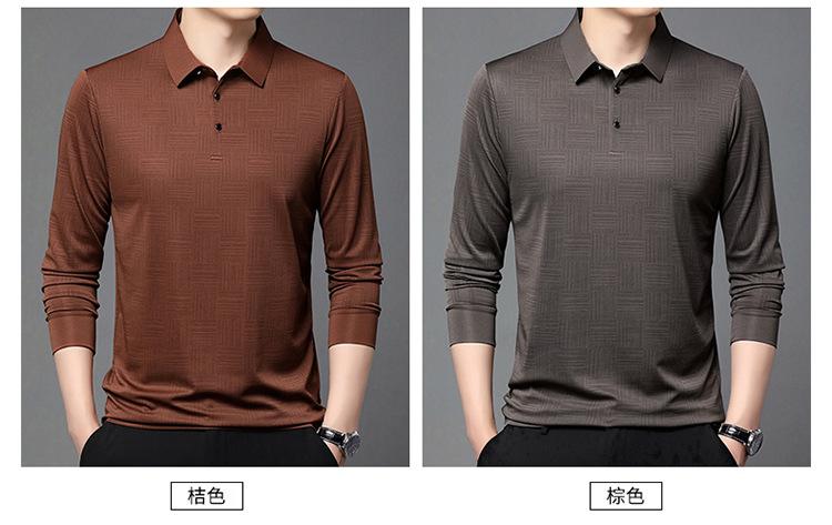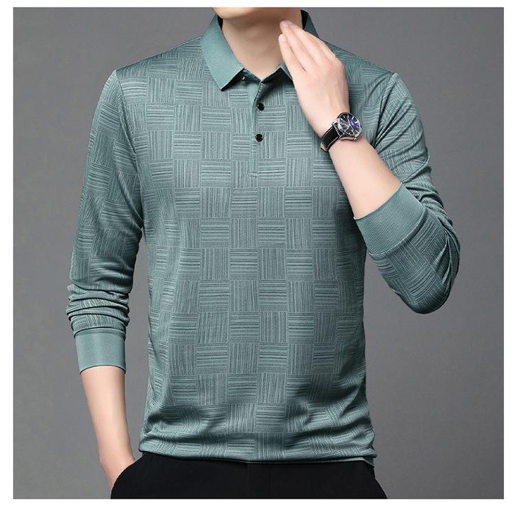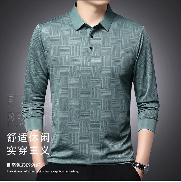 Camiseta de manga larga de jacquard para hombre, polo holgado de otoño, de negocios, de alta elasticidad, sin planchado, de moda, fina, 2025