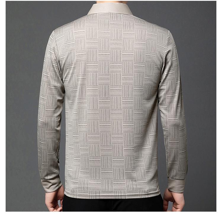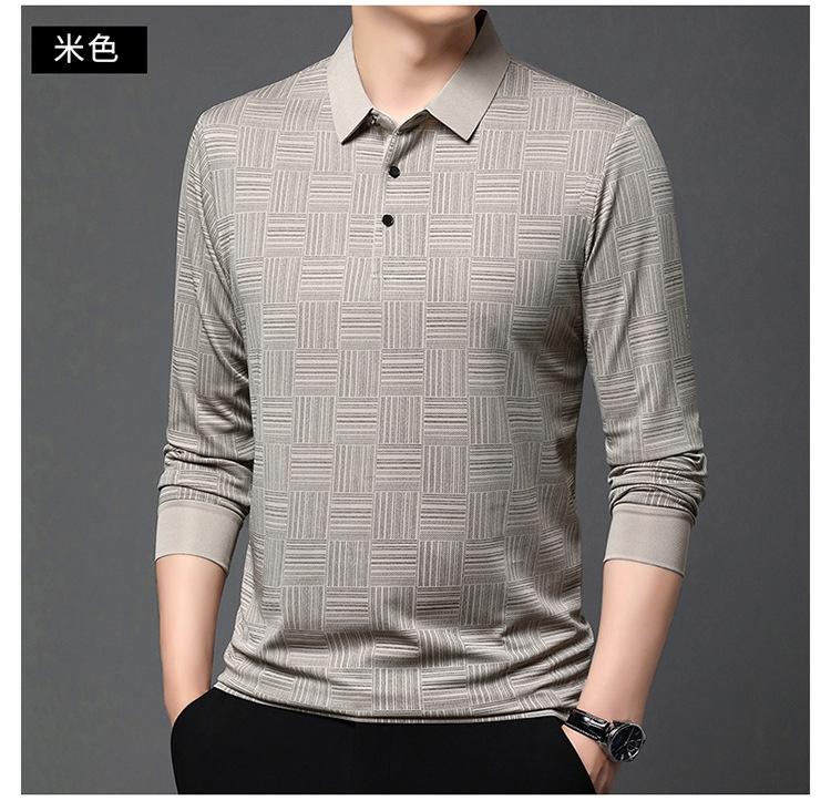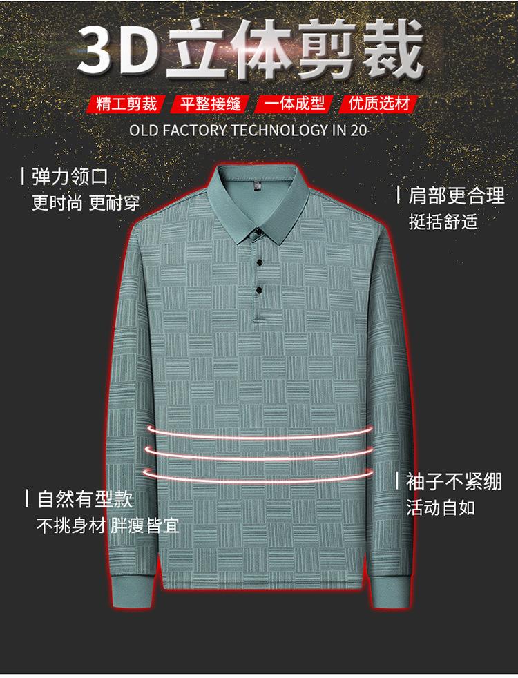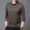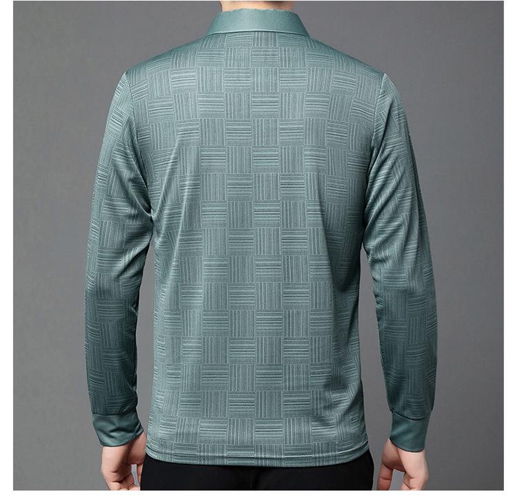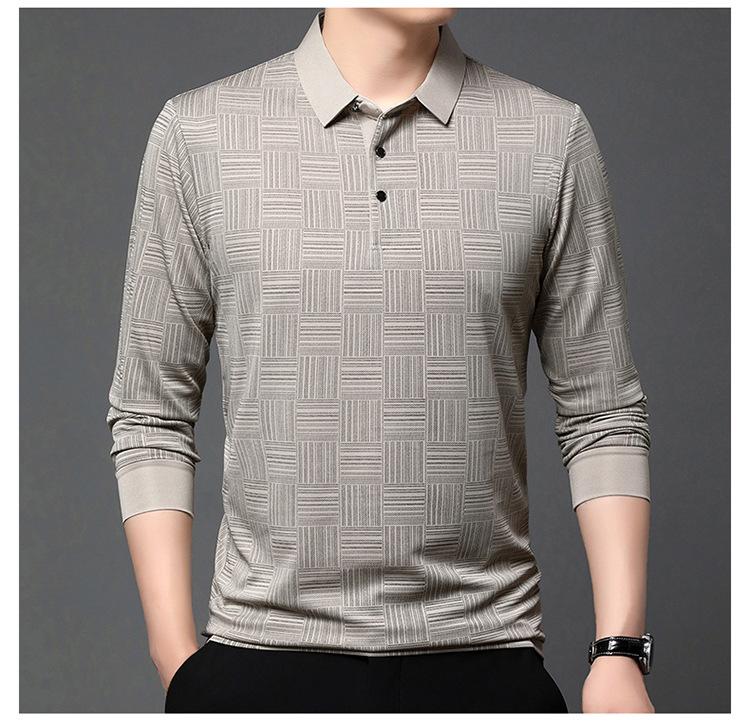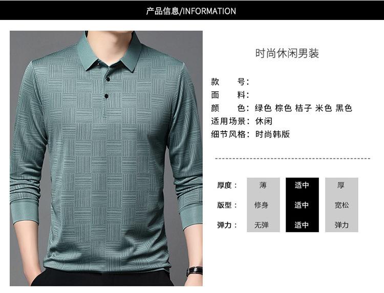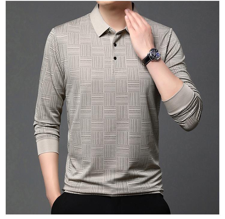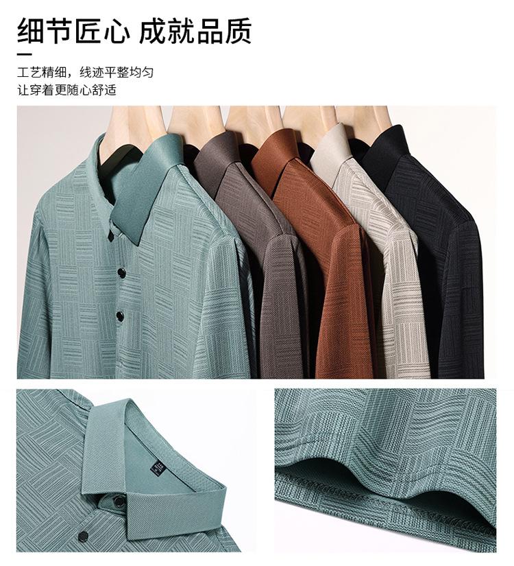 Camiseta de manga larga de jacquard para hombre, polo holgado de otoño, de negocios, de alta elasticidad, sin planchado, de moda, fina, 2025