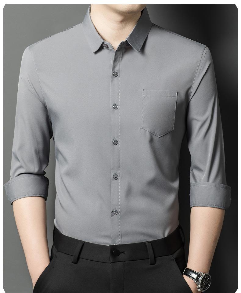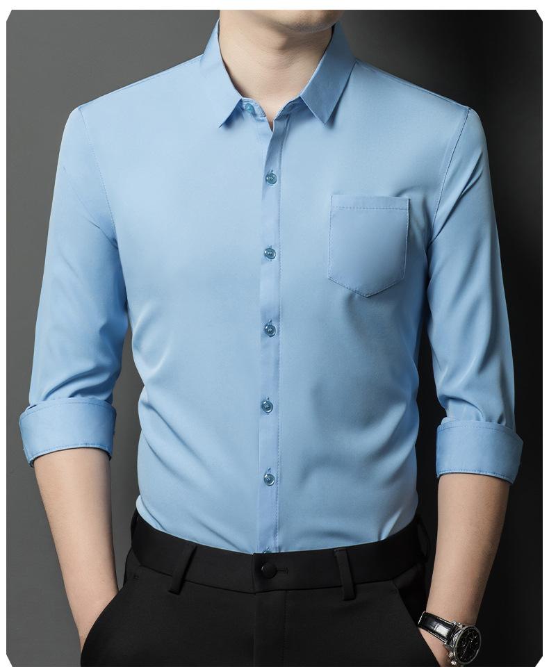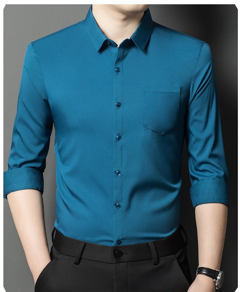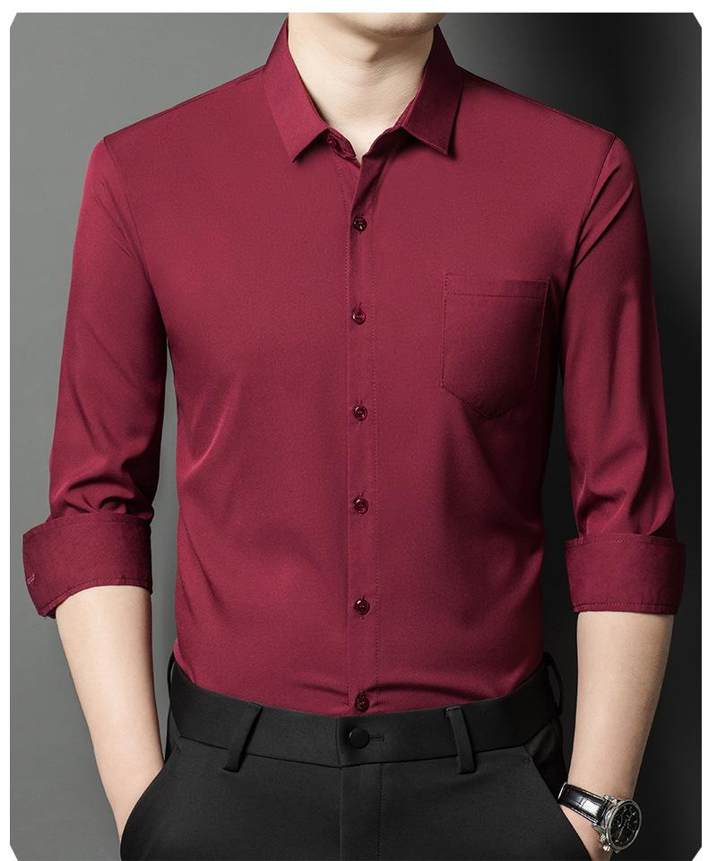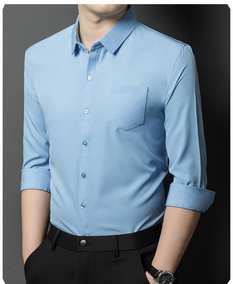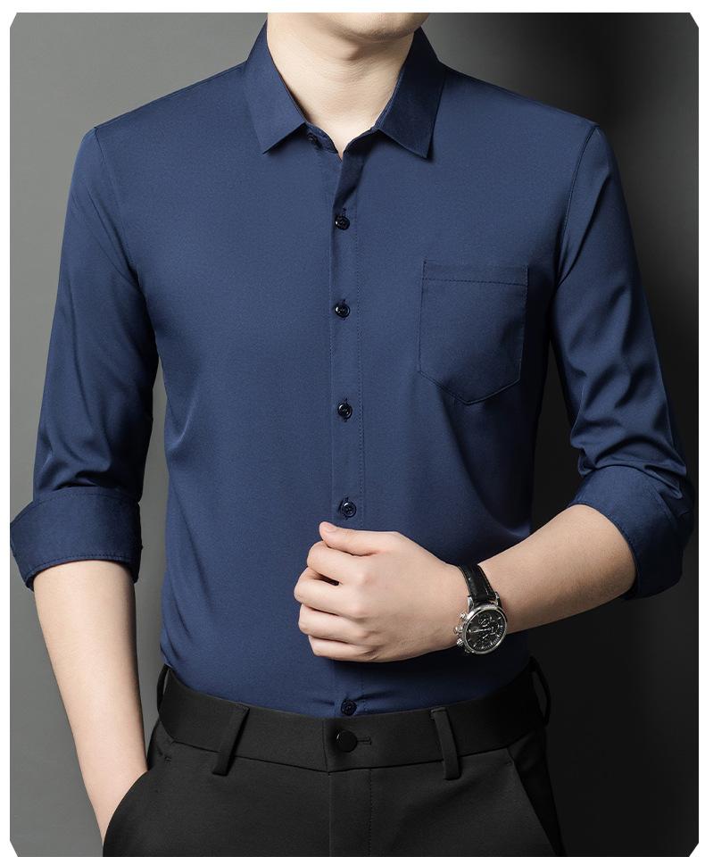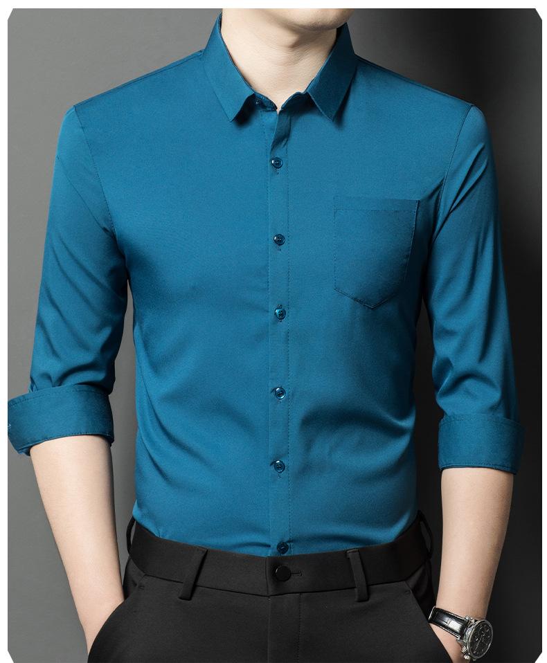 Camisa de manga larga para hombre, sin planchado, de primavera y otoño de 2025, informal, de negocios, para jóvenes y de mediana edad, con bolsillo, estilo transfronterizo