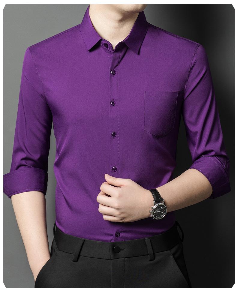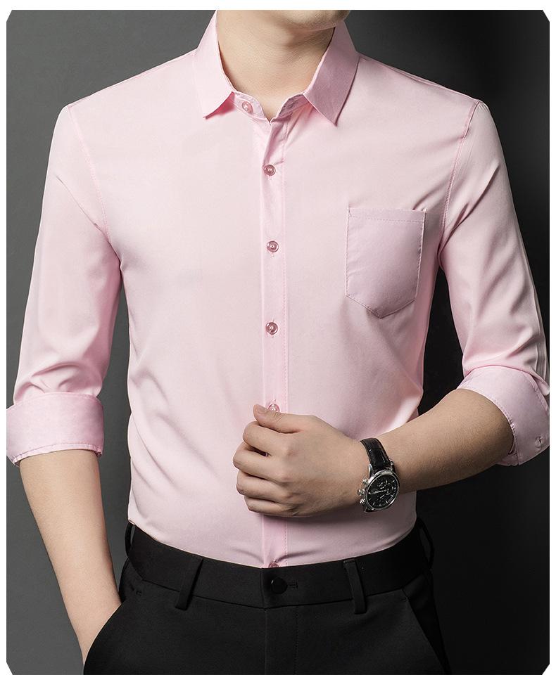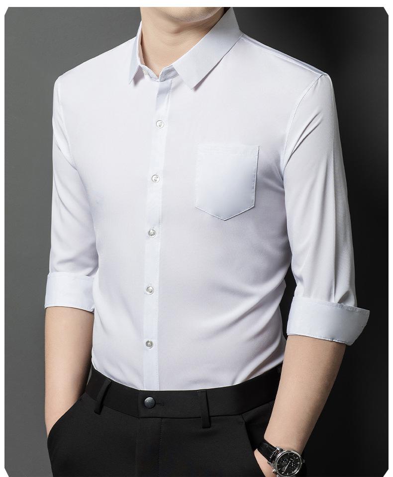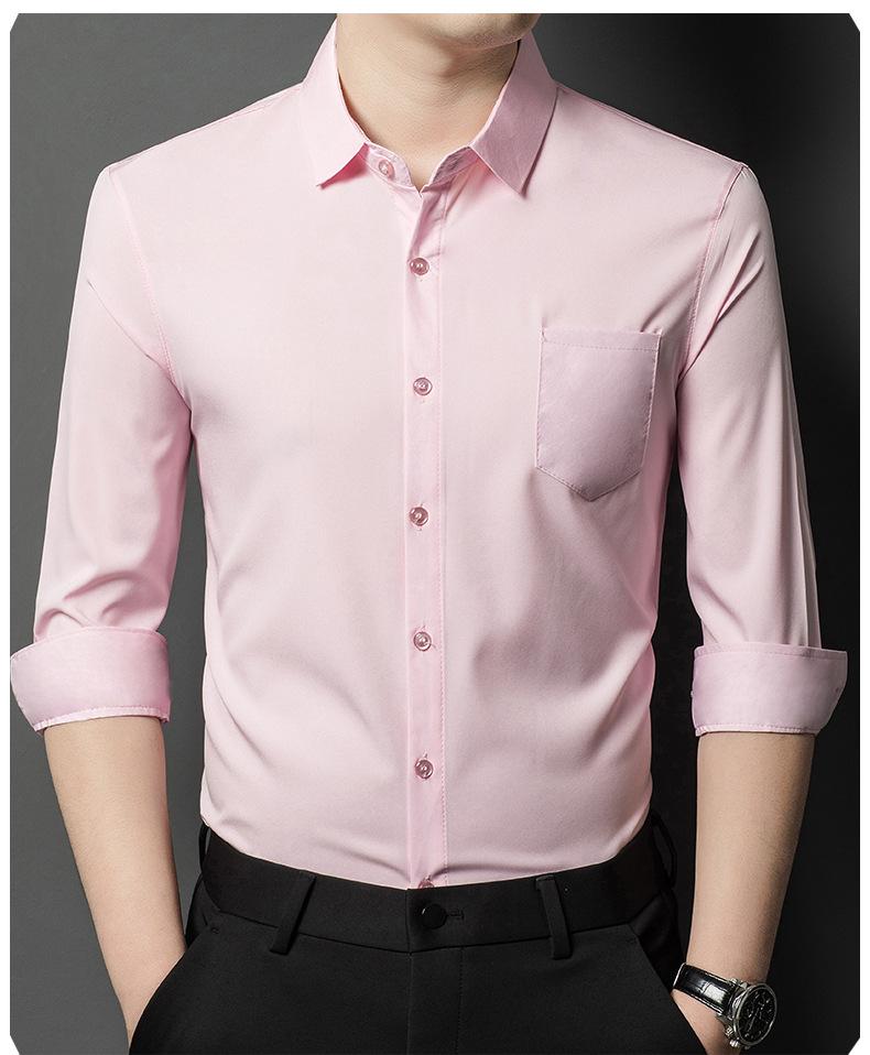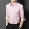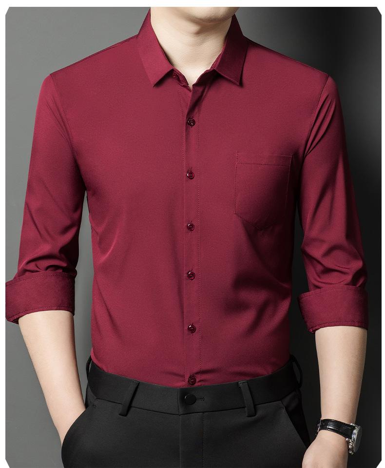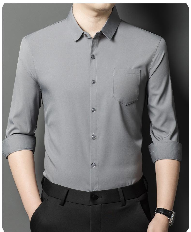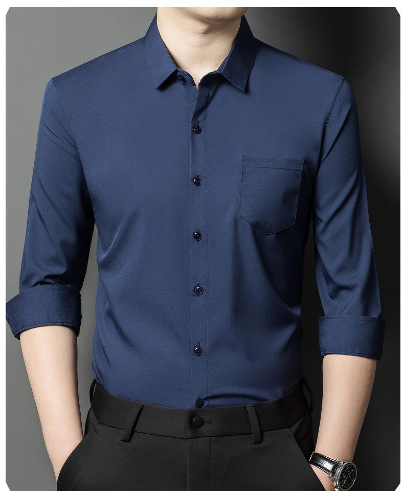 Camisa de manga larga para hombre, sin planchado, de primavera y otoño de 2025, informal, de negocios, para jóvenes y de mediana edad, con bolsillo, estilo transfronterizo