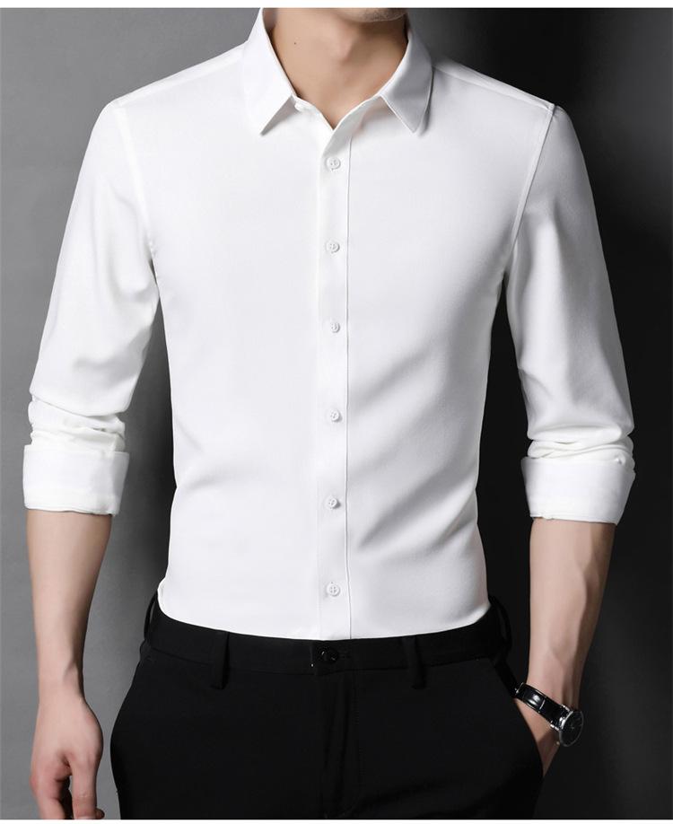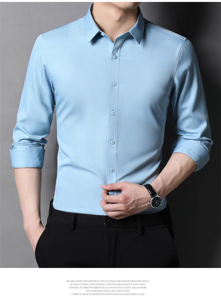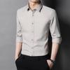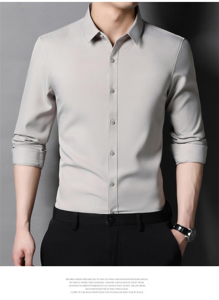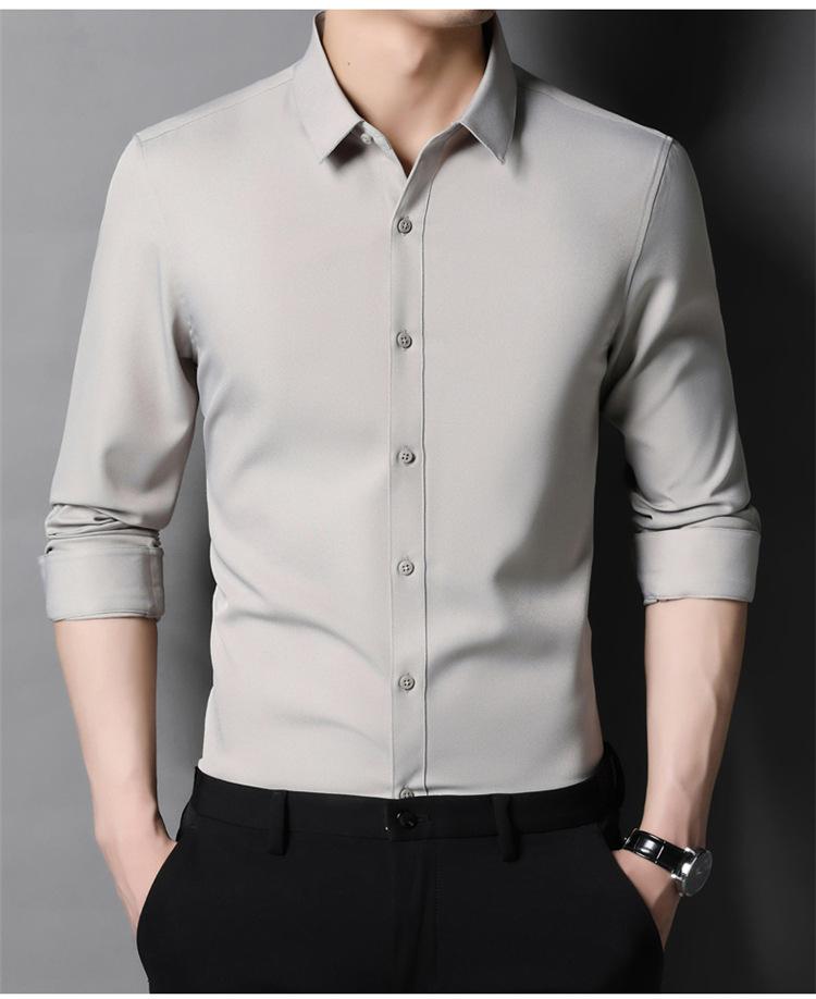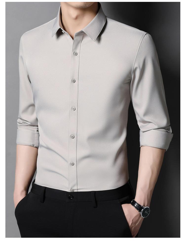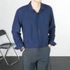 Camisa informal de negocios para hombre, estilo popular, de primavera y otoño, con solapa juvenil, de color liso, de manga larga, tipo cárdigan.