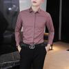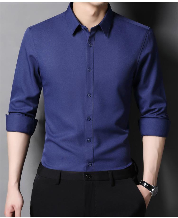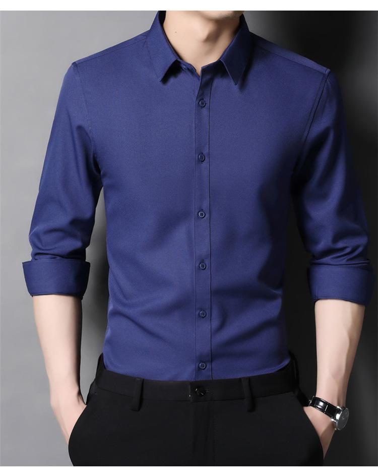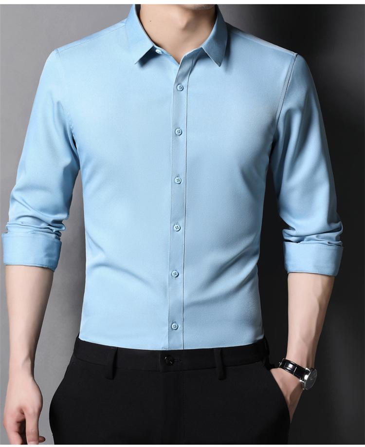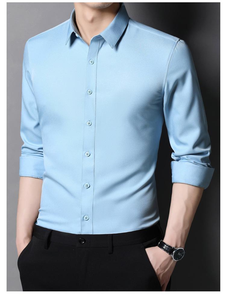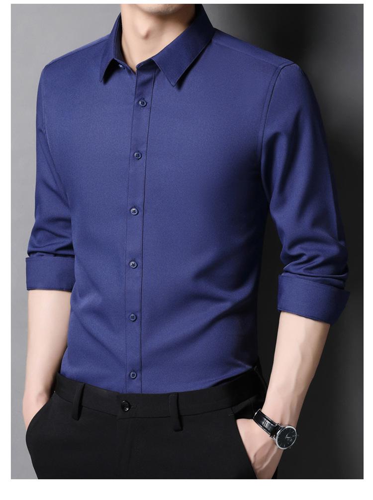 Camisa informal de negocios para hombre, estilo popular, de primavera y otoño, con solapa juvenil, de color liso, de manga larga, tipo cárdigan.