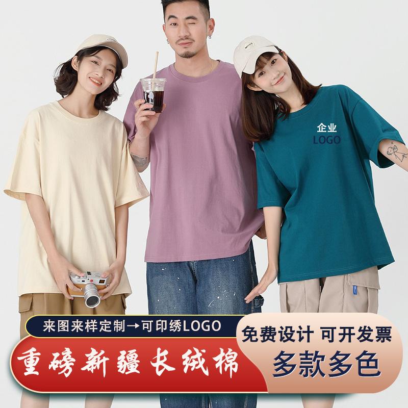 Camiseta de algodón con cuello redondo, manga corta y hombros anchos, con publicidad, logo, holgada, ropa de grupo, camiseta bordada