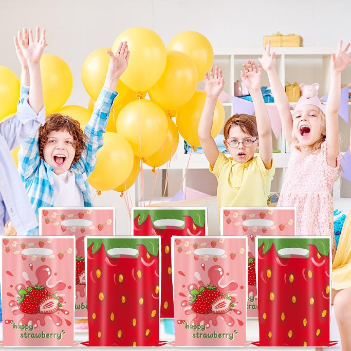 Bolsa de Regalo de Fiesta Temática de Niña Fresa Rosa Transfronteriza Bolsa de Regalo Trasera Bolsa Tote Desechable para Dulces Bolsa Decorativa