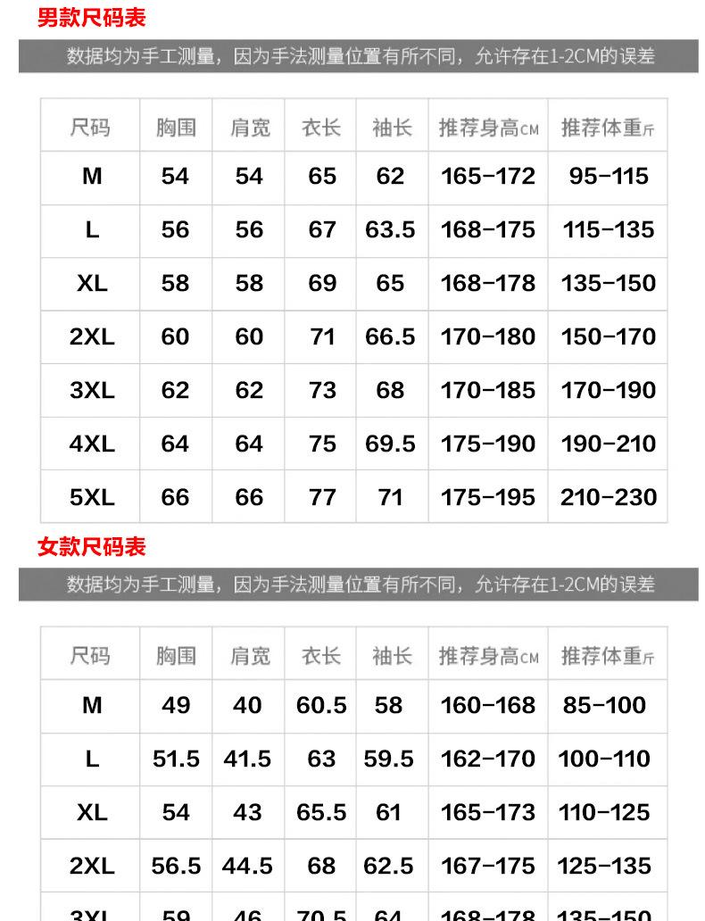 Male m 42.5-57.5kg, Male l 57.5-67.5kg, Male xl 67.5-75kg, Male 2xl 75-85kg, Male 3xl 85-95kg, Male 4xl 95-105...