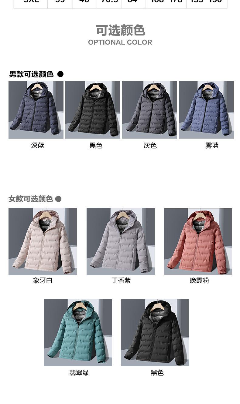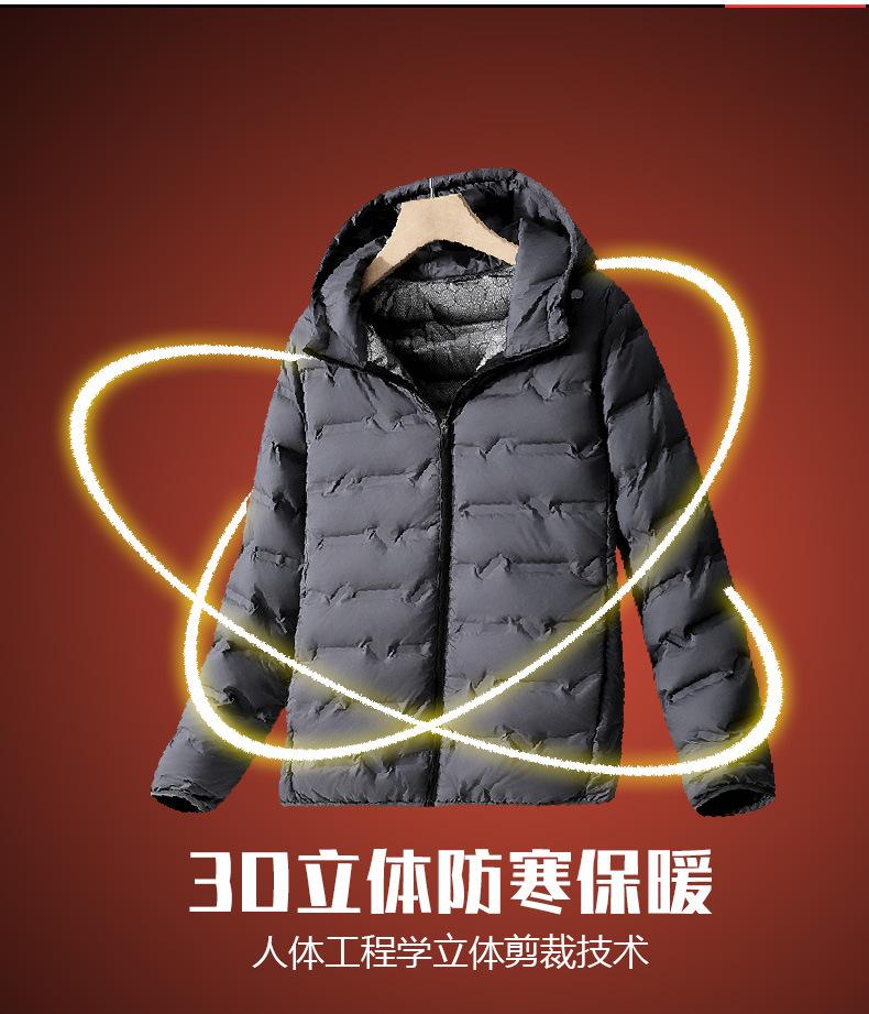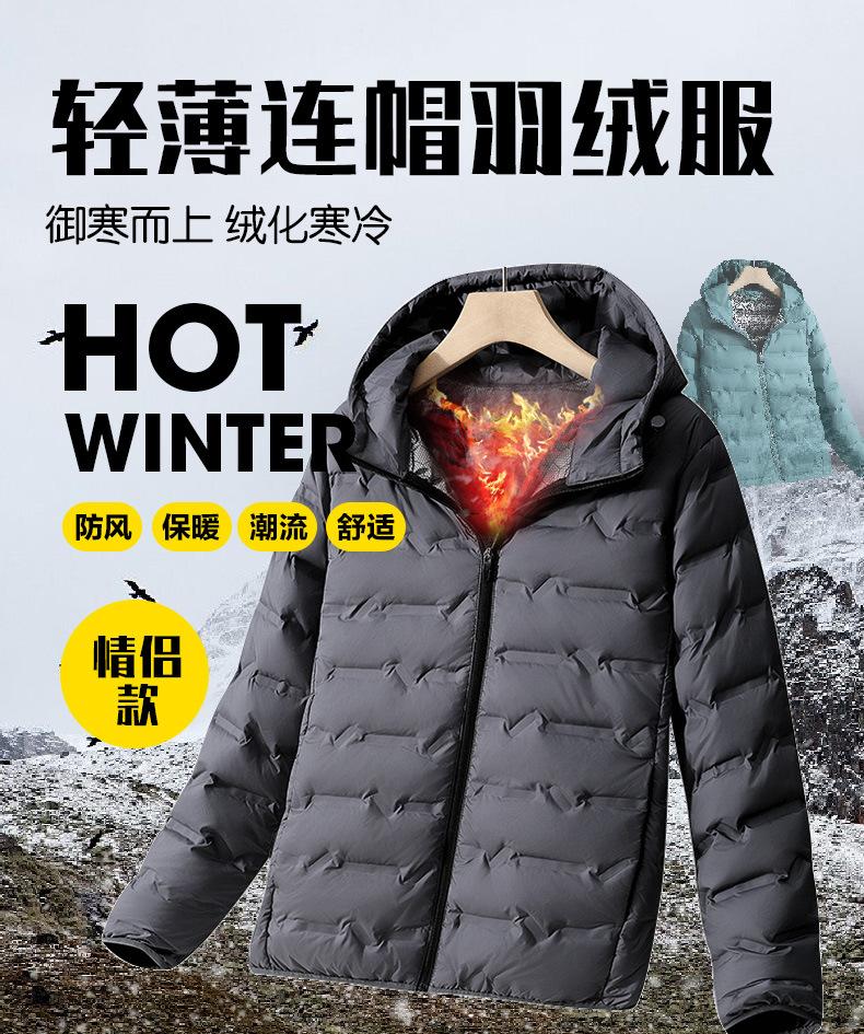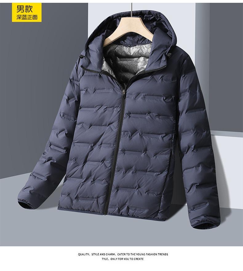 Chamarra de Plumas para Hombre Otoño e Invierno a Prueba de Frío y Cálida Ligera Grafeno Plumón de Pato Blanco Pareja Exterior Color Puro con Capucha