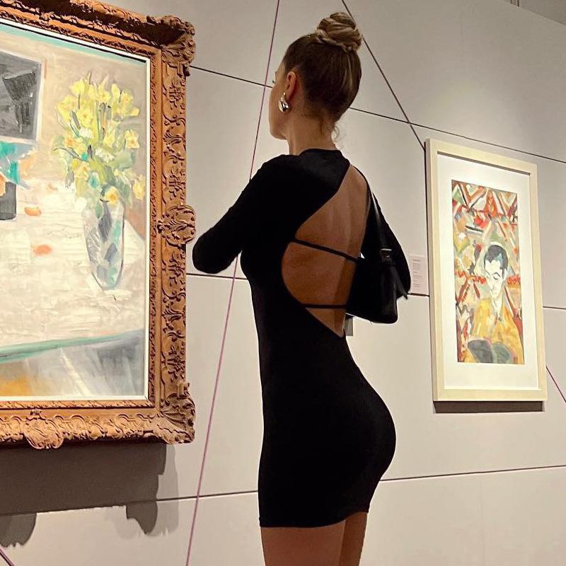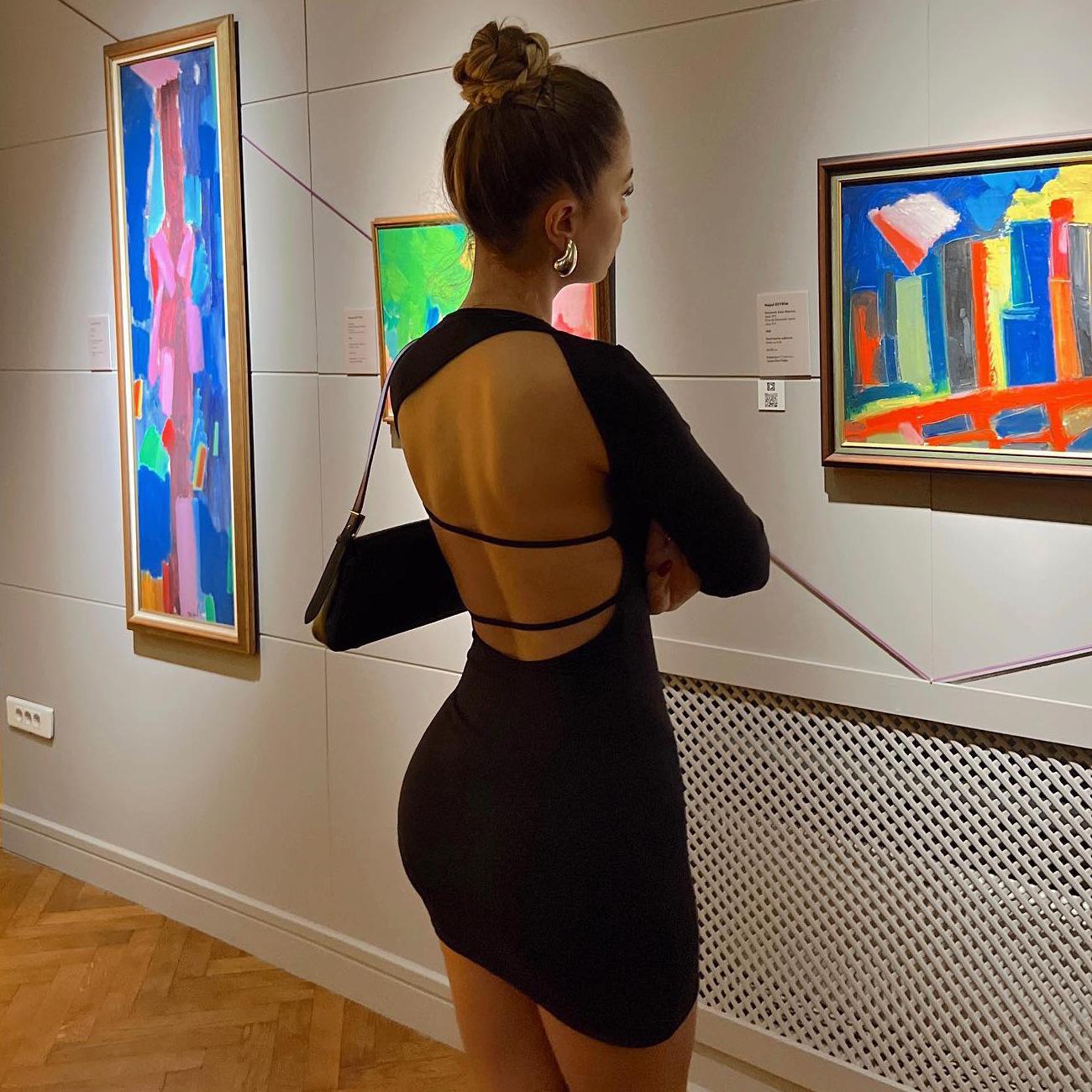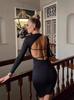 Vestido ajustado de estilo europeo y americano para mujer, moda de otoño, cuello redondo, manga larga, espalda descubierta, sexy, a la cadera, venta al por mayor