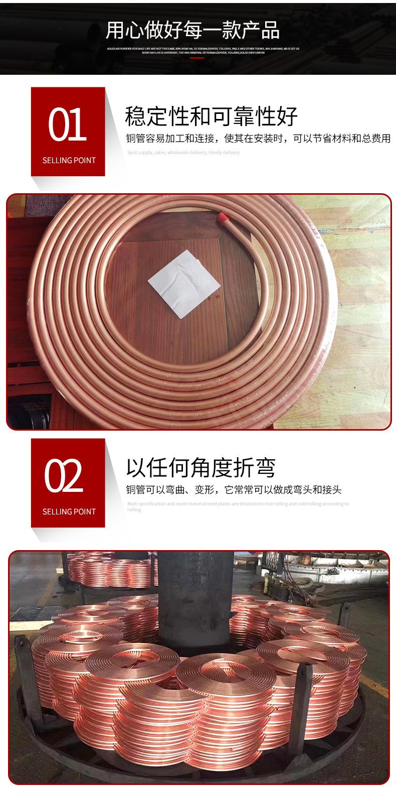 Bobina de Tubo de Cobre Tp2 para Soldadura Tubo de Cobre para Aire Acondicionado Diámetro Grande Procesamiento Sin Costura Soldadura Cobre Puro Mejora Especial T2