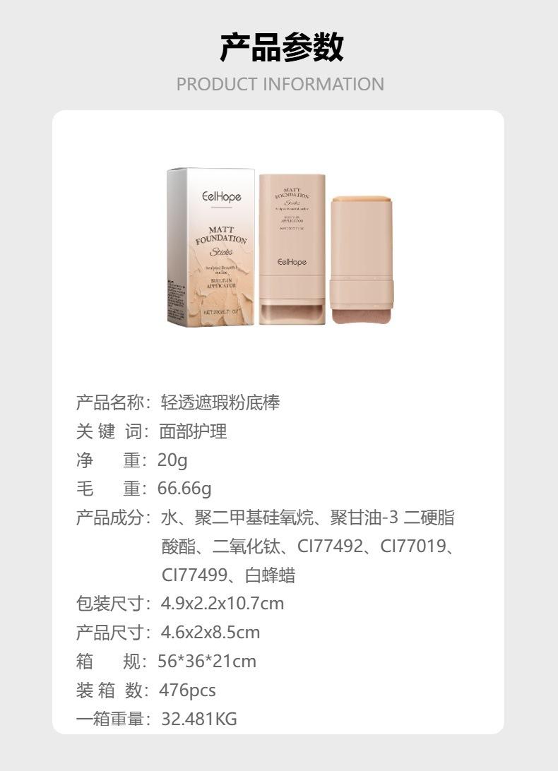 Base de maquillaje en barra EelHope, hidratante, iluminadora, ligera y transparente. Corrector ligero, hidratante, sin maquillaje.