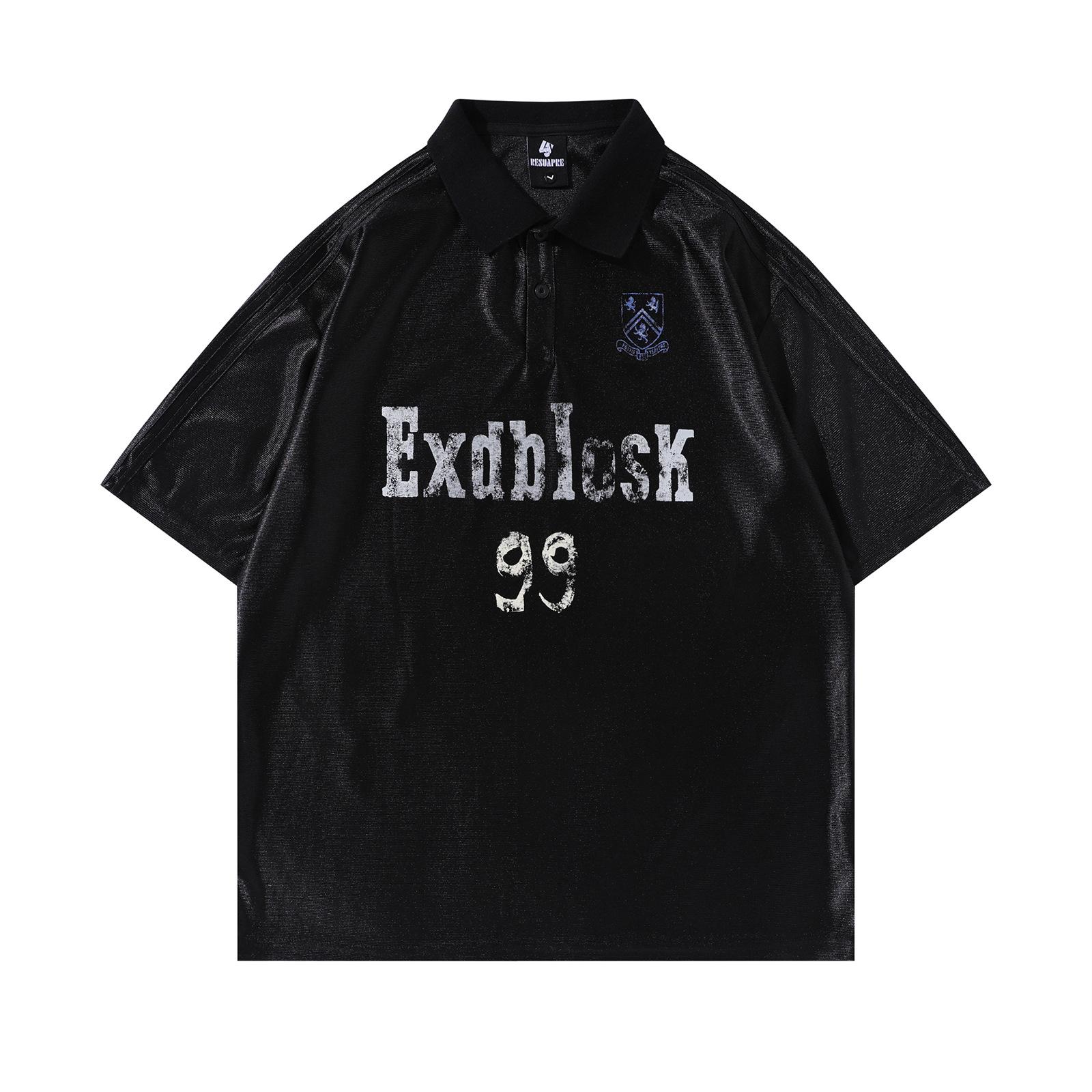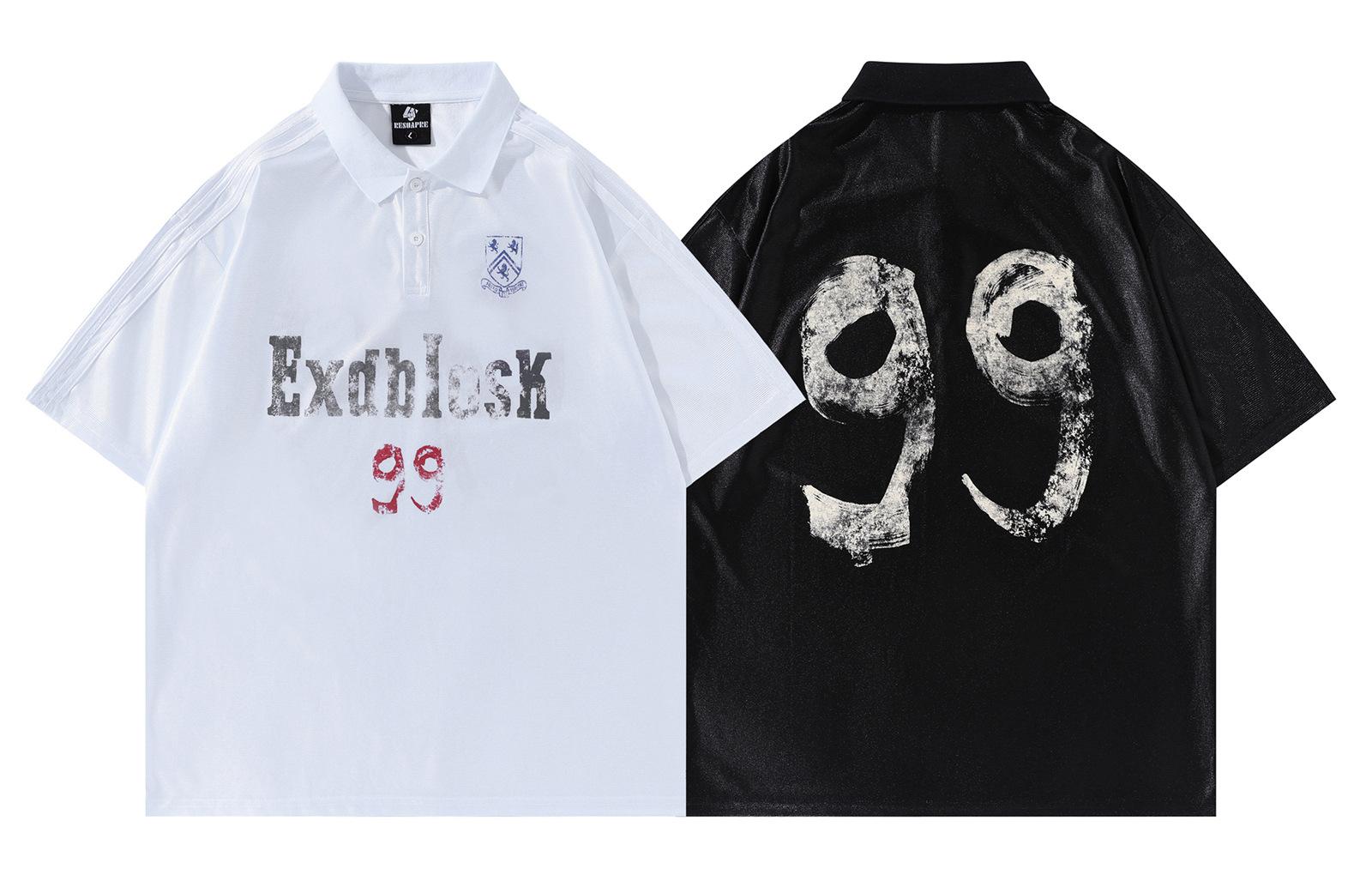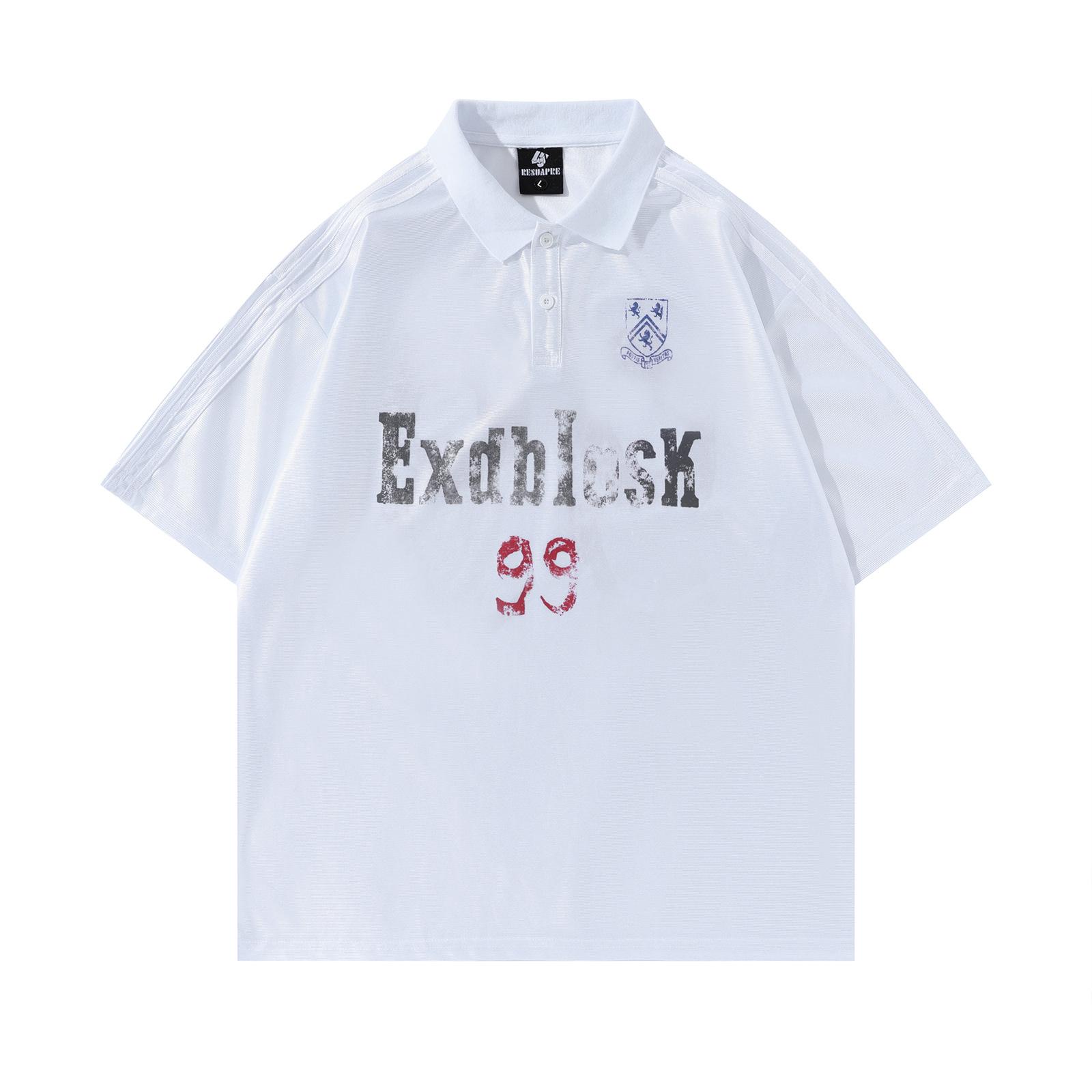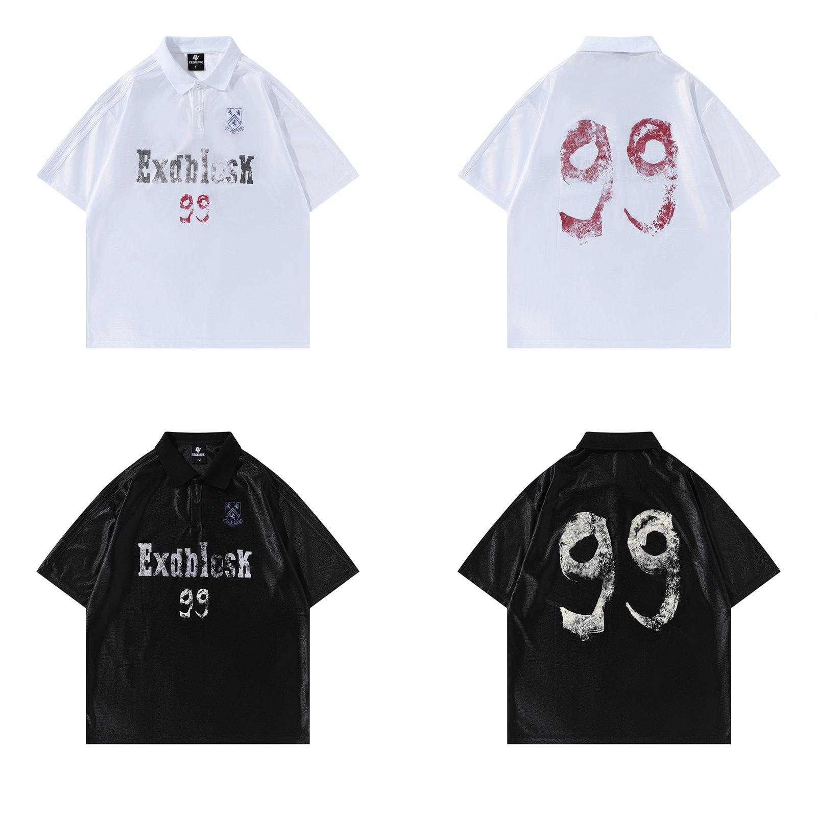 Camiseta de manga corta con solapa estampada y diseño callejero de marca de moda para hombre, top informal holgado y combinable para verano 2025.