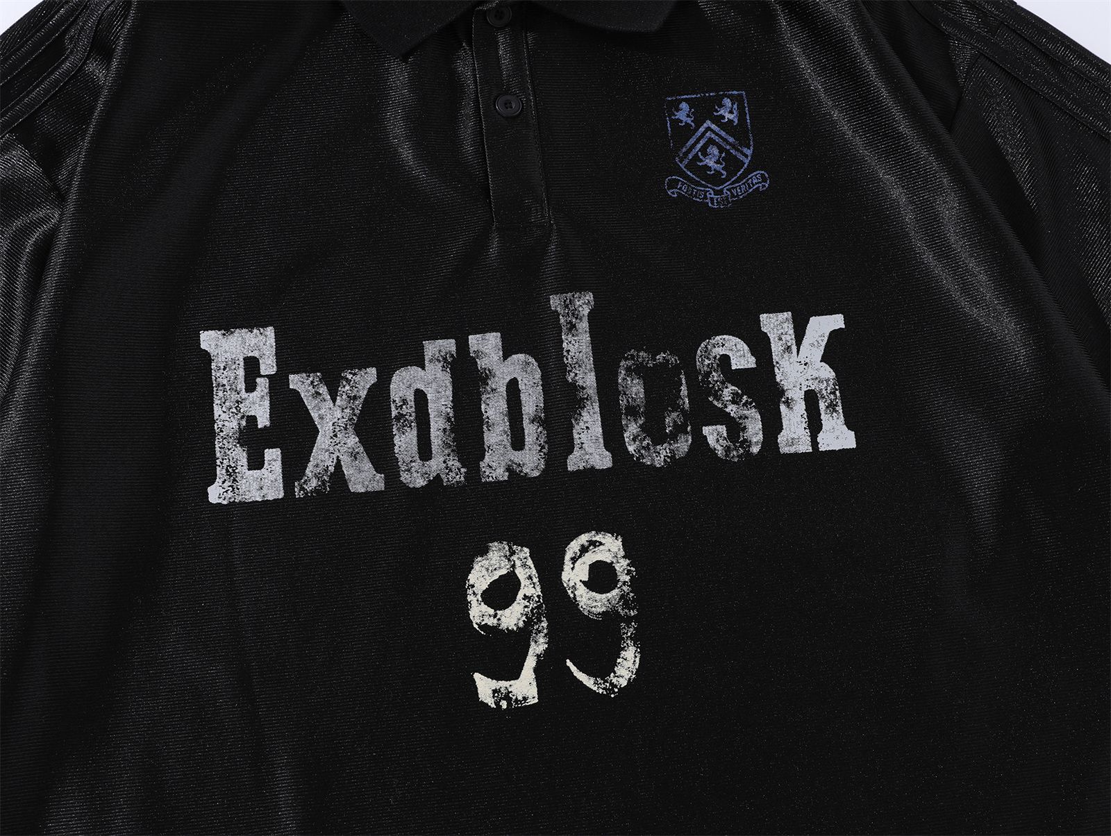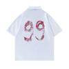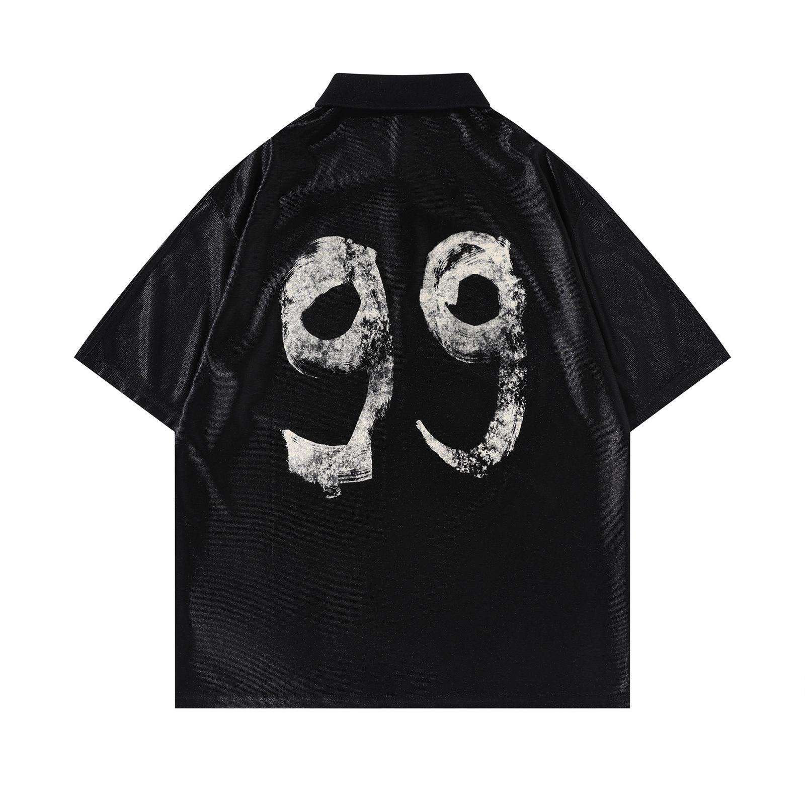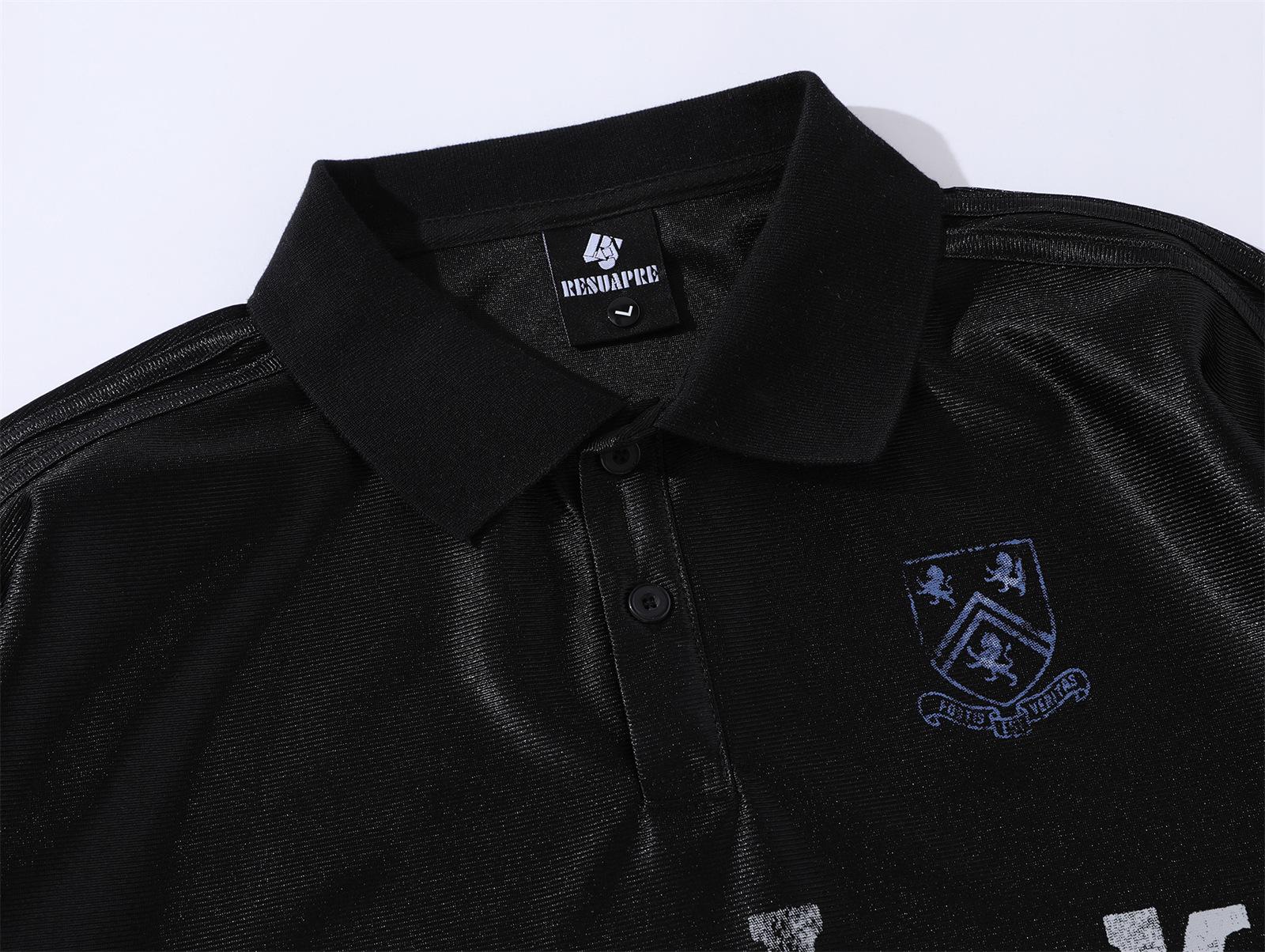 Camiseta de manga corta con solapa estampada y diseño callejero de marca de moda para hombre, top informal holgado y combinable para verano 2025.
