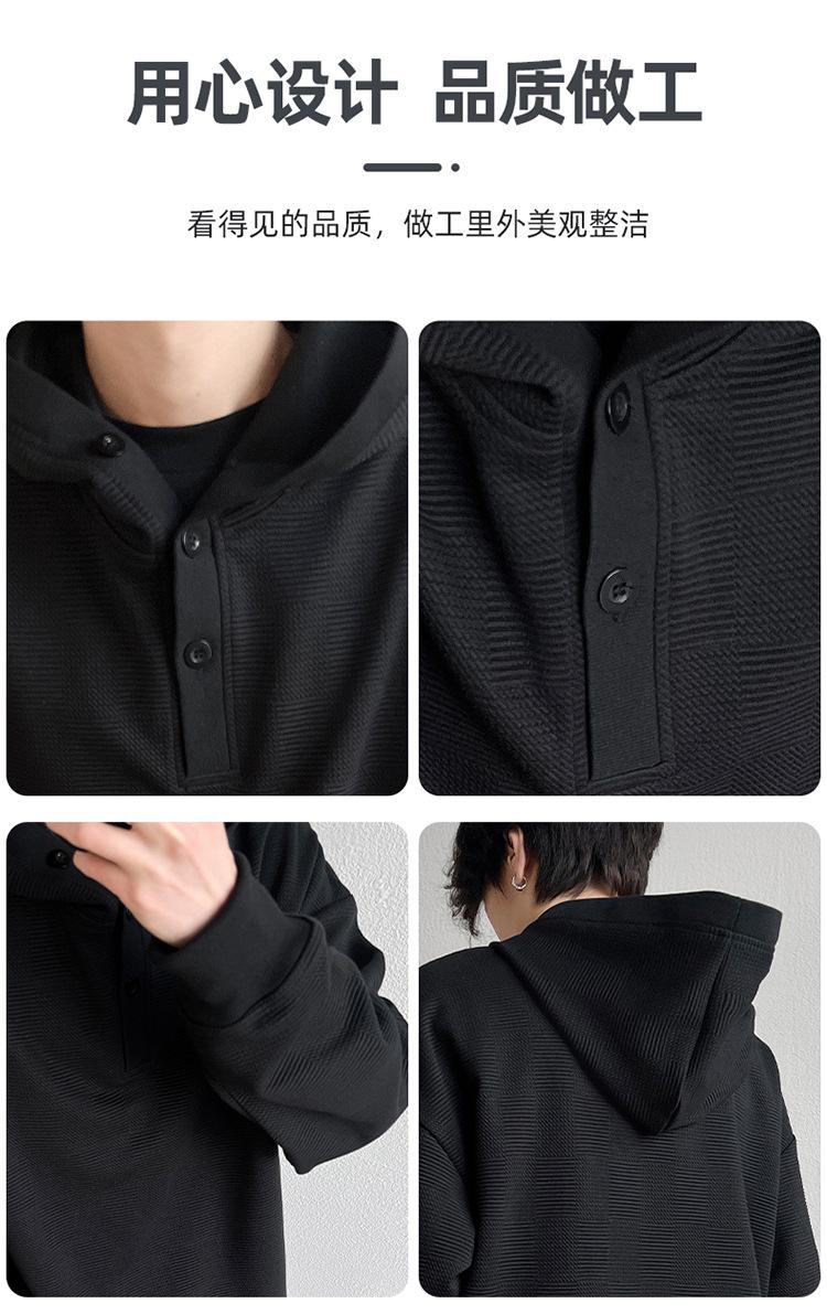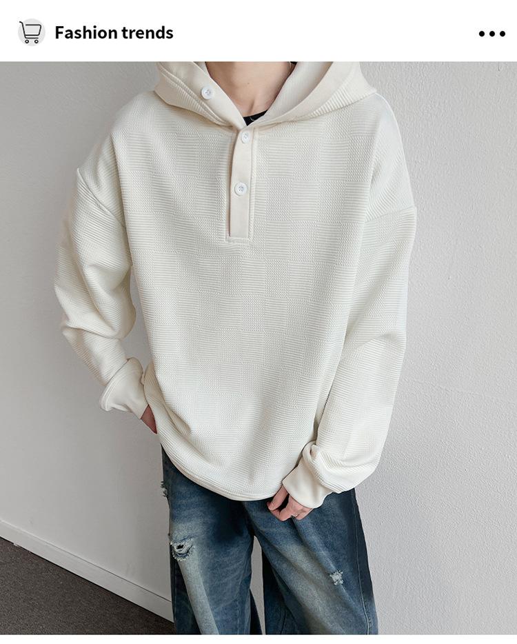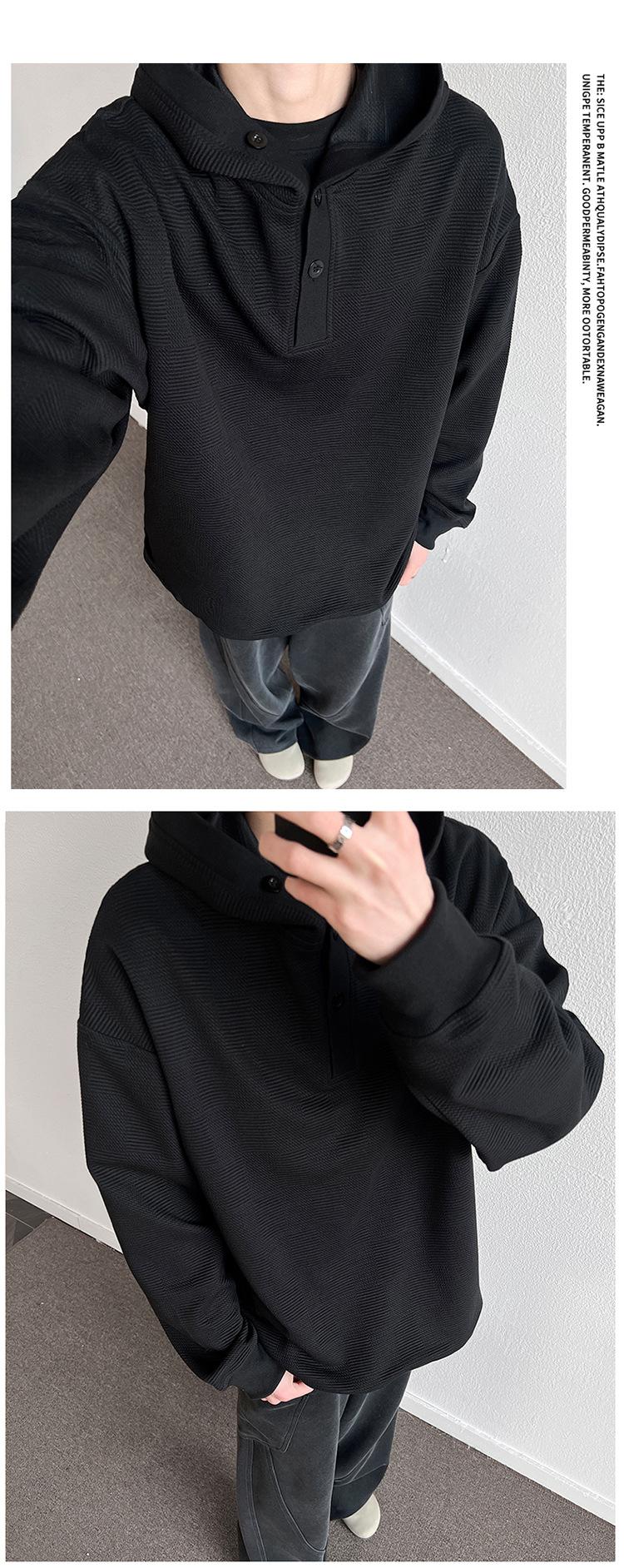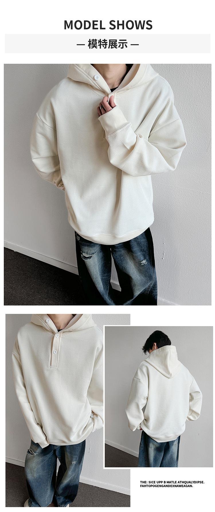 Sudadera con capucha de cuello alto con botones americanos para primavera y otoño para hombre, top casual suelto que combina con todo, moda coreana moderna