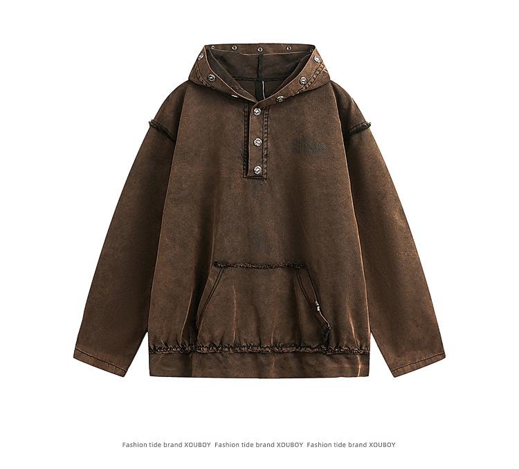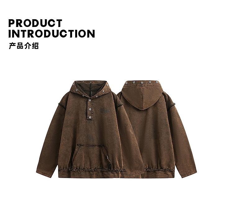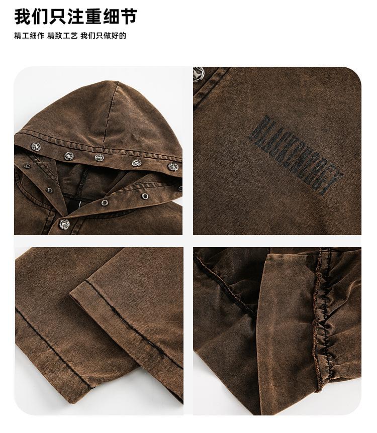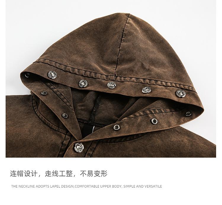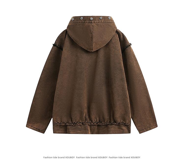 [Ropa Ropa de Hombre] Chaqueta de Mezclilla con Capucha y Cremallera Lavada de Industria Pesada Americana Vintage Chaqueta Holgada de Moda para Hombre Primavera y Otoño