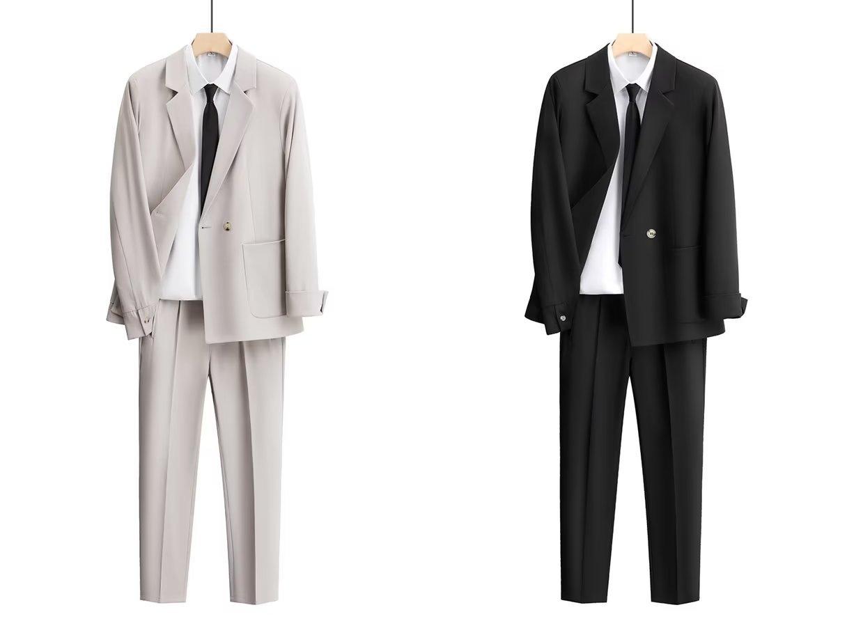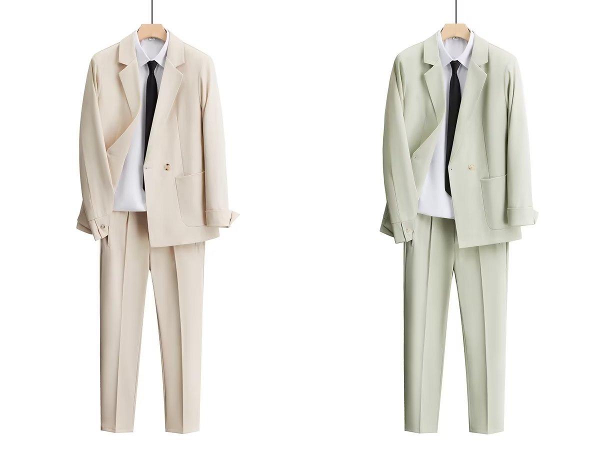Black [suit + suit pants + shirt + tie]], Gray [suit + suit pants + shirt + tie]], Apricot [suit + suit pants ...