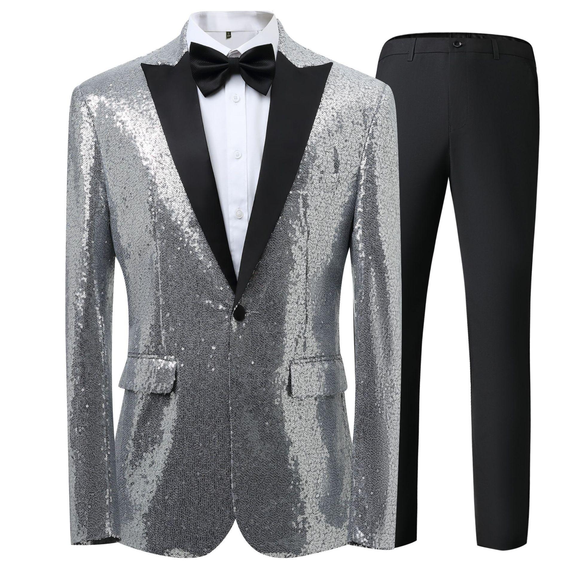 Compra Traje de Lentejuelas para Hombre Traje de Escenario Coro Anfitrión Traje de Vestido de Cantante Traje de Tres Piezas Más Camisa al por mayor en Joom.pro