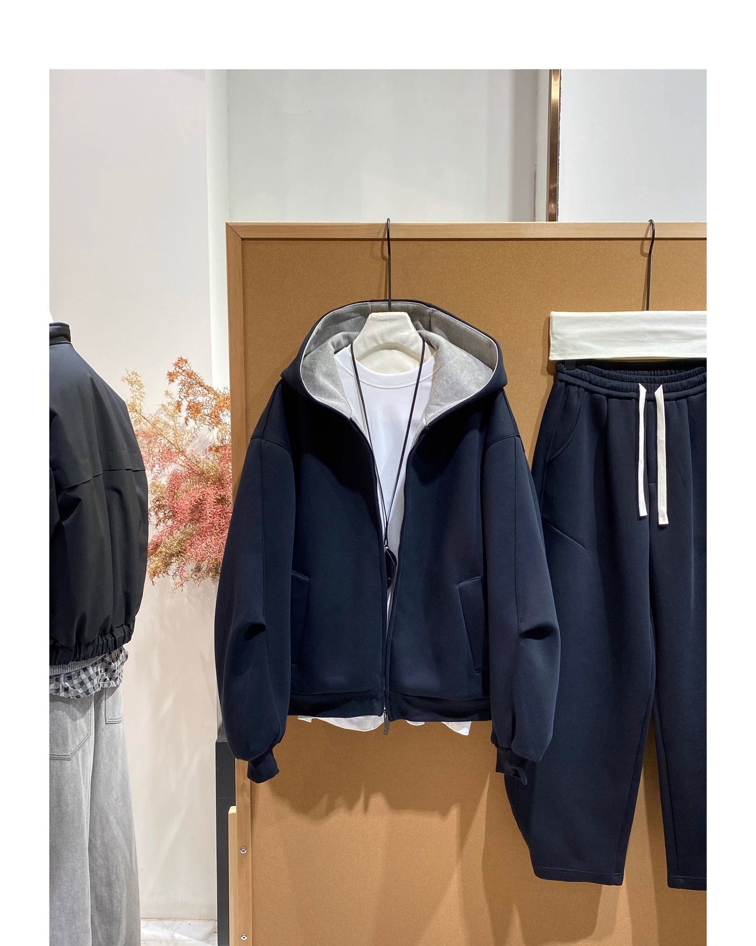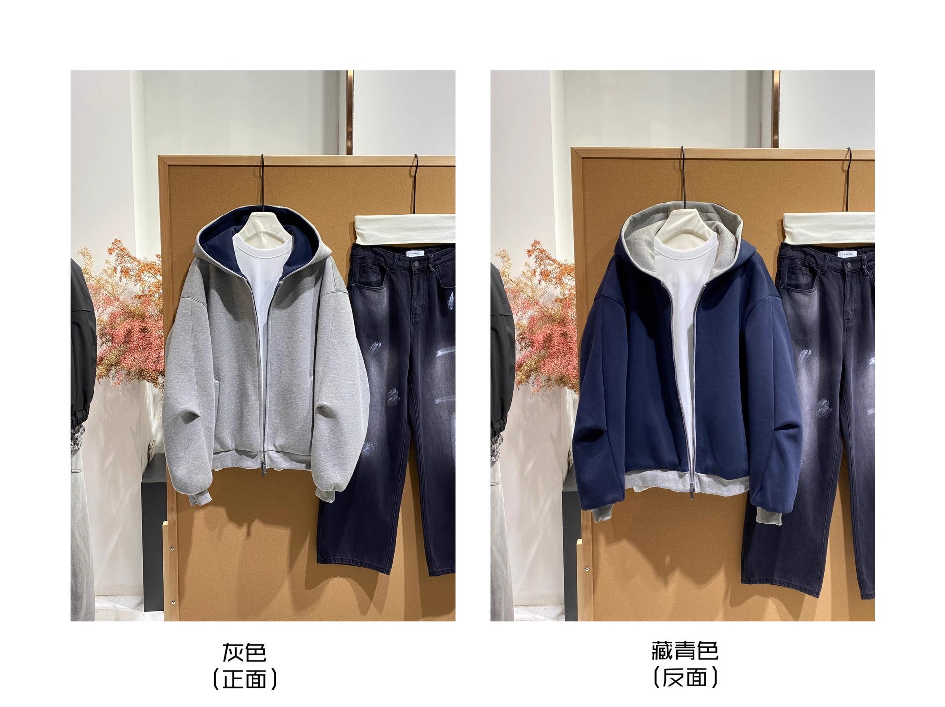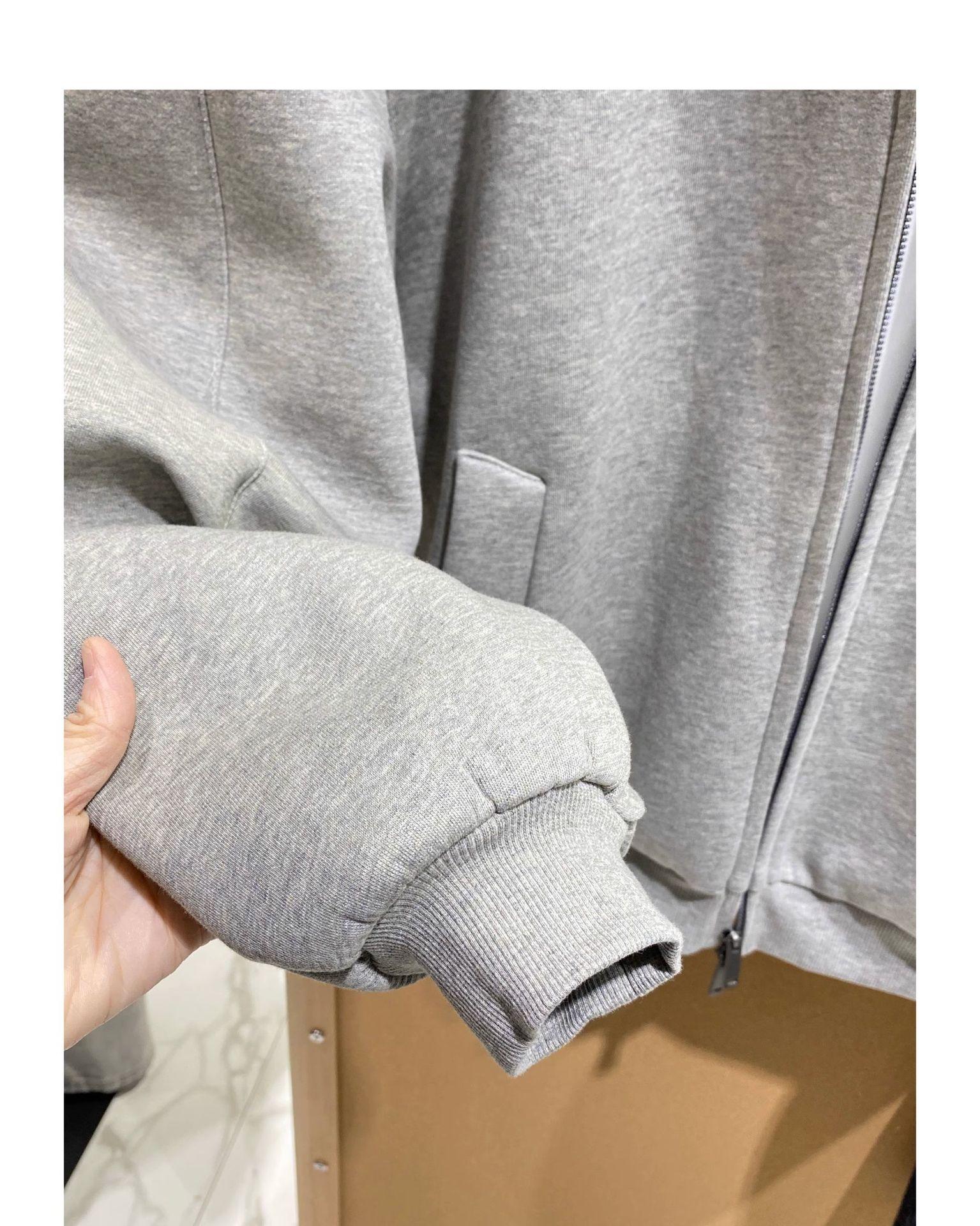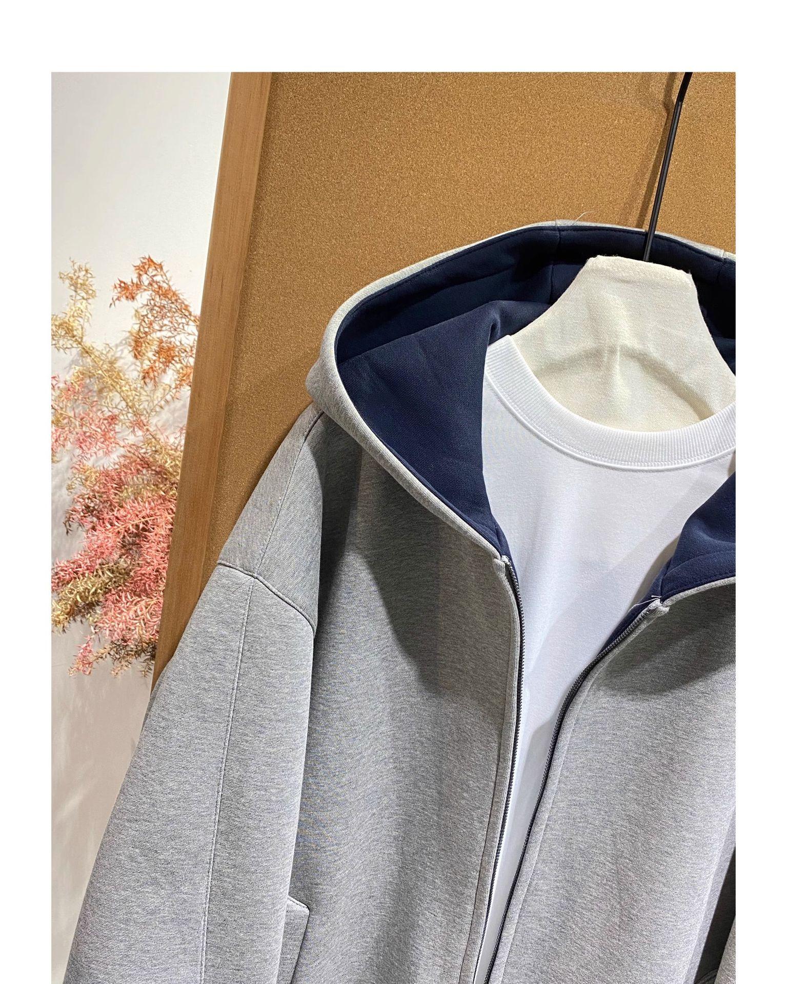 Suéter tipo cárdigan de doble cara para hombre, primavera y otoño de 2025, nuevo, americano, pesado, suelto, con capucha y cremallera doble, chaqueta de moda