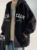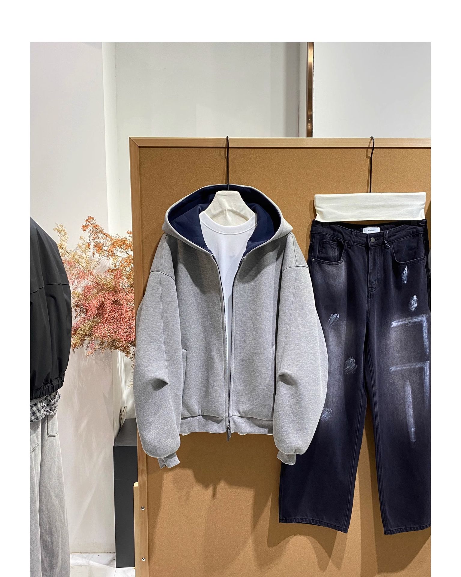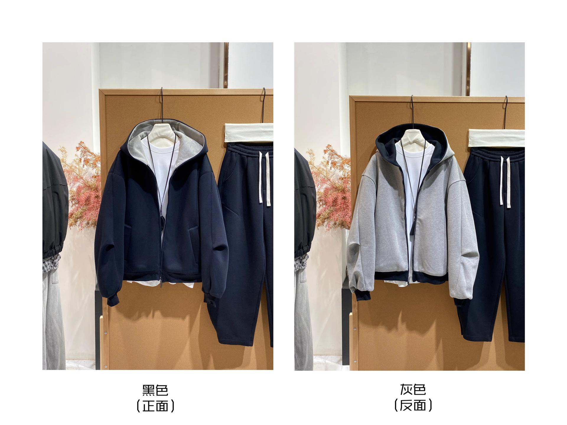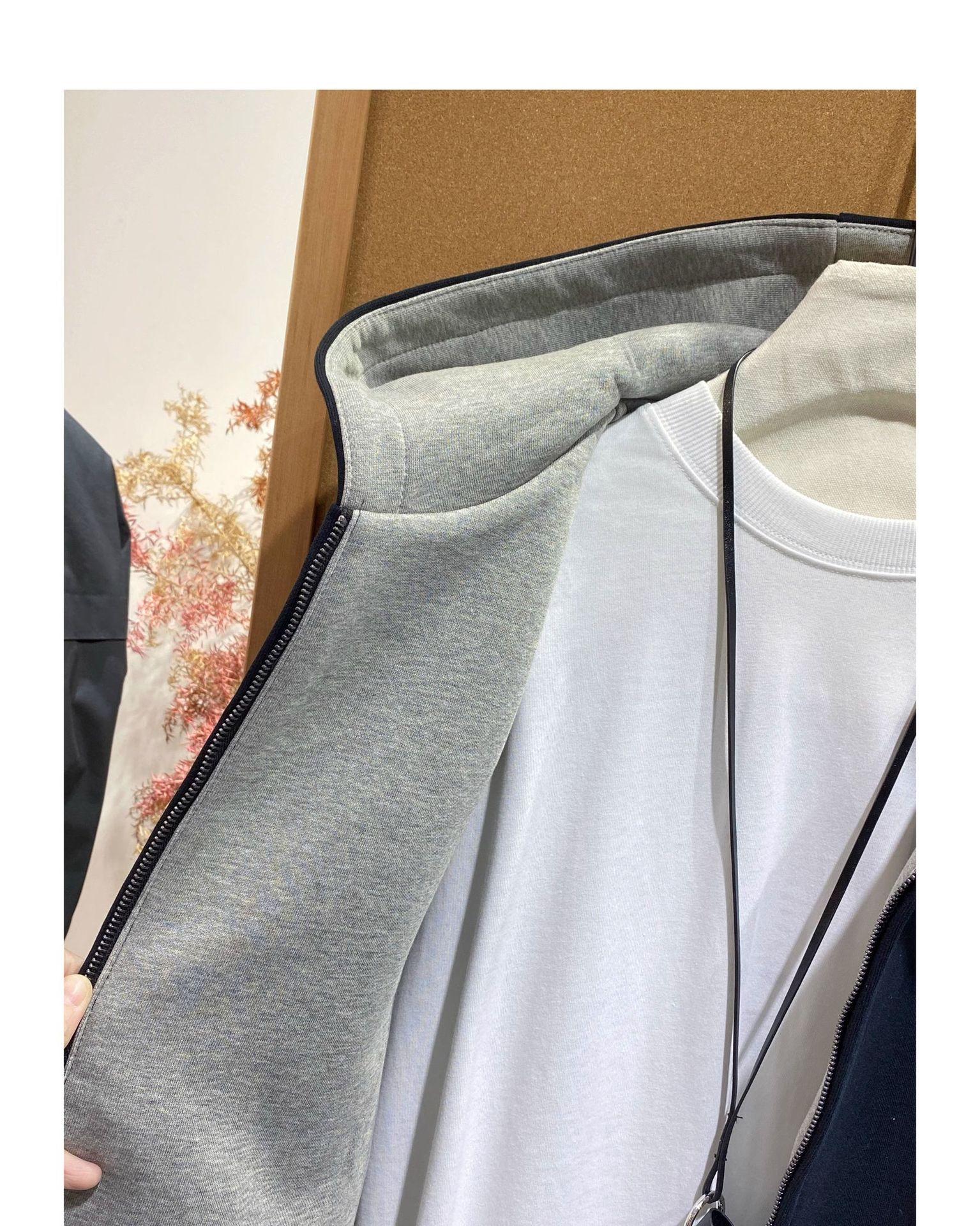Suéter tipo cárdigan de doble cara para hombre, primavera y otoño de 2025, nuevo, americano, pesado, suelto, con capucha y cremallera doble, chaqueta de moda
