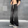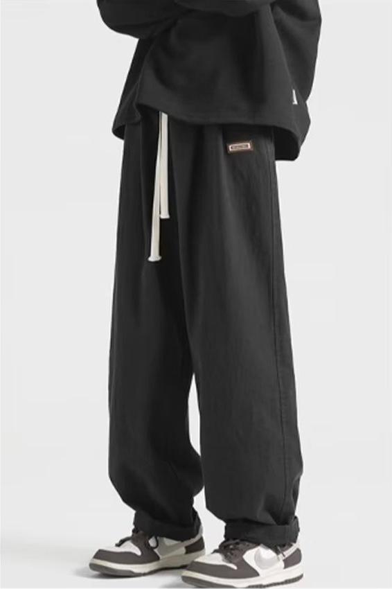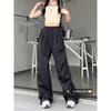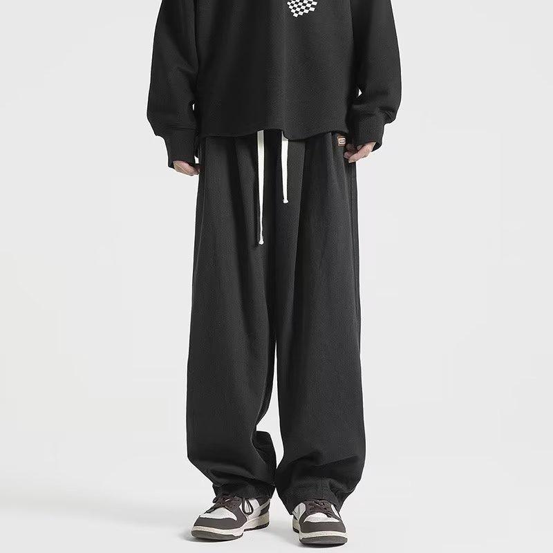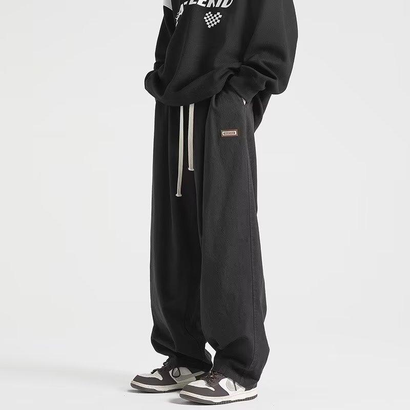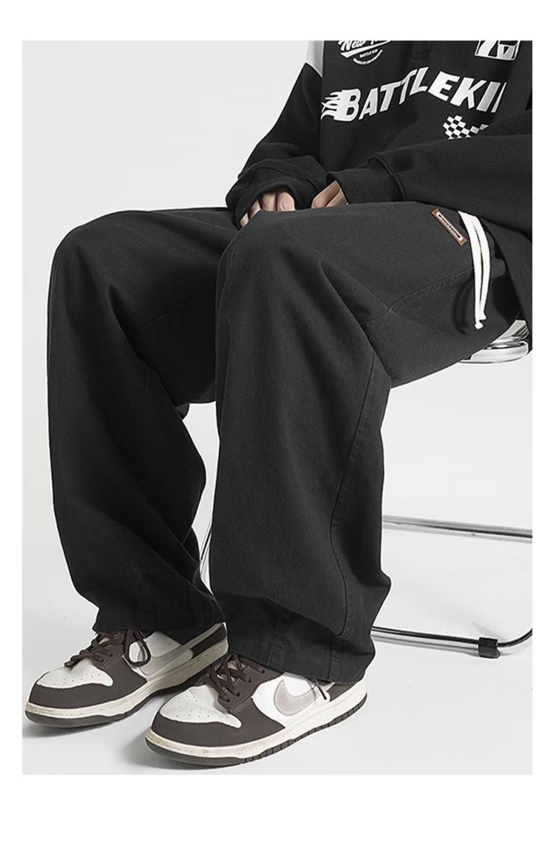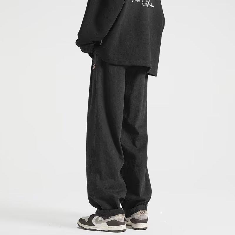 Pantalones deportivos casuales negros estilo americano de primavera y otoño, modernos callejeros, simples, retro, a la moda, combinan con todo, de pierna ancha, rectos, holgados