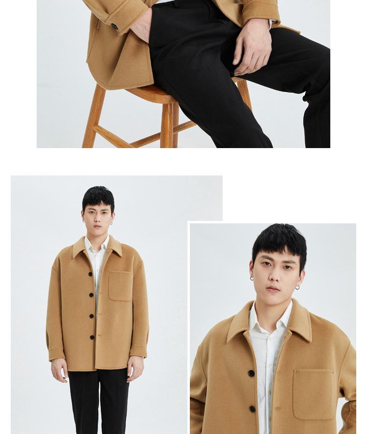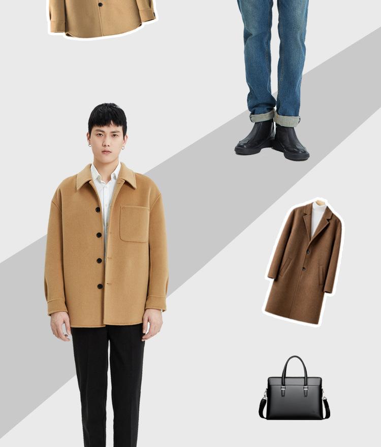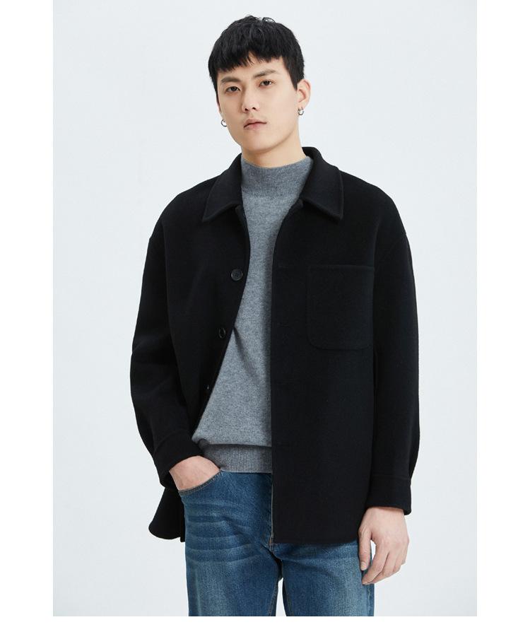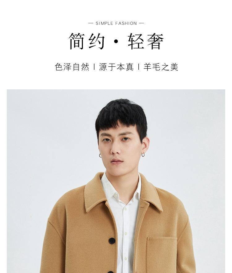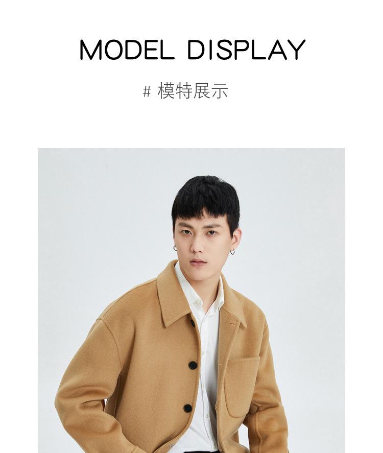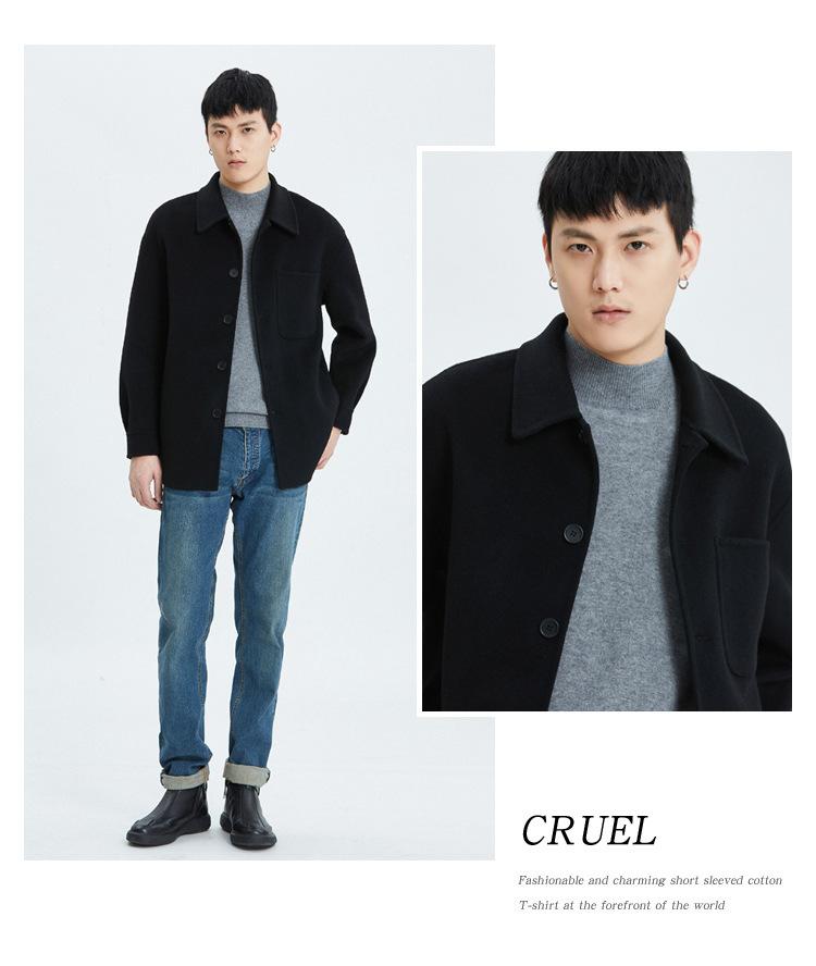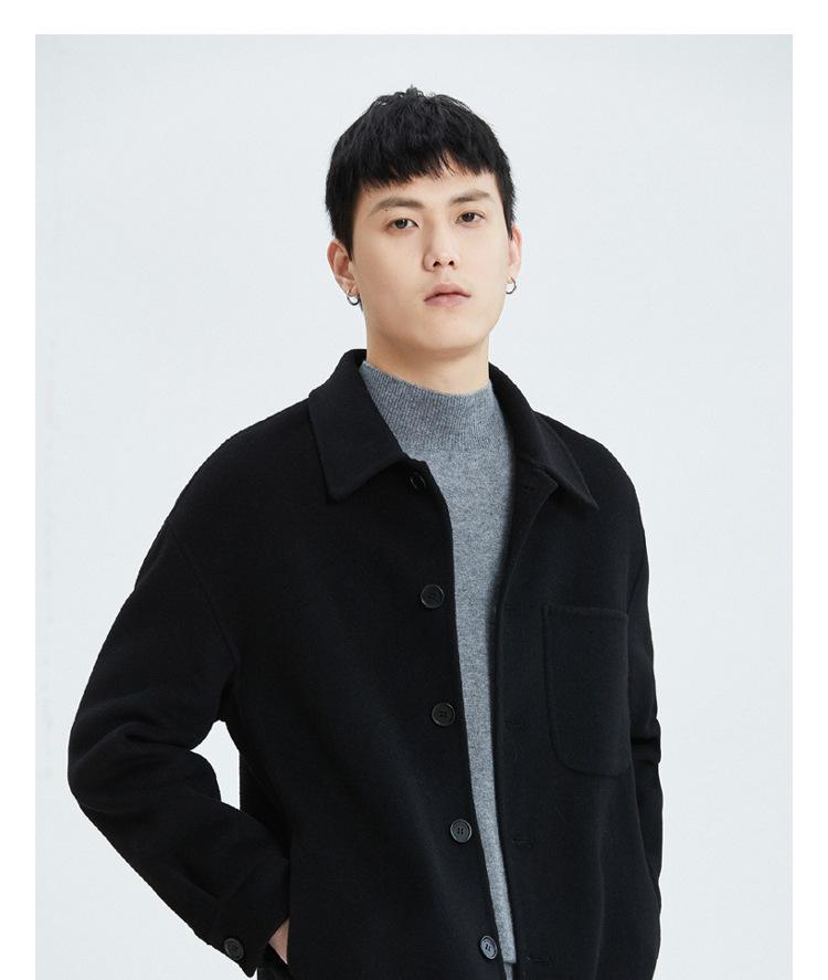 Abrigo de lana para hombre, chaqueta con solapa, nueva sensación otoño e invierno 2023, abrigo corto de cachemira Ni de doble cara