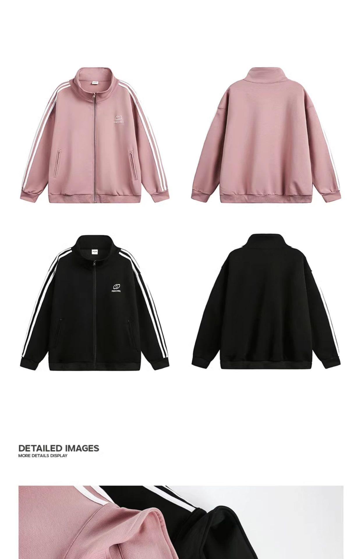 Ru Meng Estilo Americano Retro Costuras Cárdigan Suéter Cuello Vertical de Tres Barras para Hombre y Mujer Casual Deportes al Aire Libre Traje de Pareja Moderno