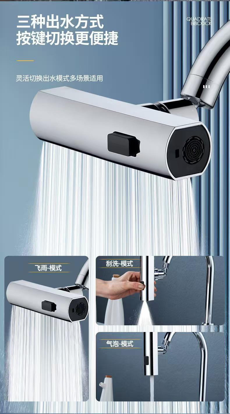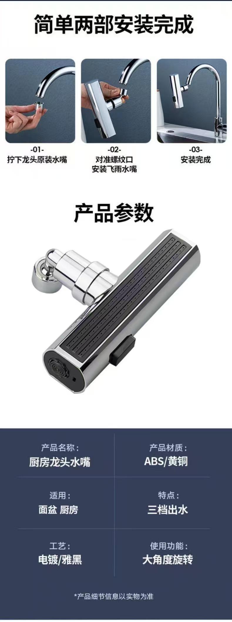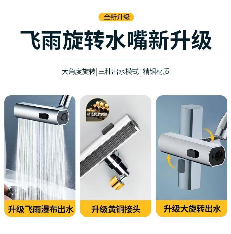Grifo de Cocina Grifo de Lluvia Cascada Agua Fría y Caliente Fregadero Lavabo para Verduras Giratorio Multifuncional Universal para Hogar