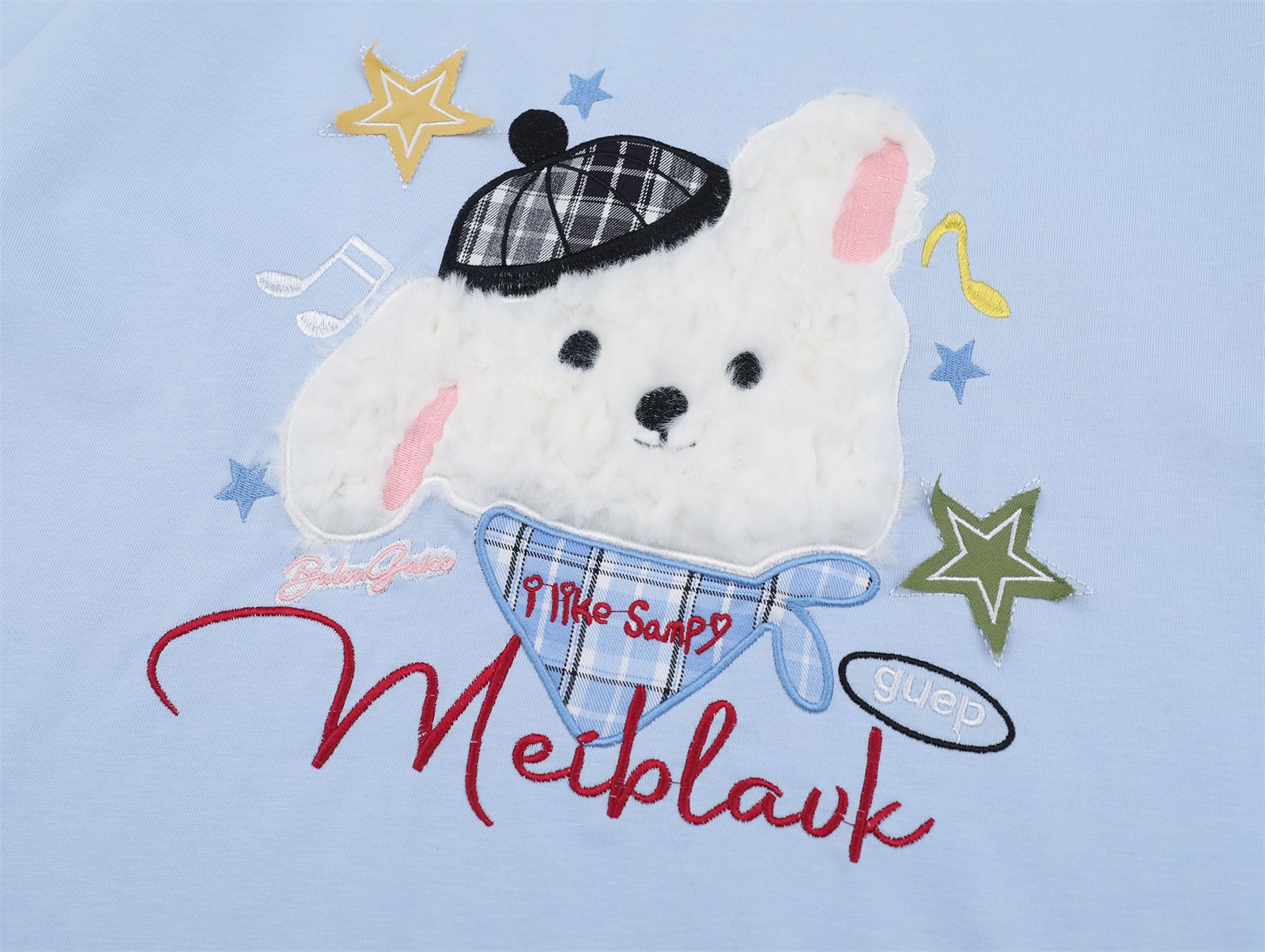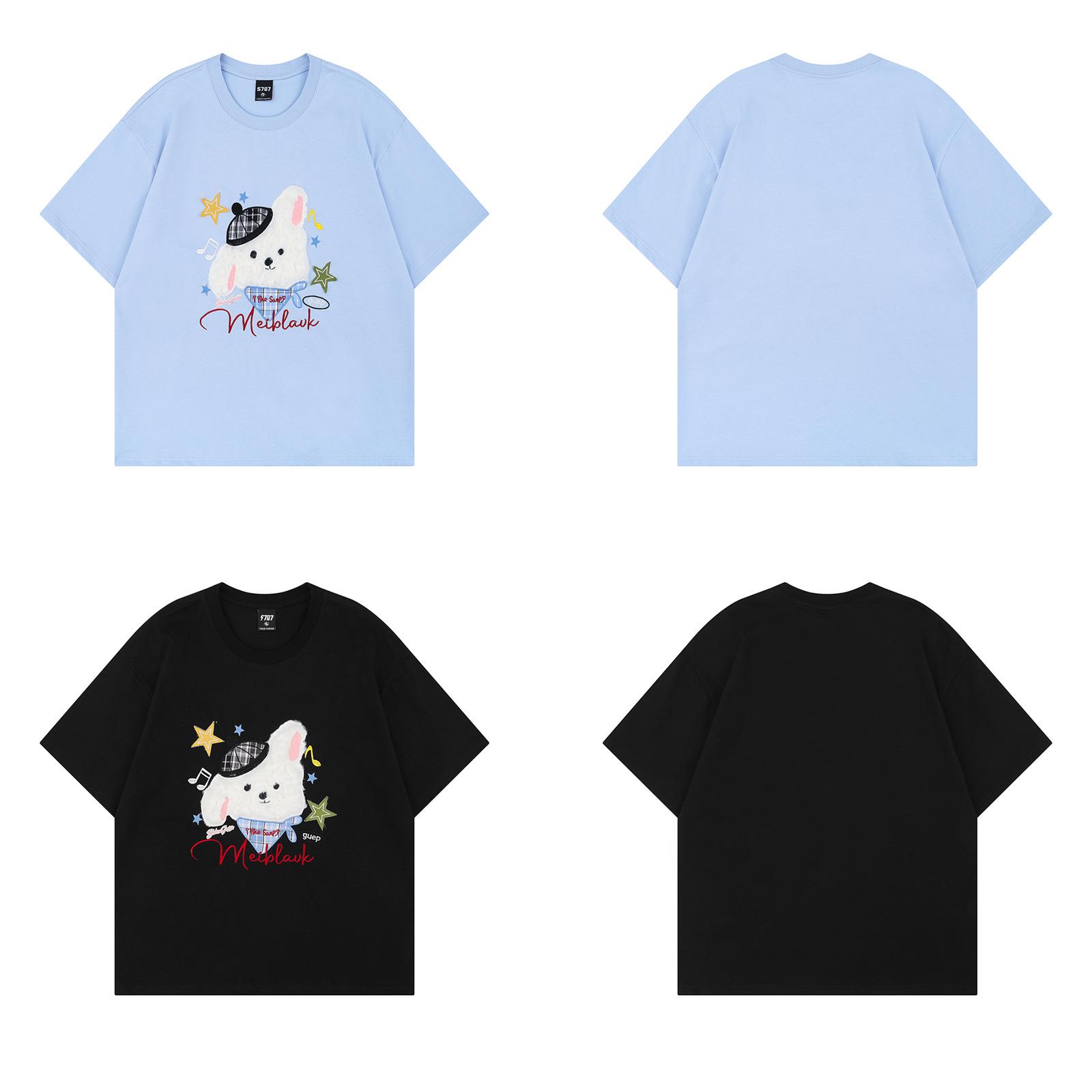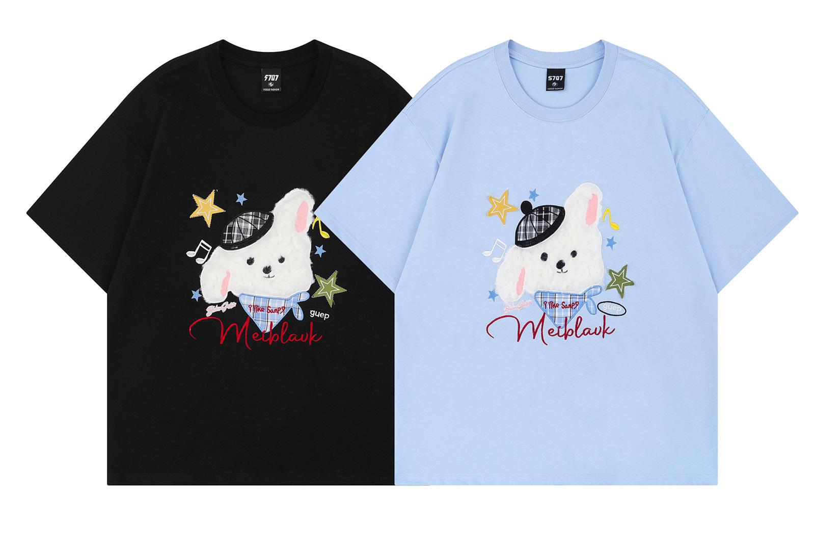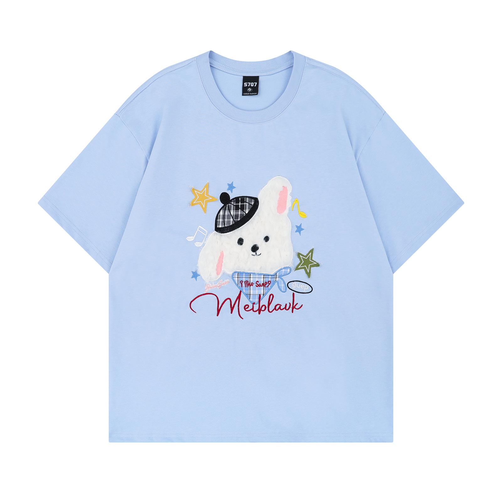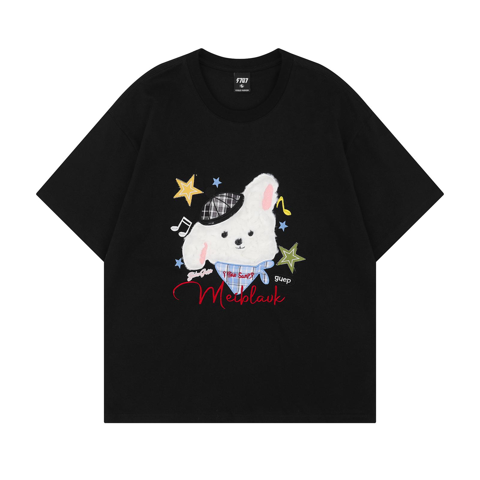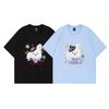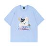 Camiseta de manga corta estilo americano retro con adorable cachorro de peluche para hombre y mujer, camiseta de verano de gran tamaño para parejas.