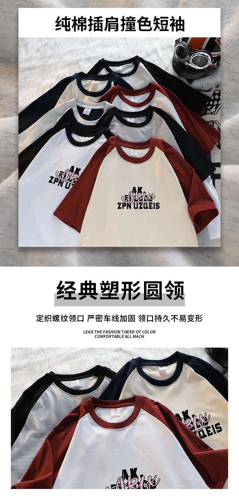 Camiseta de manga raglán lavada con color de contraste para hombre, nueva camiseta holgada de verano estilo americano, camiseta de manga corta de marca de moda retro para parejas Q