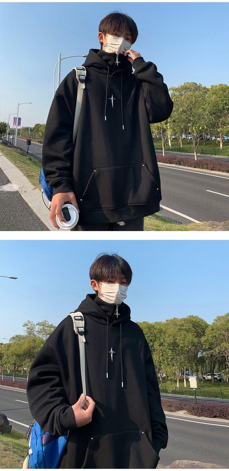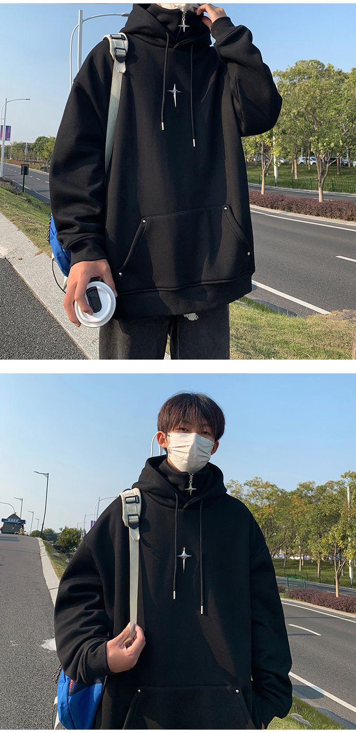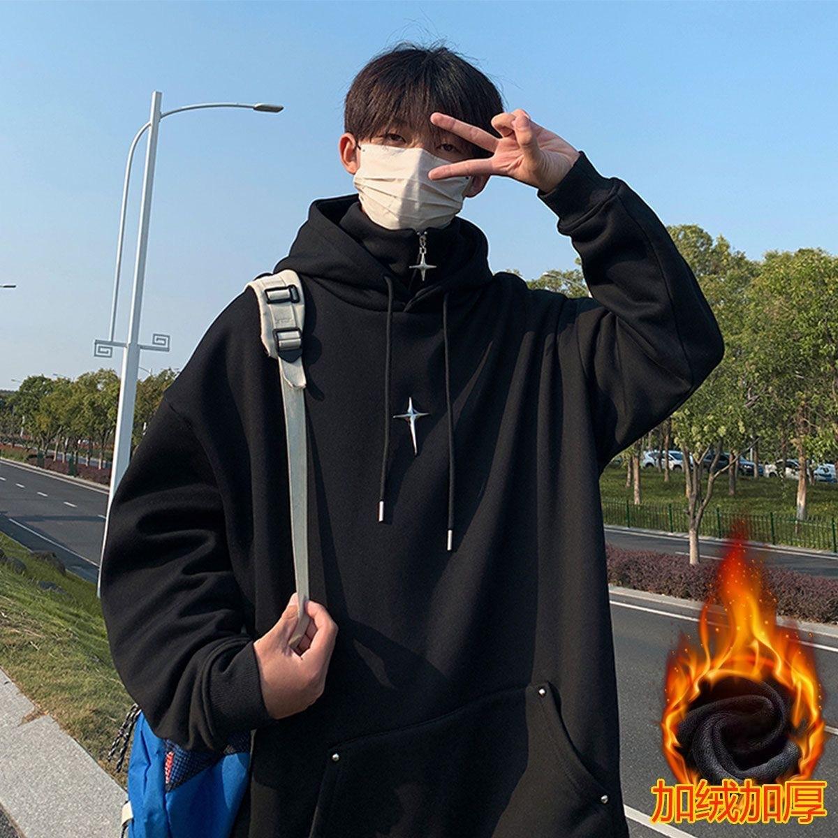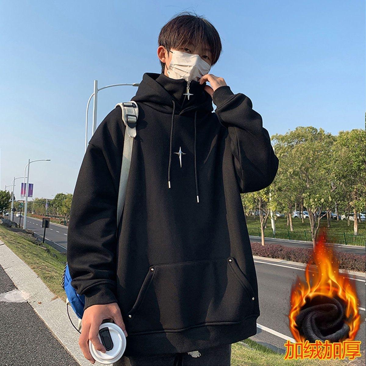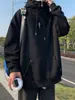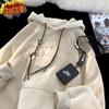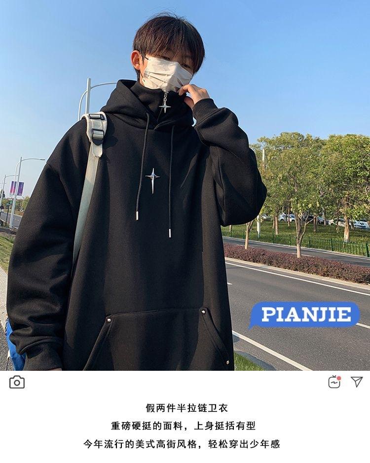[500g peso pesado alta calidad] Marea callejera americana diez estándar suéter falso de dos piezas invierno forro polar conjunto de chamarra con capucha 1