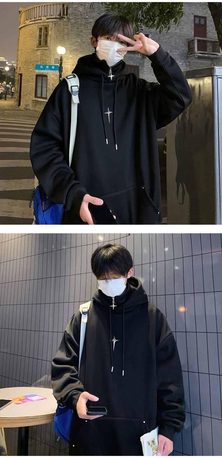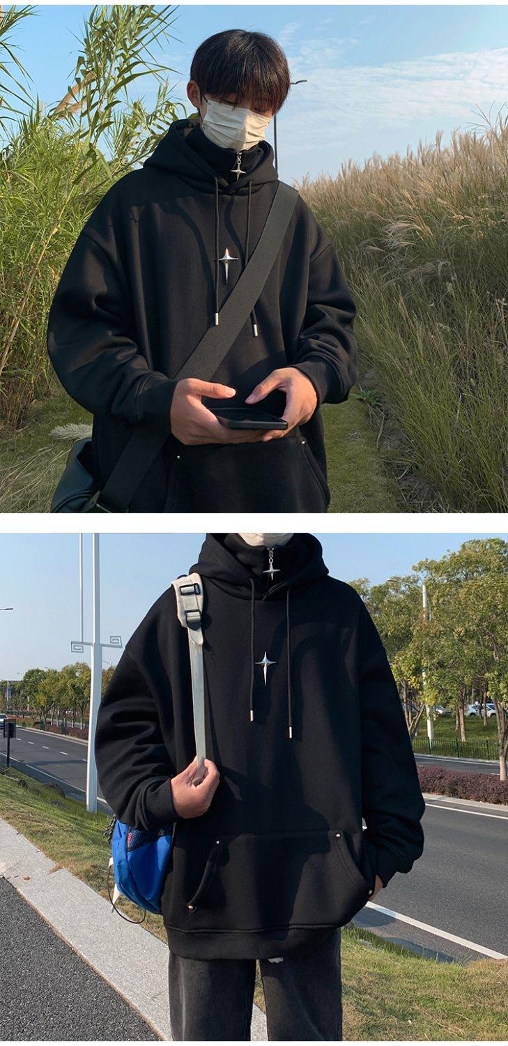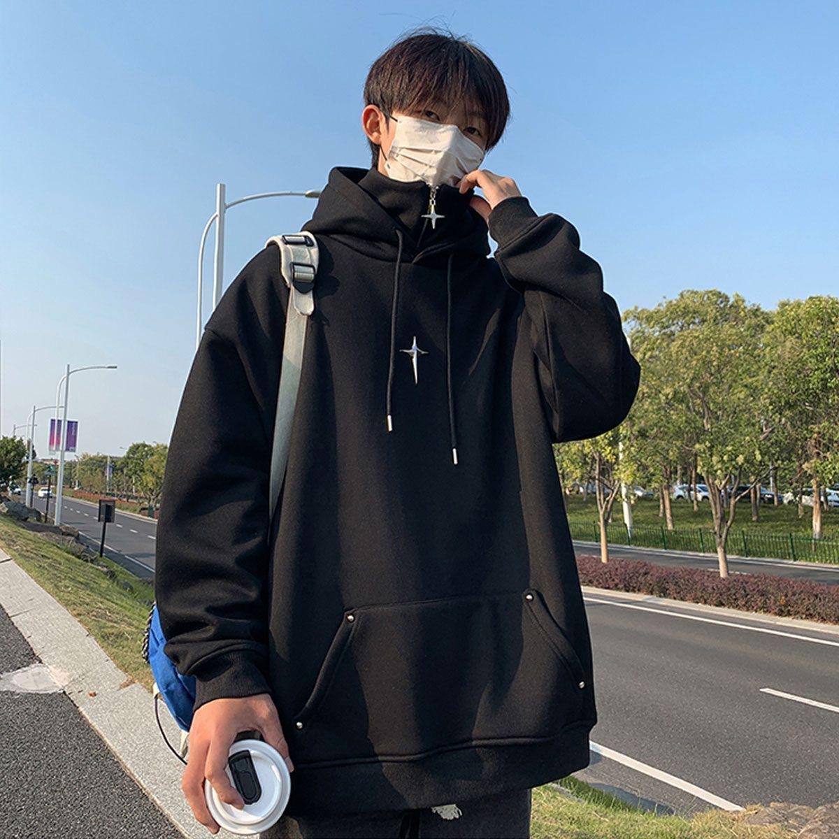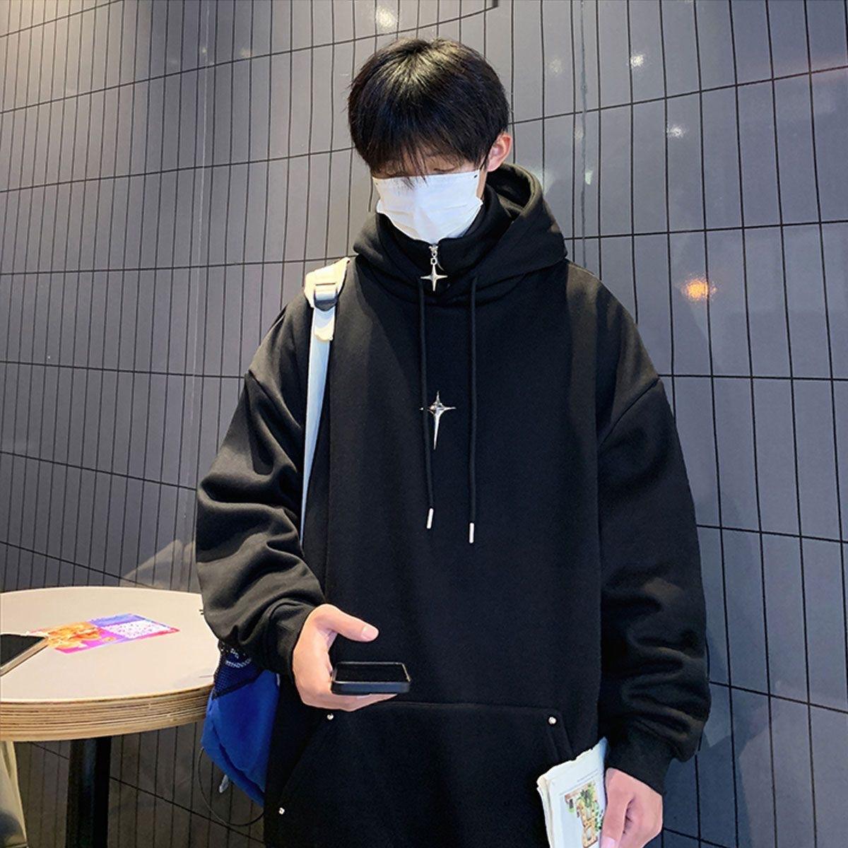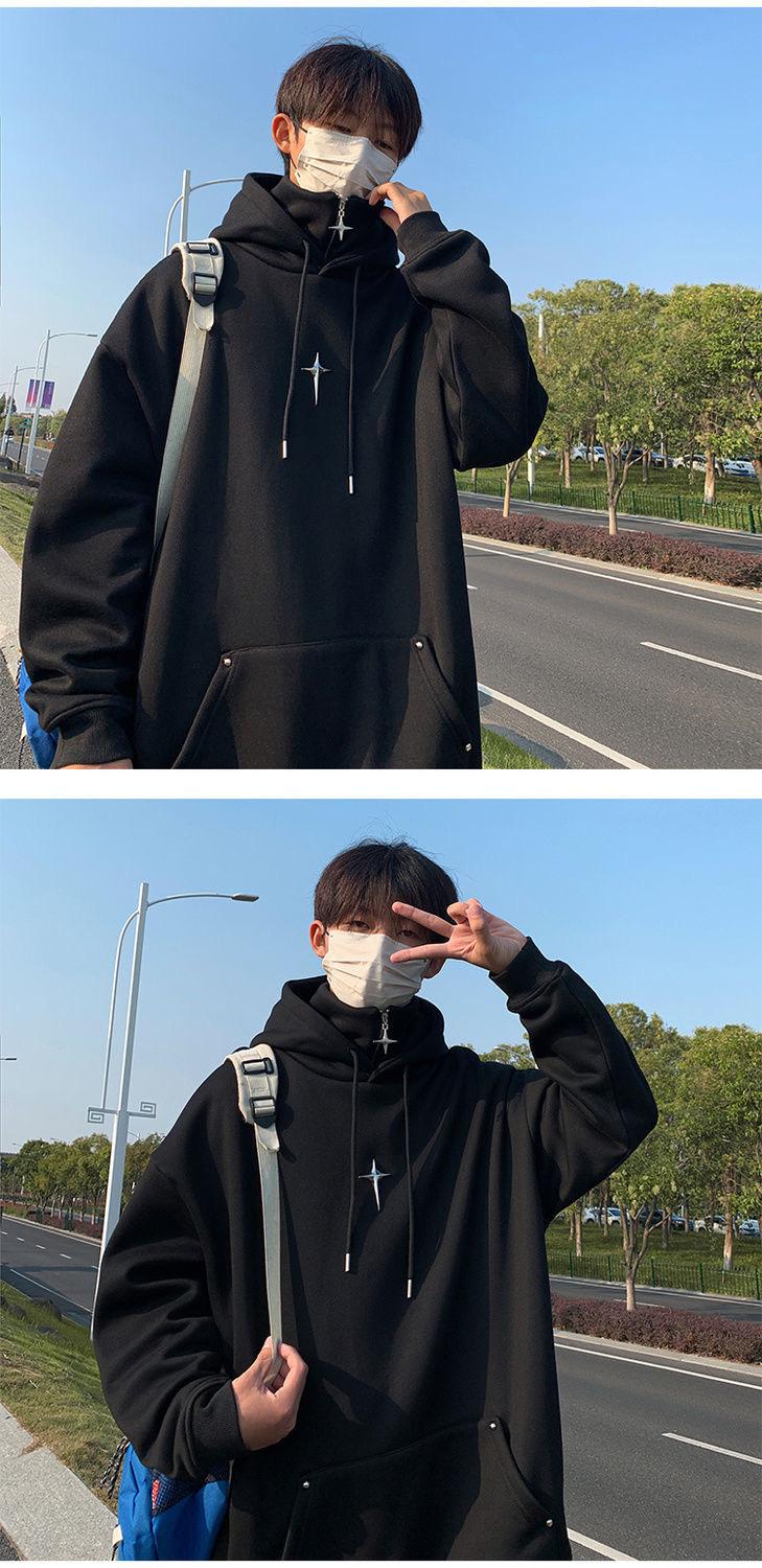 [500g peso pesado alta calidad] Marea callejera americana diez estándar suéter falso de dos piezas invierno forro polar conjunto de chamarra con capucha 1
