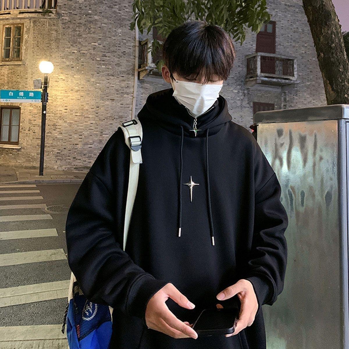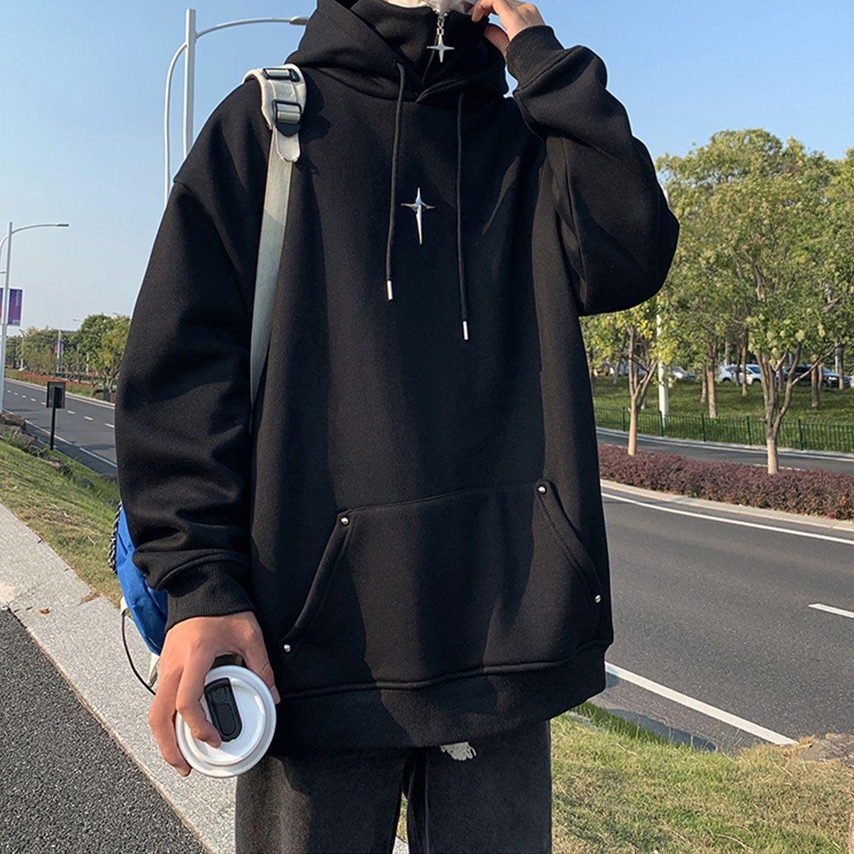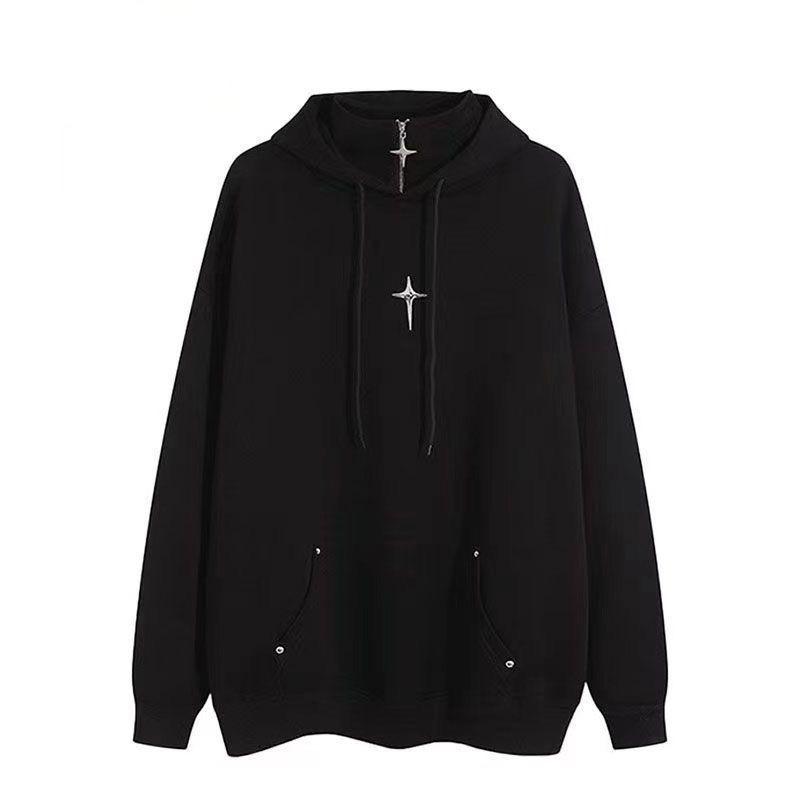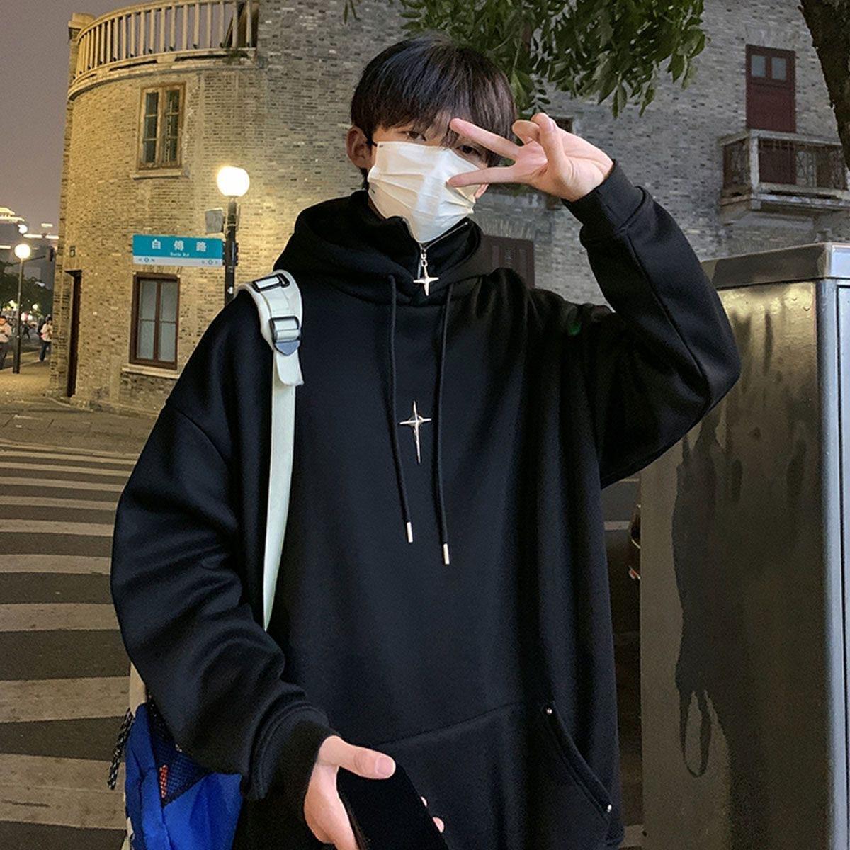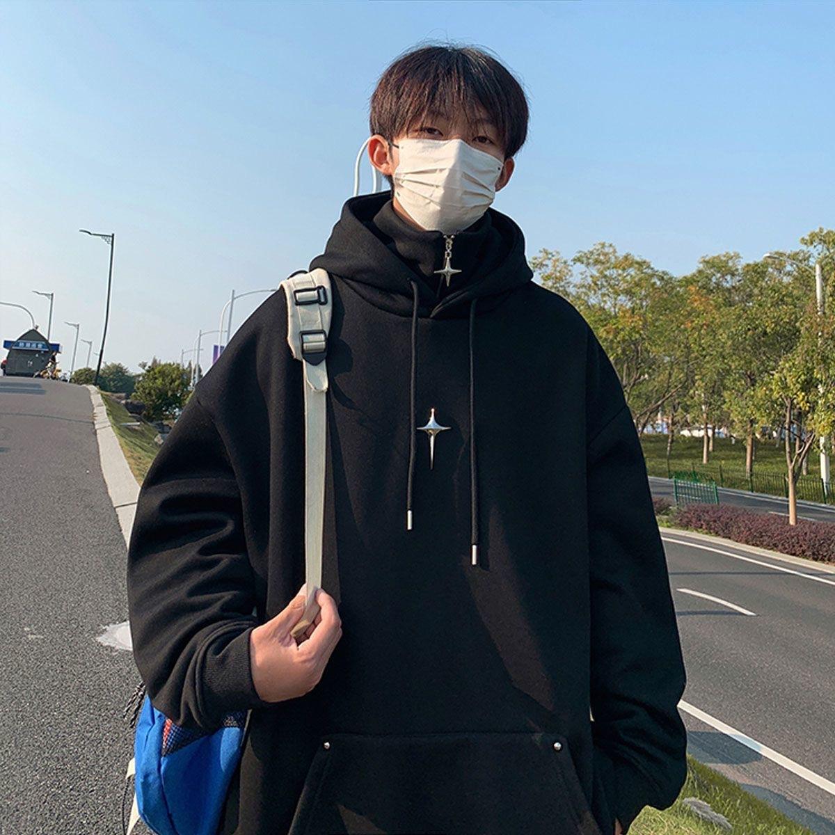 [500g peso pesado alta calidad] Marea callejera americana diez estándar suéter falso de dos piezas invierno forro polar conjunto de chamarra con capucha 1
