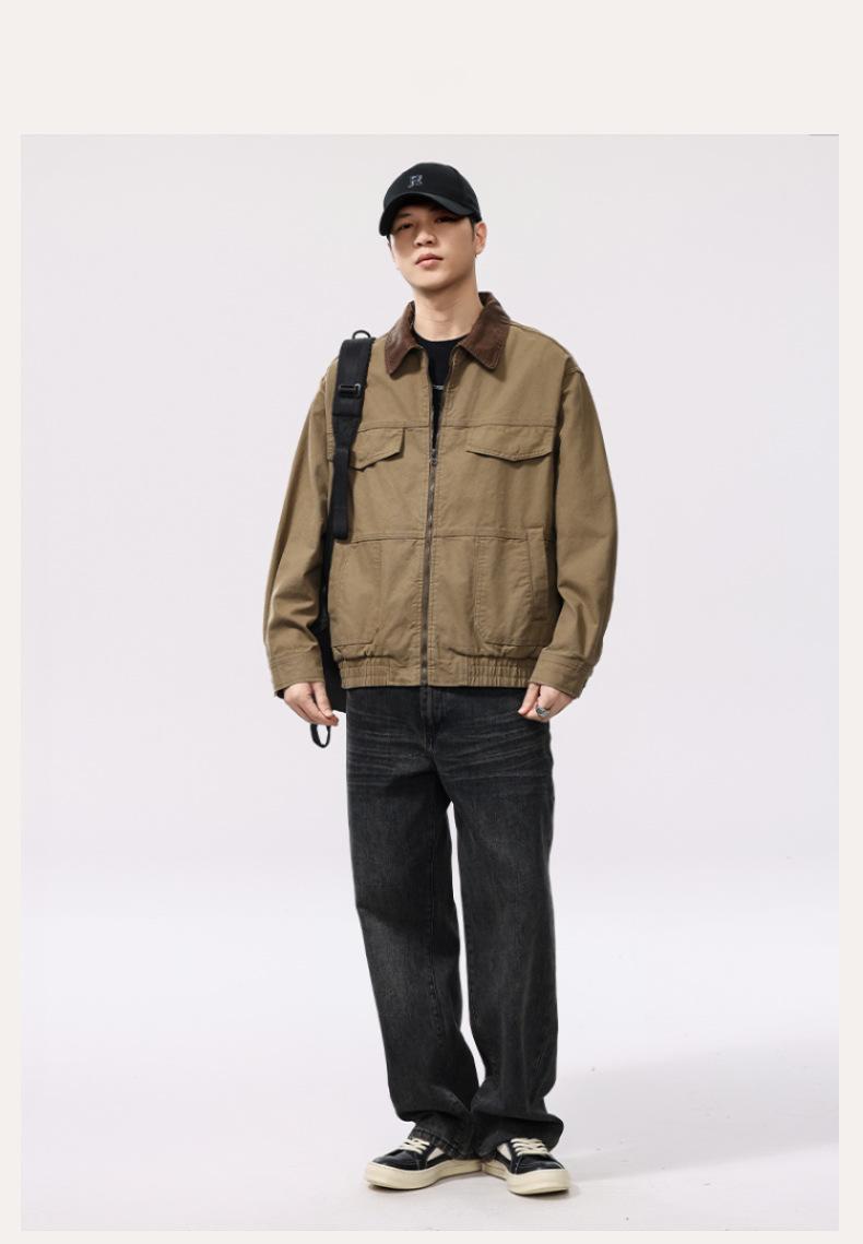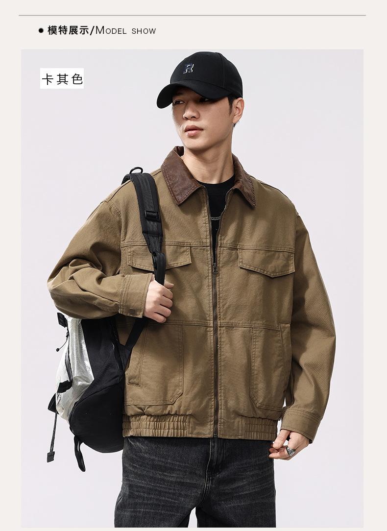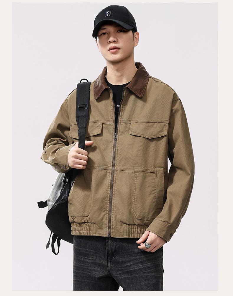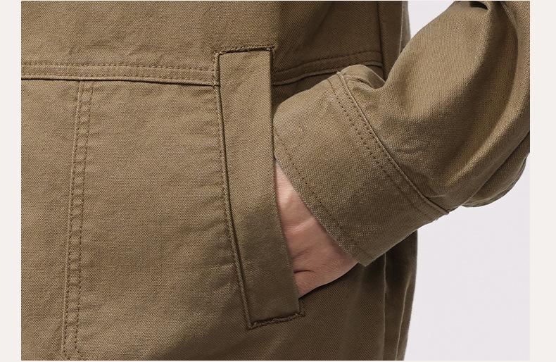 Chaqueta de caza vintage americana lavada de algodón puro con múltiples bolsillos para hombre, nueva chaqueta de trabajo con solapa para primavera y otoño. Ropa para hombre.