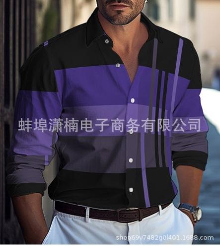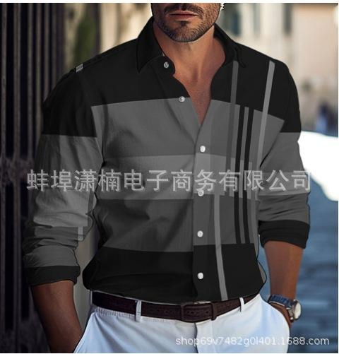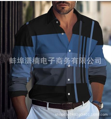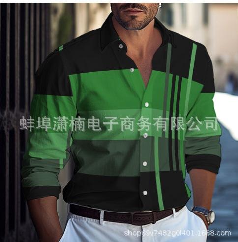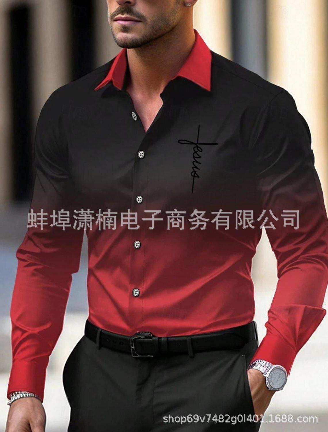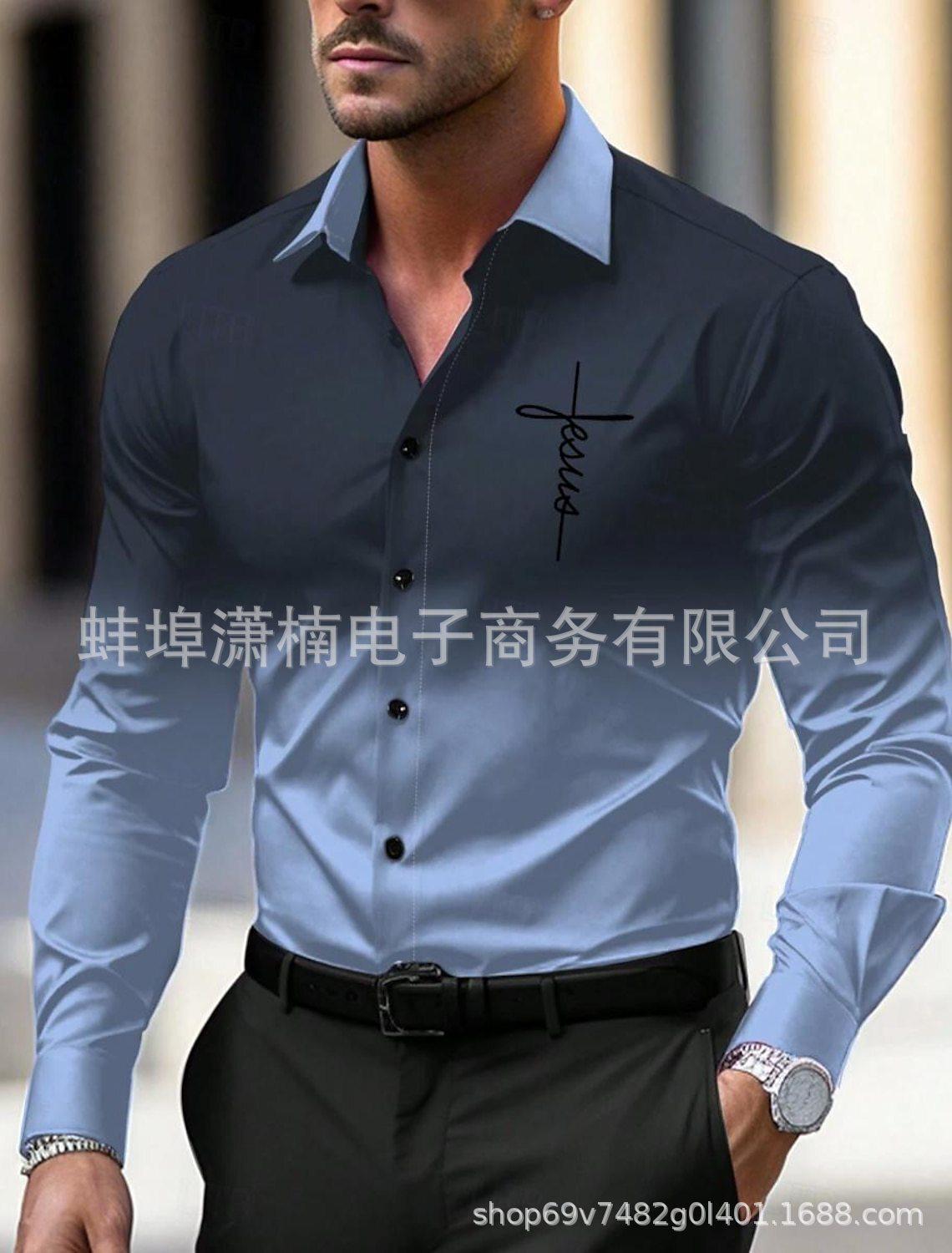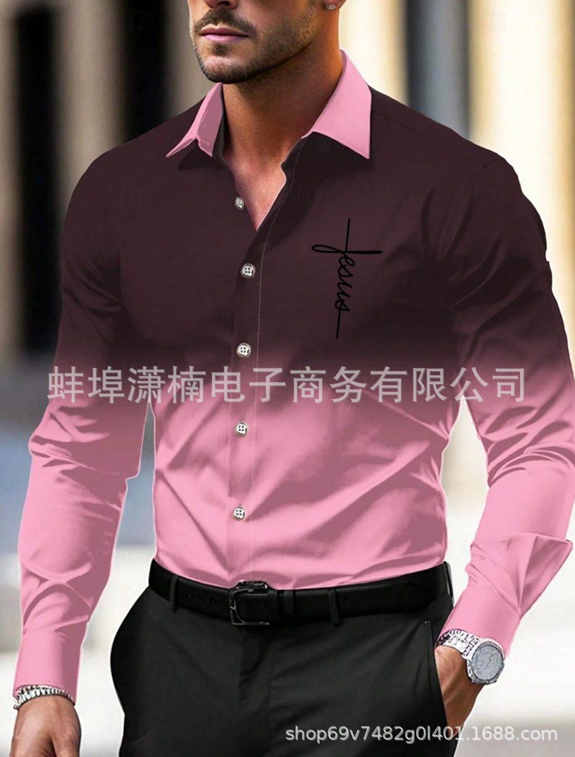 Camisa de solapa de manga larga para hombre, tendencia de moda informal de comercio exterior europeo y americano, con degradado de color, 2025