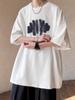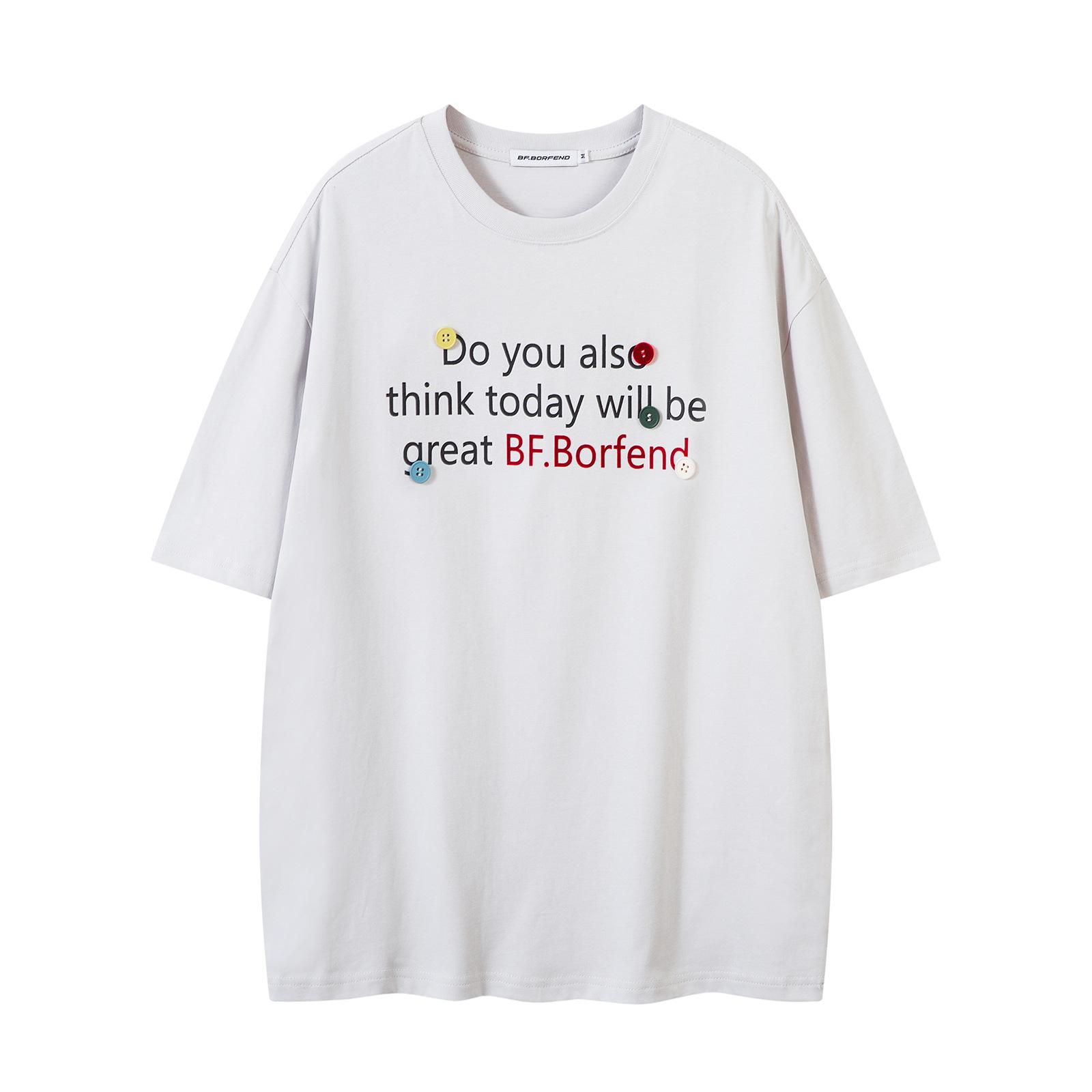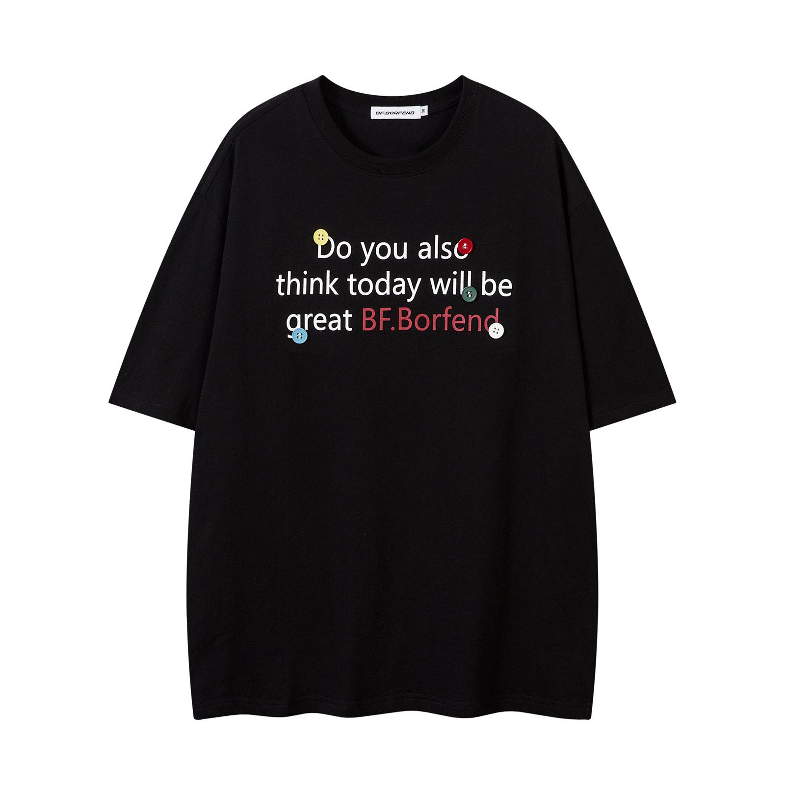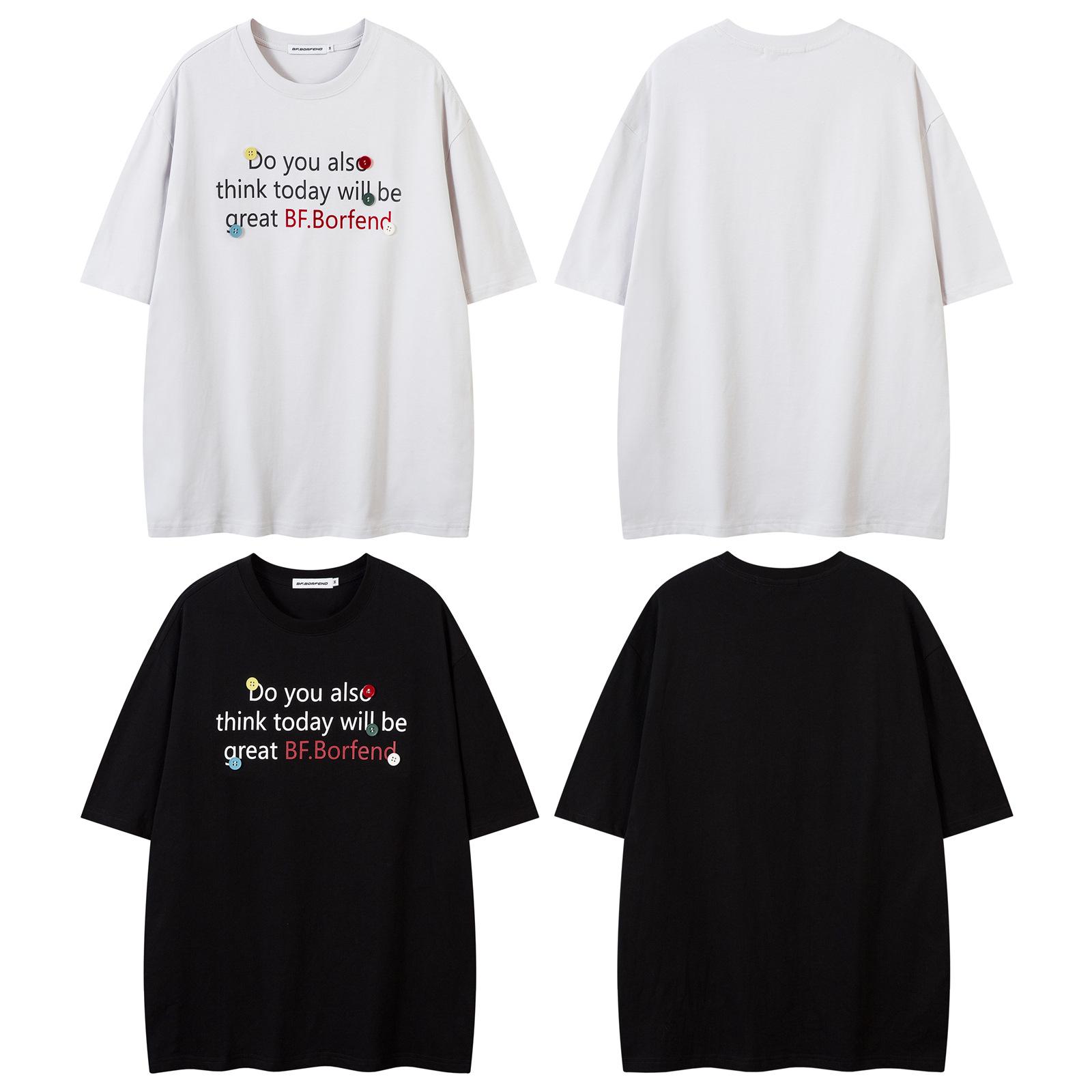 Camiseta de manga corta con estampado de letras decorativas y botones de estilo americano de marca de moda para hombre, top informal holgado de verano para pareja