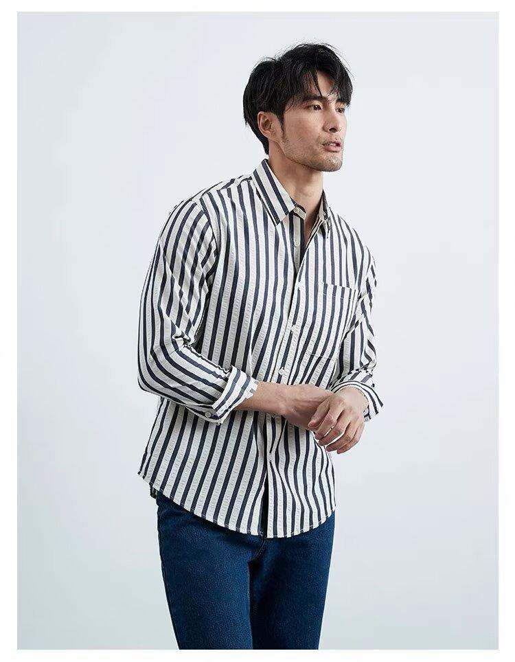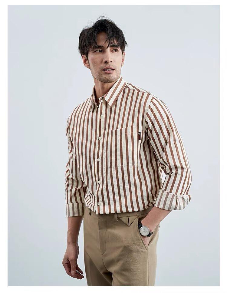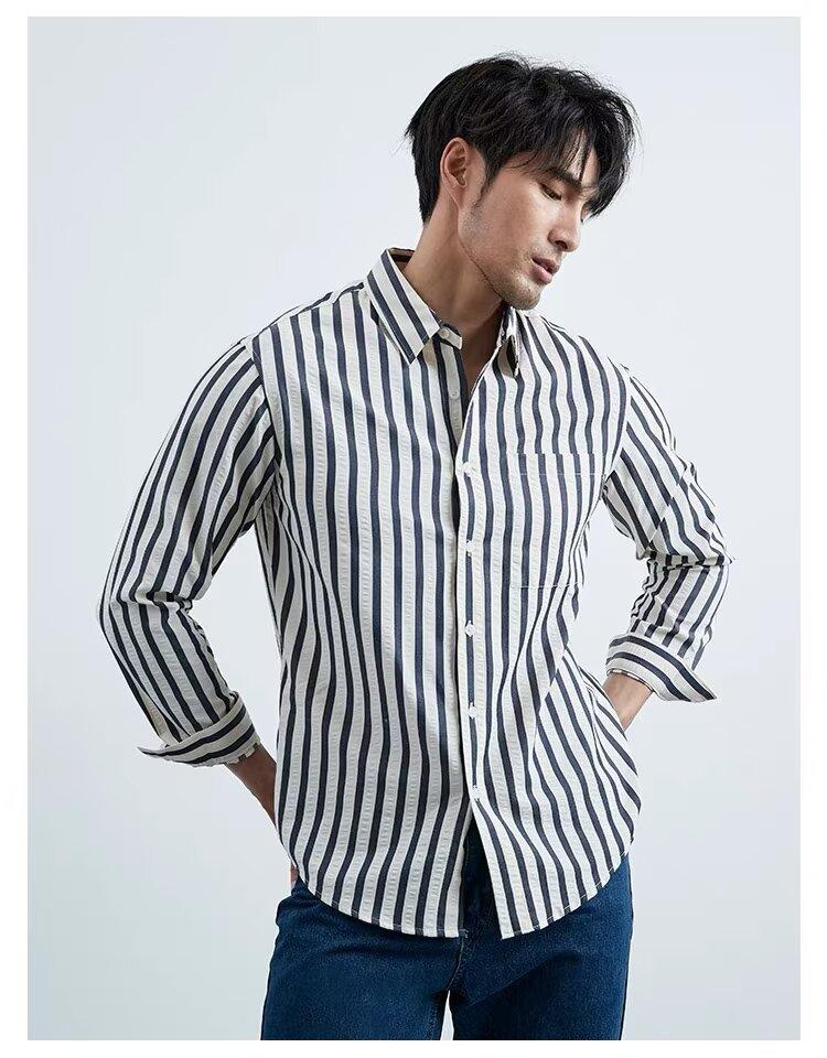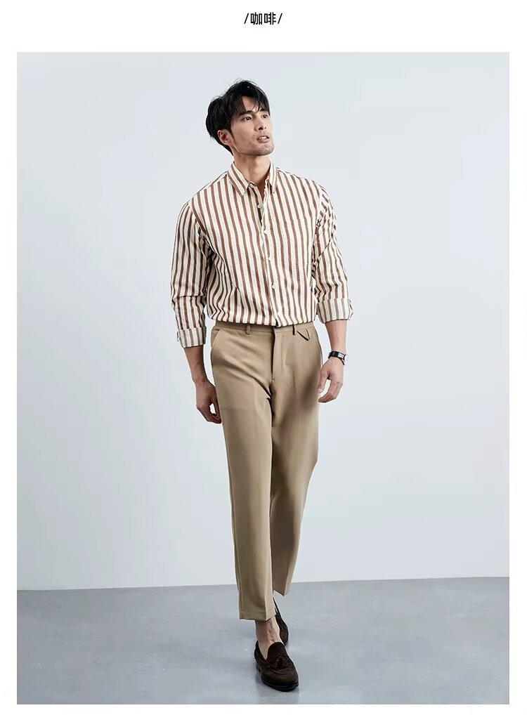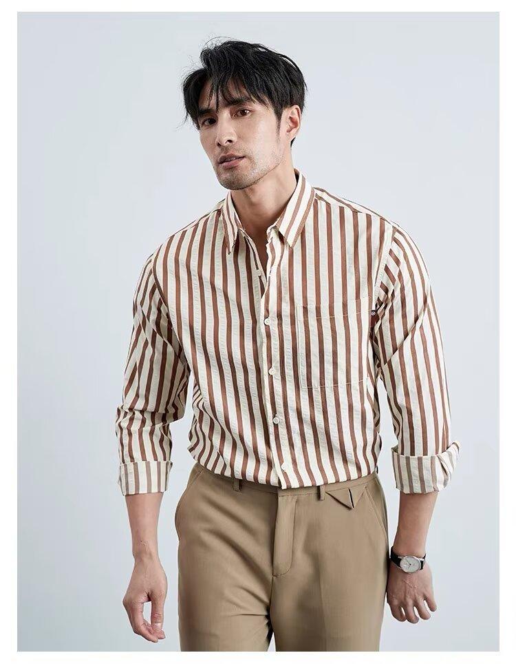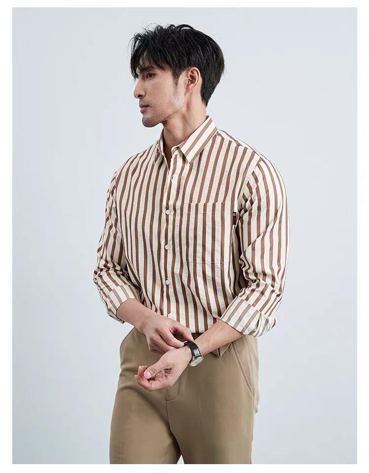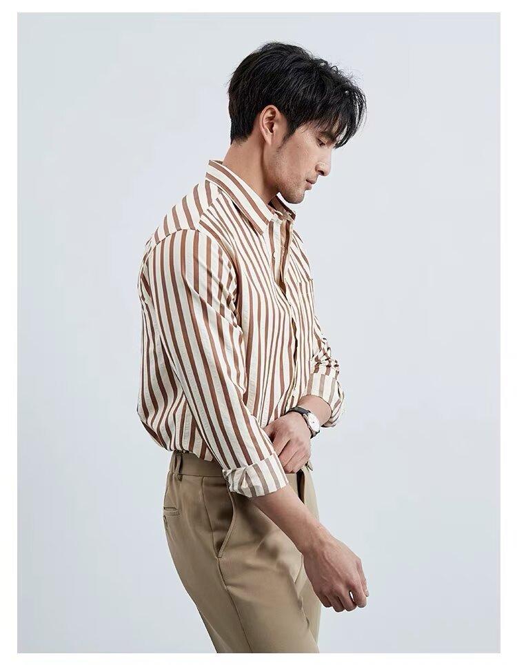 Camisa de Hombre de Manga Larga a Rayas Retro Estilo Americano, Estilo Británico Moderno, Nuevo Estilo Atractivo, No Necesita Planchado, Transpirable, Combinable con Todo, Casual, de Alta Gama