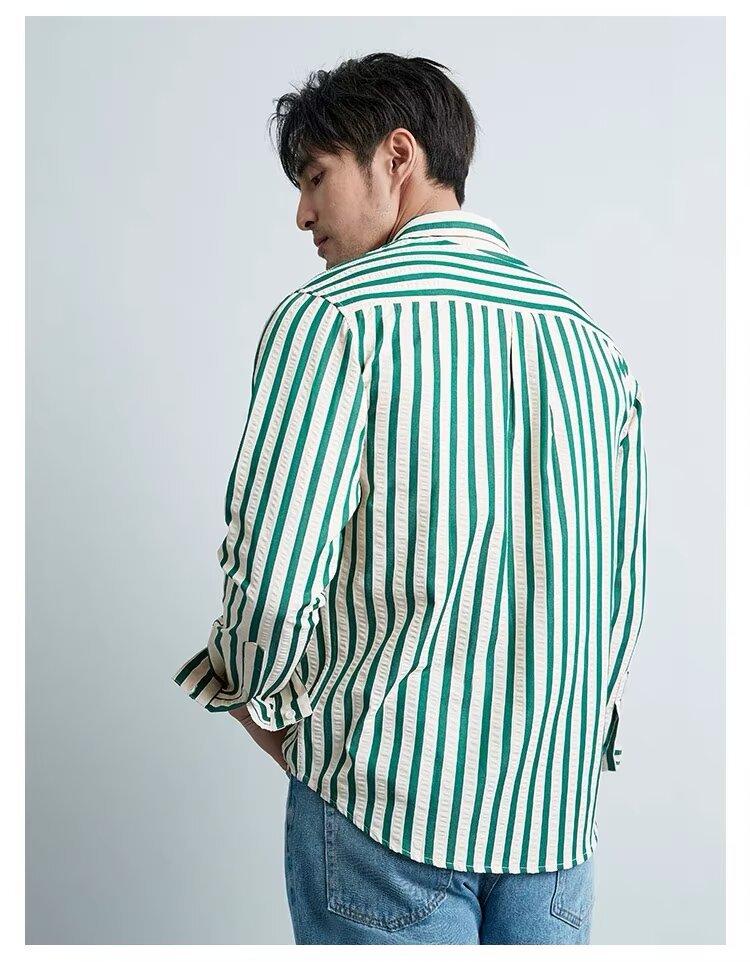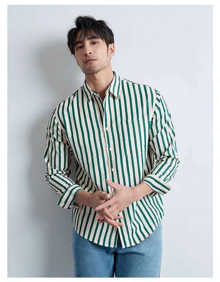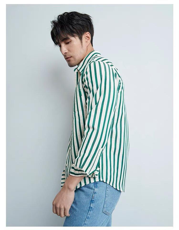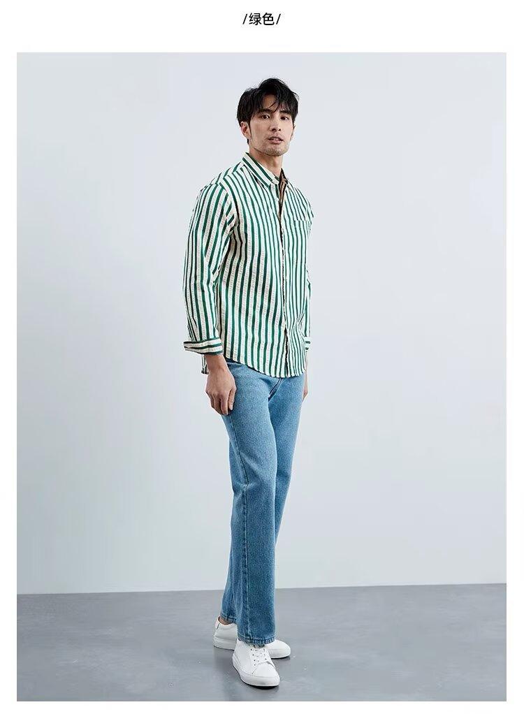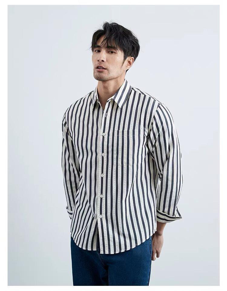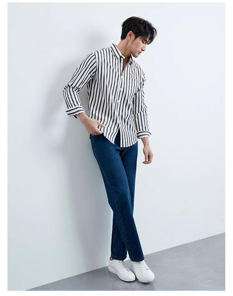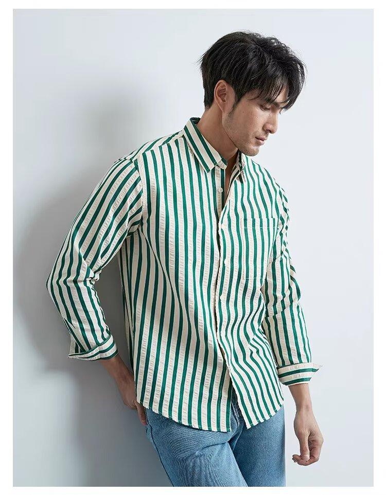Camisa de Hombre de Manga Larga a Rayas Retro Estilo Americano, Estilo Británico Moderno, Nuevo Estilo Atractivo, No Necesita Planchado, Transpirable, Combinable con Todo, Casual, de Alta Gama