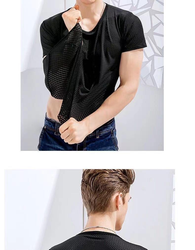 Playera Deportiva Casual de Verano de Corte Slim-Fit para Hombre, Malla de Seda de Hielo Fina Elástica de Manga Corta con Sensación Fresca