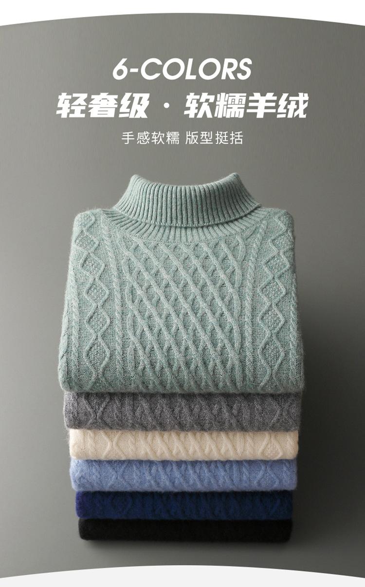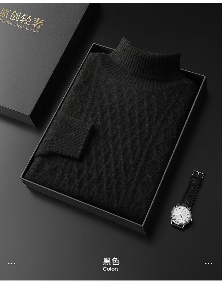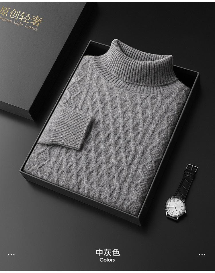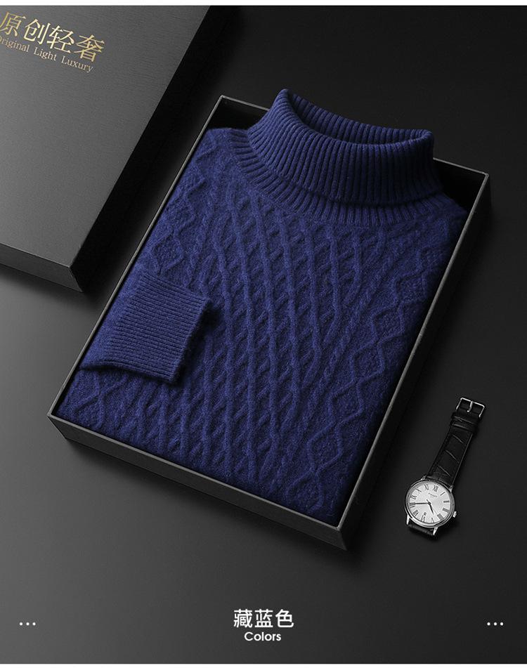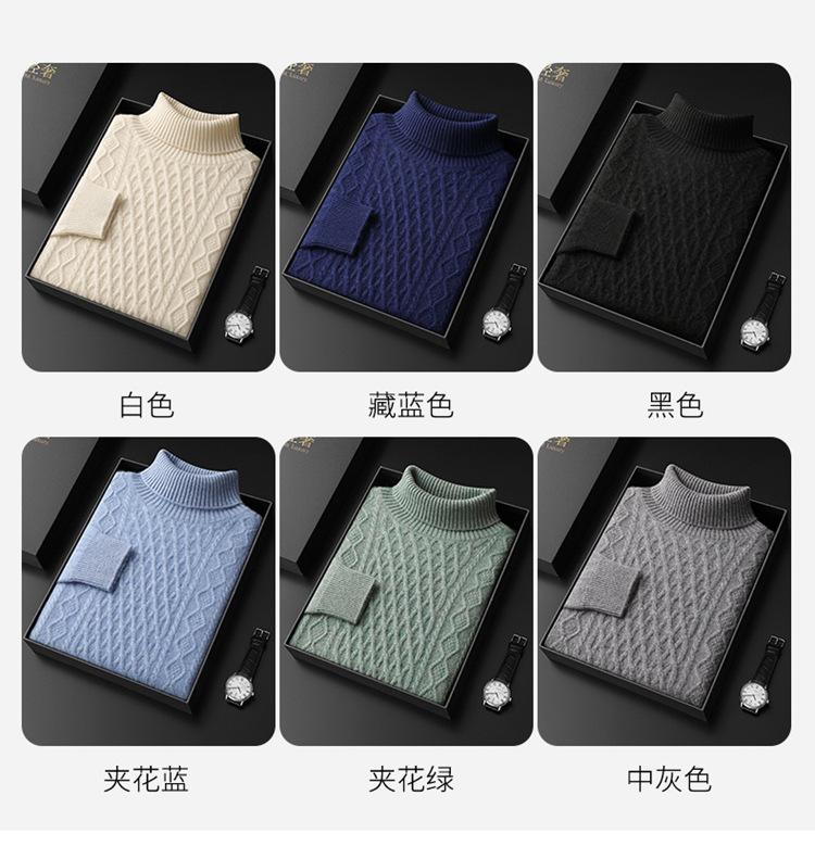 Suéter de cachemira de montaña con jacquard grueso y cuello alto para hombre, color liso, para otoño e invierno, suéter holgado y cálido.