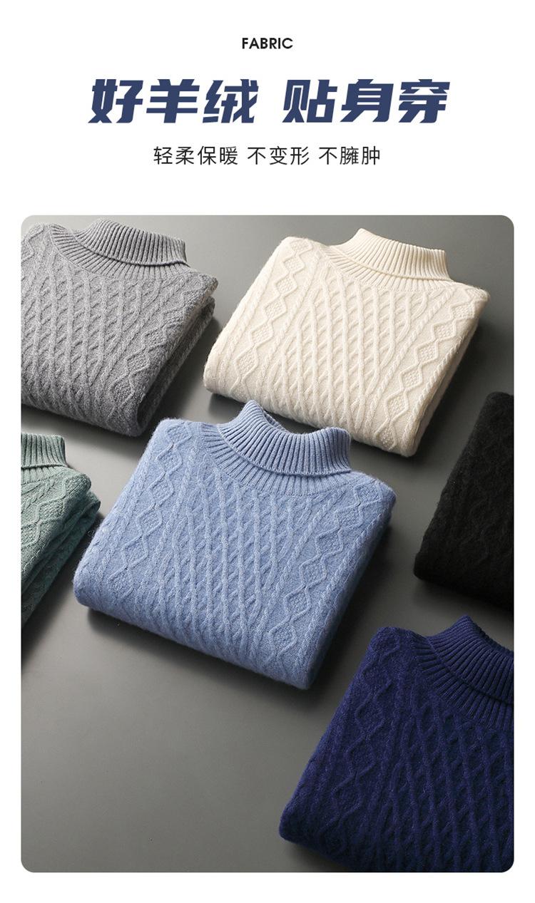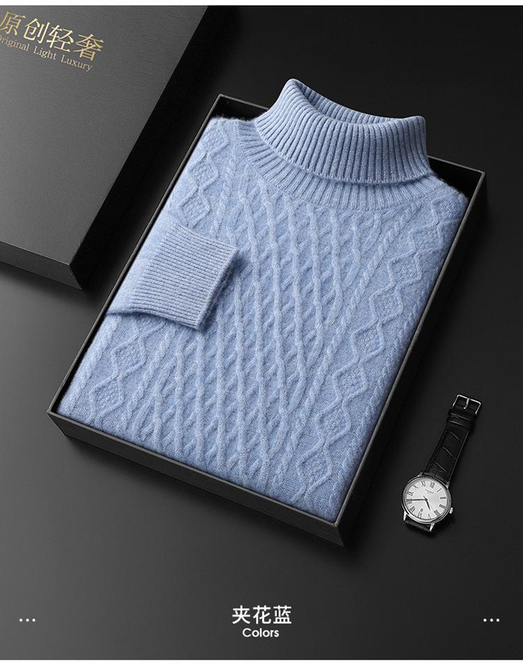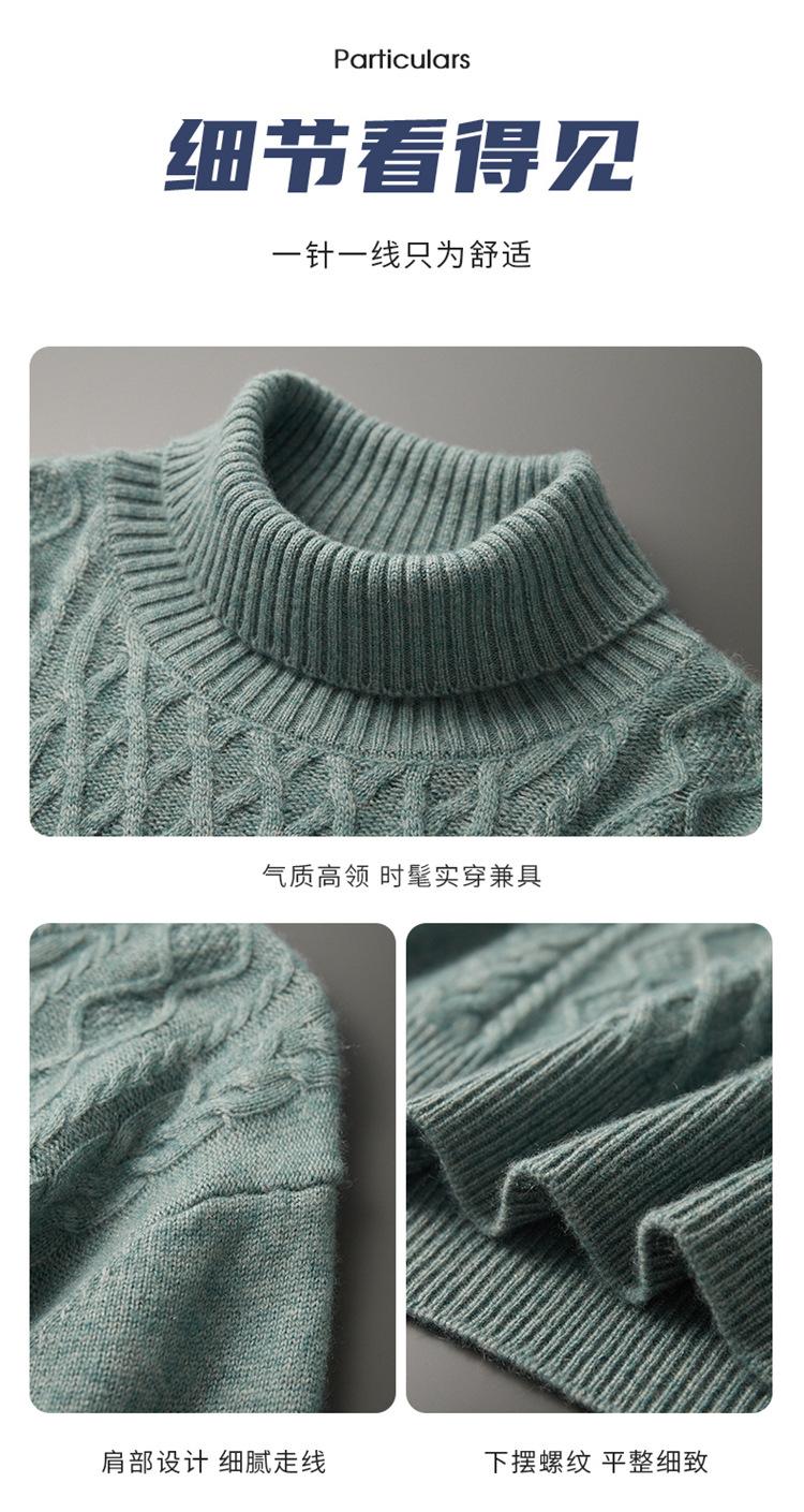 Suéter de cachemira de montaña con jacquard grueso y cuello alto para hombre, color liso, para otoño e invierno, suéter holgado y cálido.