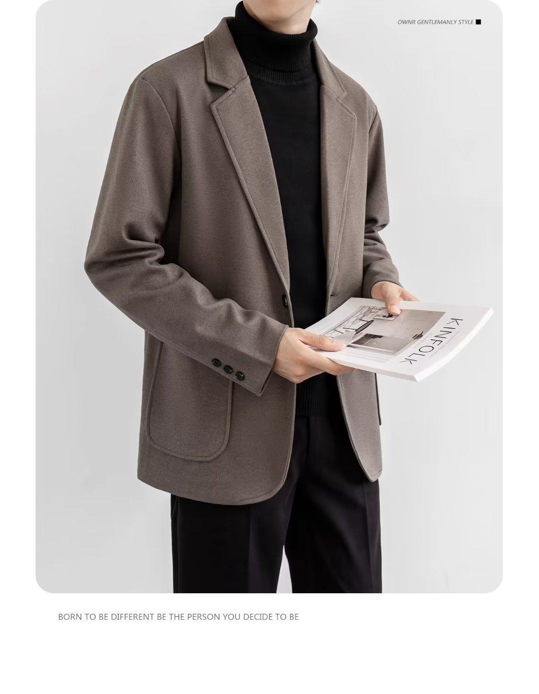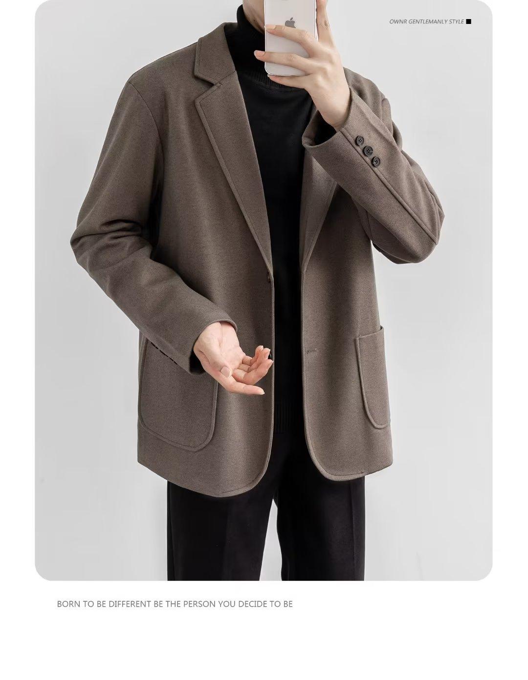 2023 traje casual pequeño para hombre, chaqueta de lana holgada de alta gama, guapo, estilo coreano, traje para hombre de primavera y otoño, doble cara