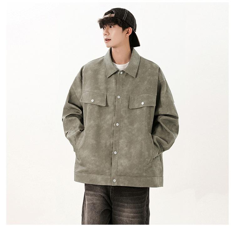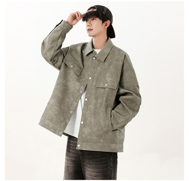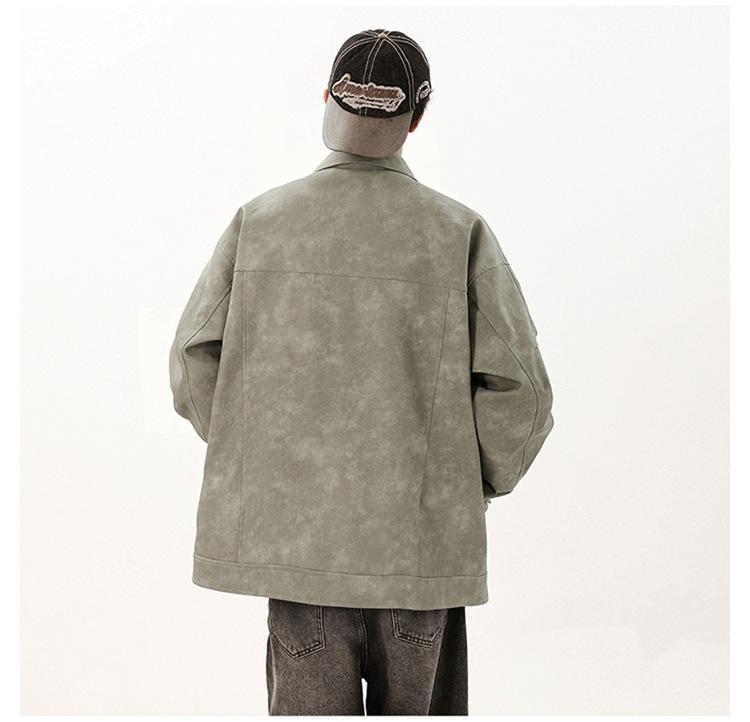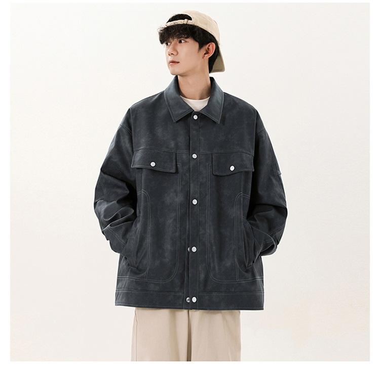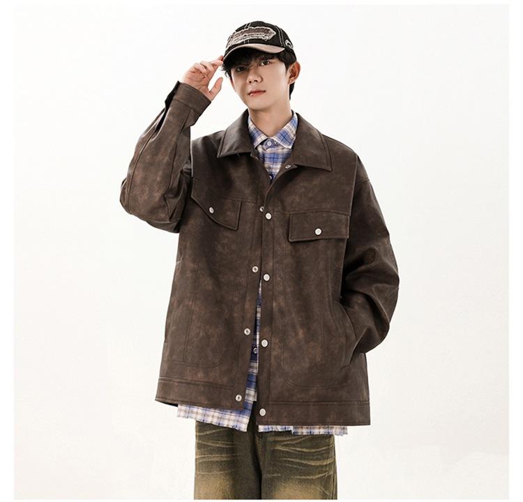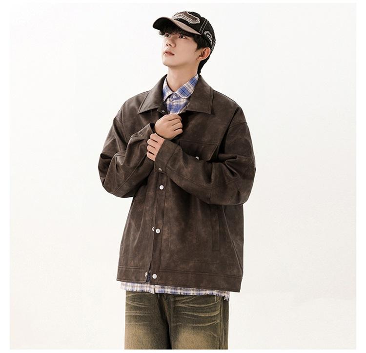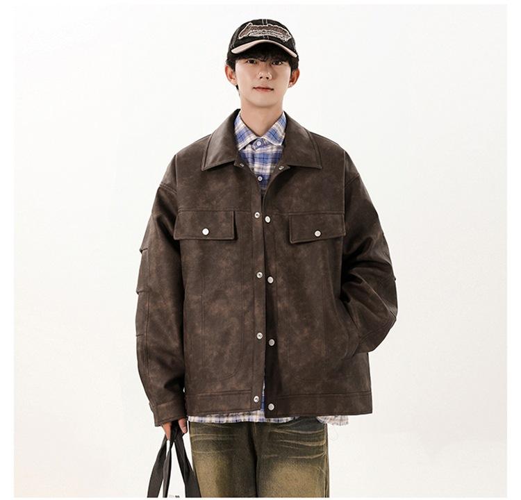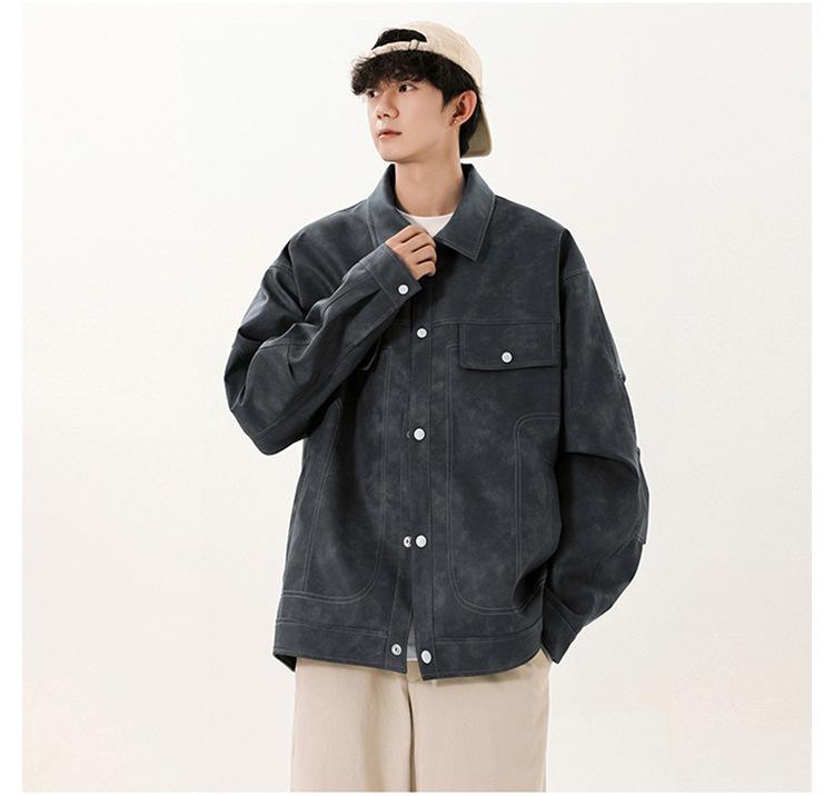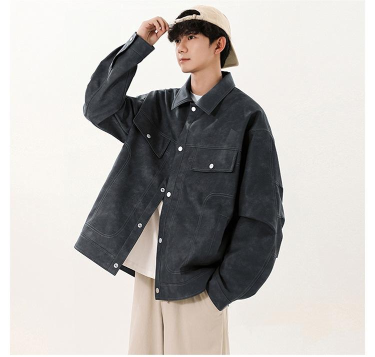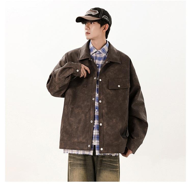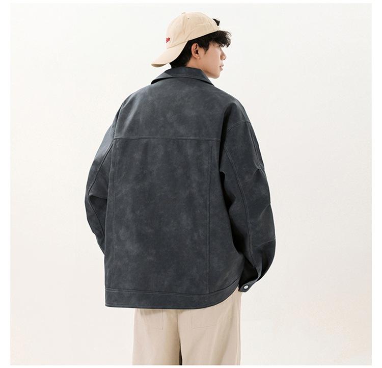 Chaqueta de cuero sintético retro para hombre, nueva chaqueta informal de moda con solapa para parejas, chaqueta holgada que combina con todo, primavera y otoño