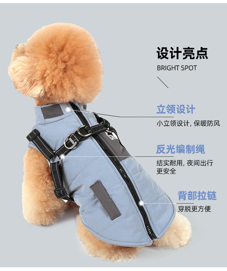 Ropa para perros nueva, otoño e invierno, resistente al viento, cuello alto, abrigo de algodón reflectante, grueso y cálido.