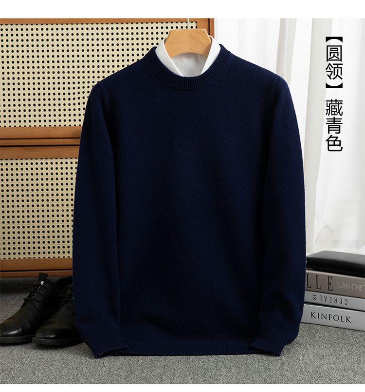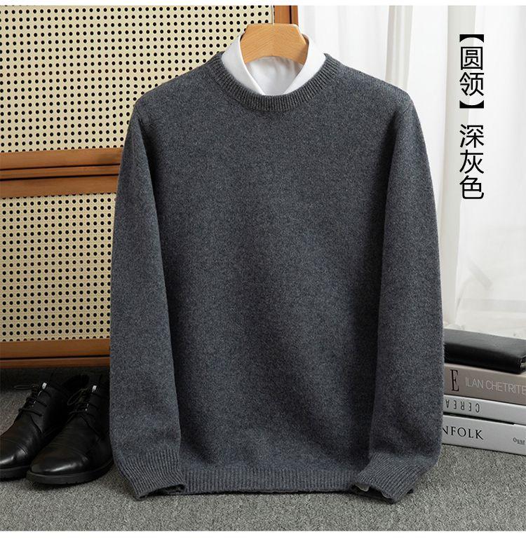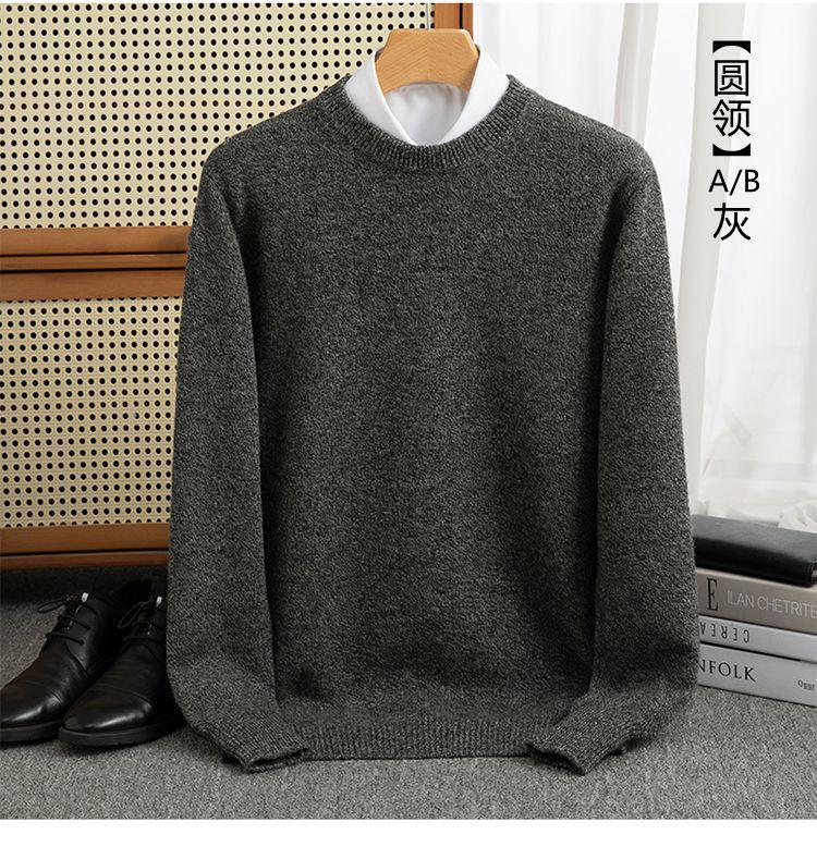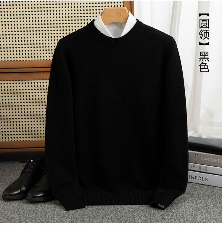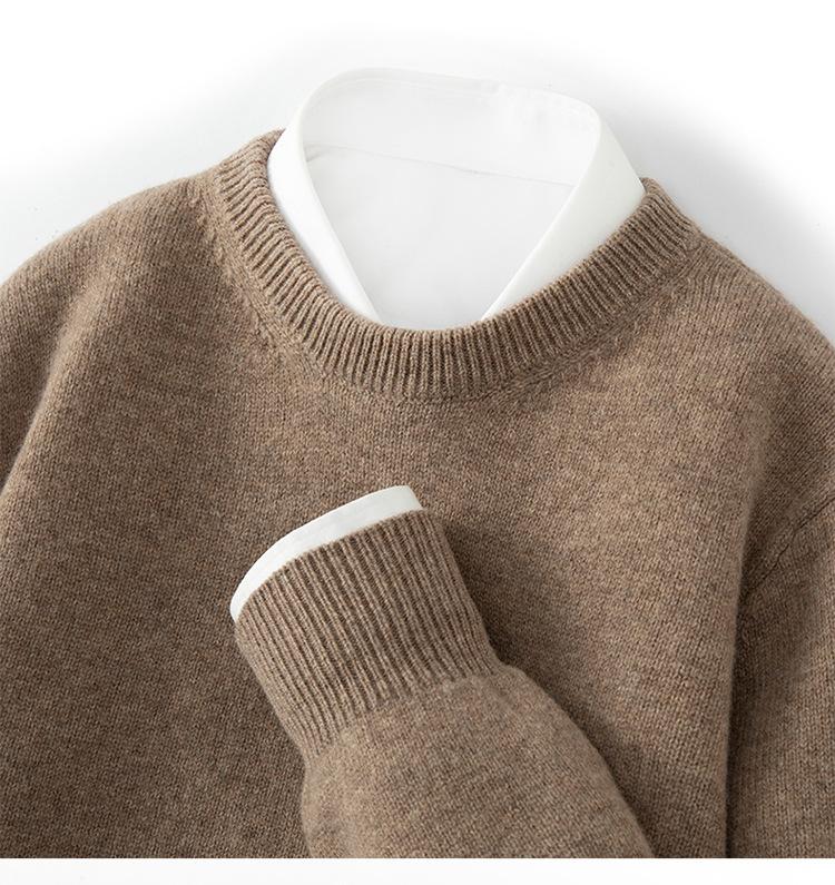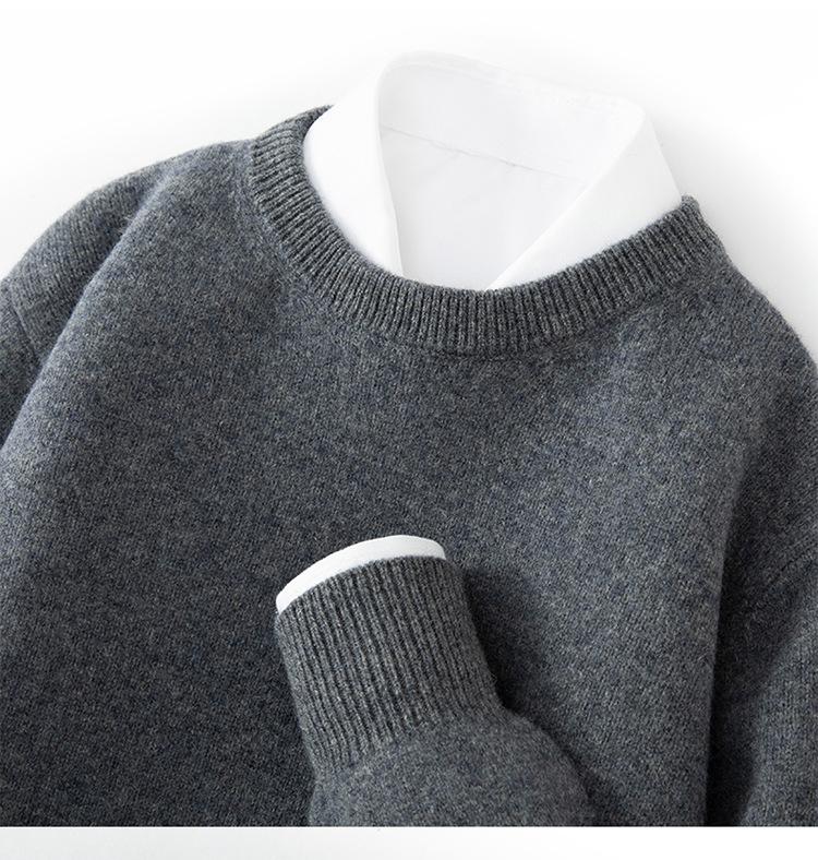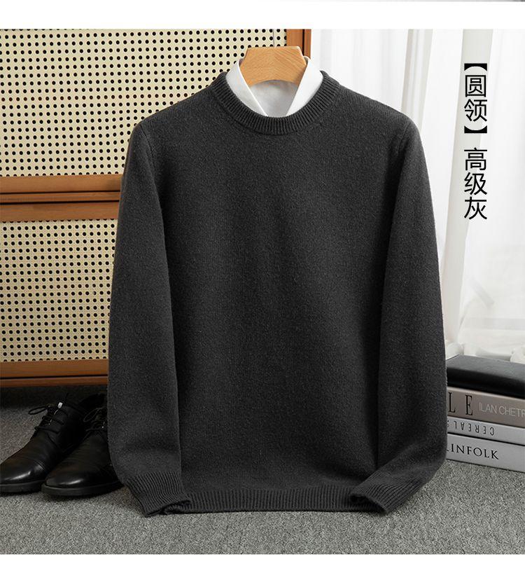 Suéter de lana pura 100% para otoño e invierno, nuevo suéter de cachemira de cuello redondo grueso de alta gama para jóvenes y casuales.