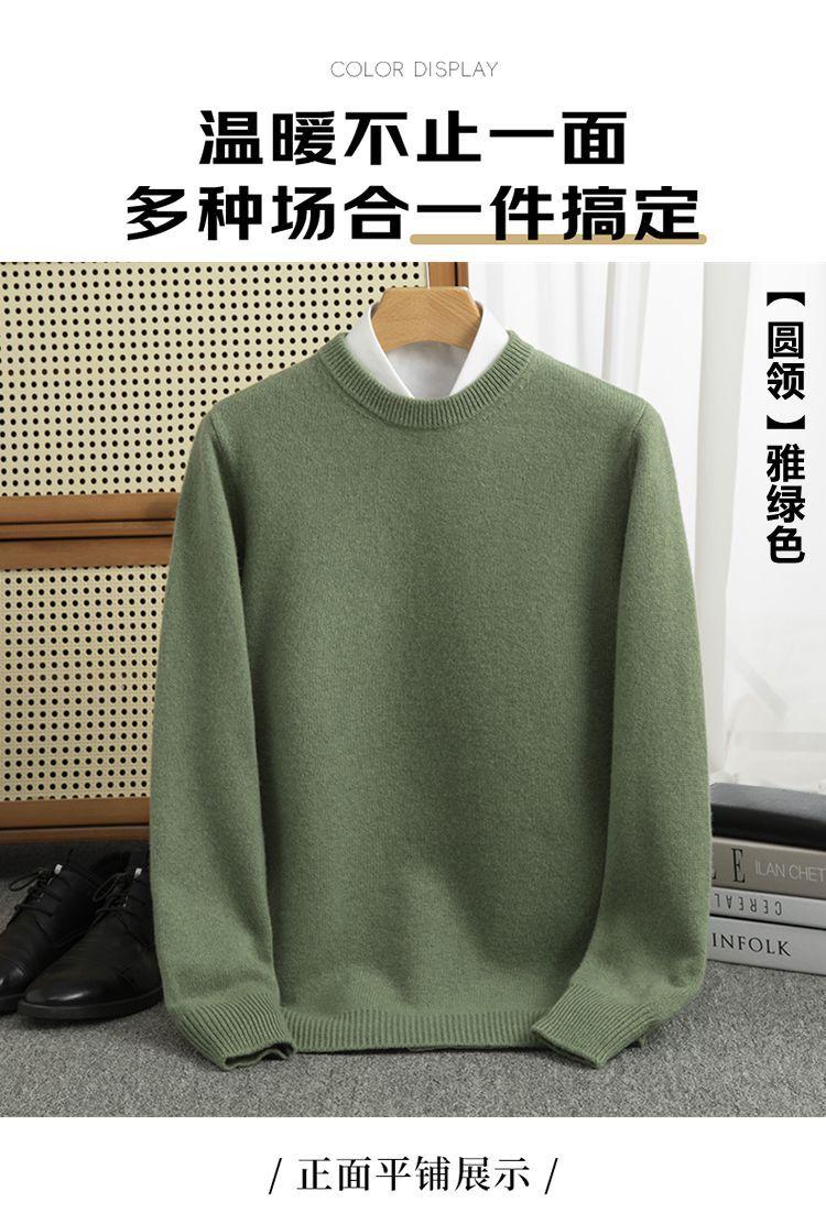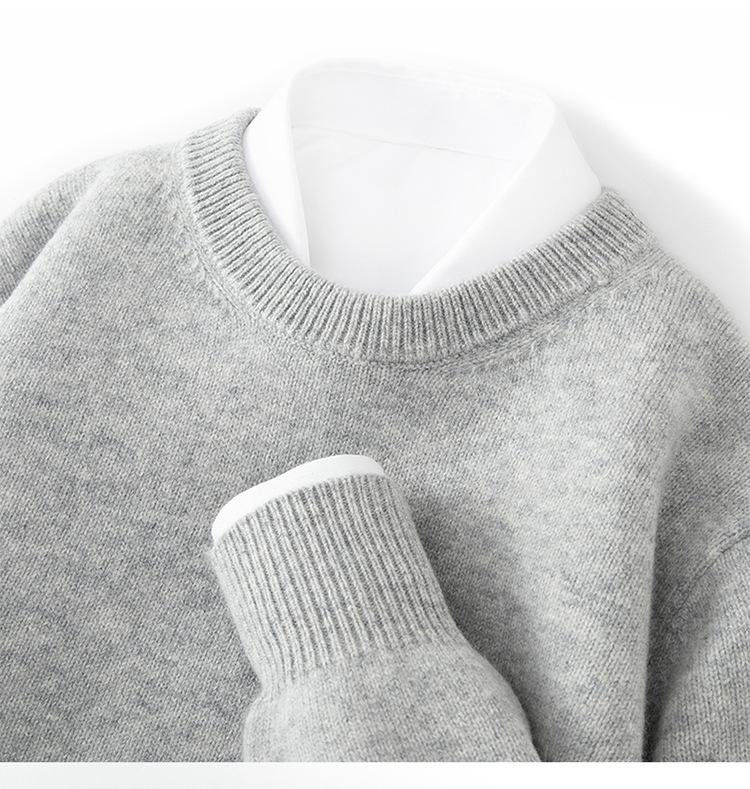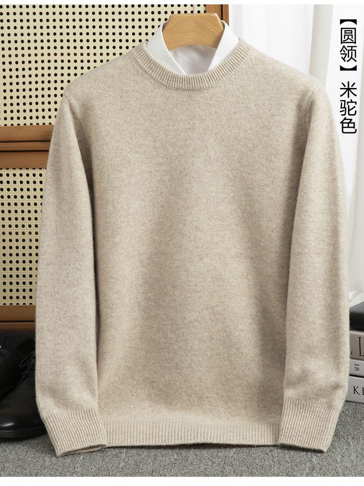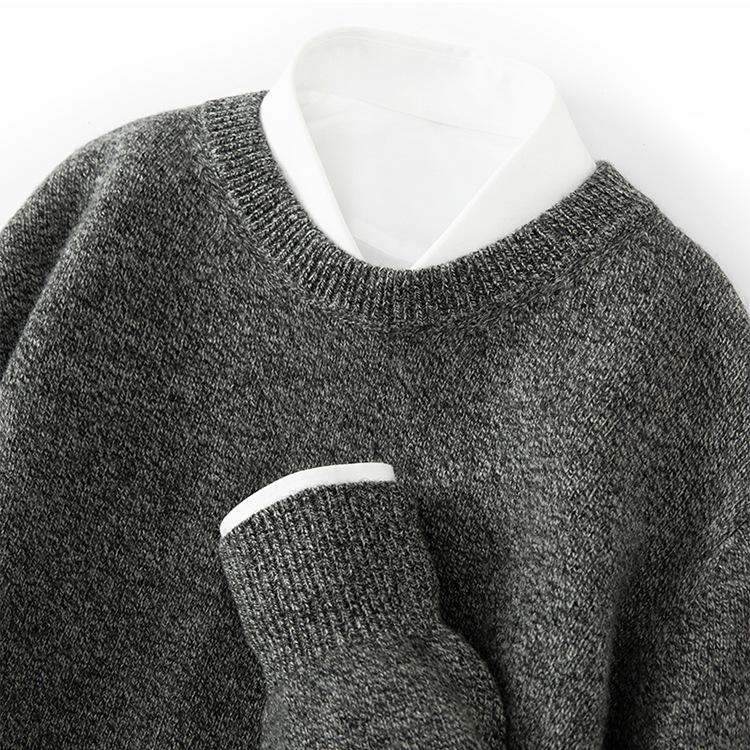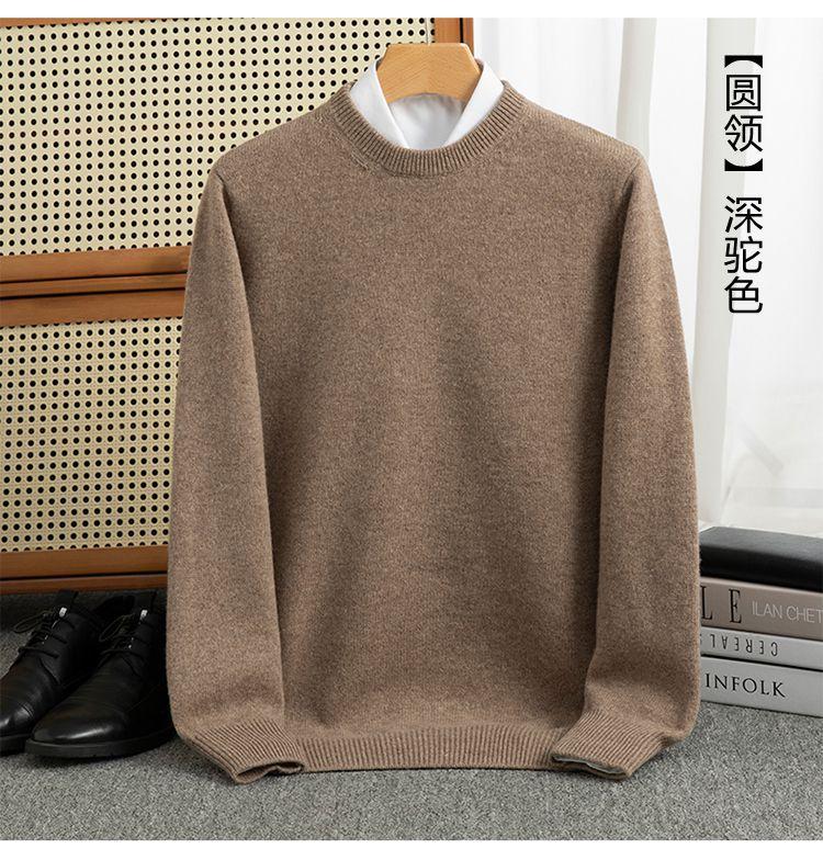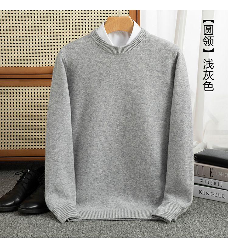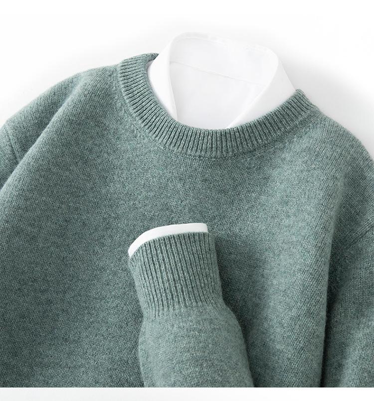 Suéter de lana pura 100% para otoño e invierno, nuevo suéter de cachemira de cuello redondo grueso de alta gama para jóvenes y casuales.