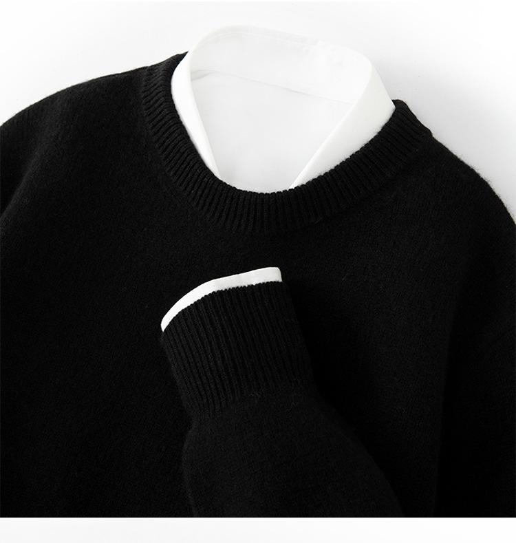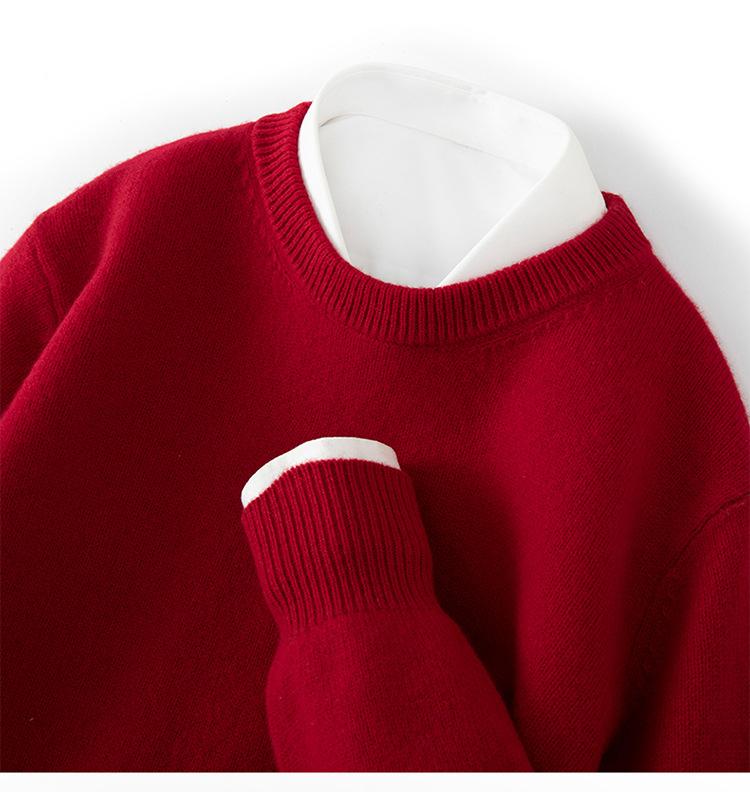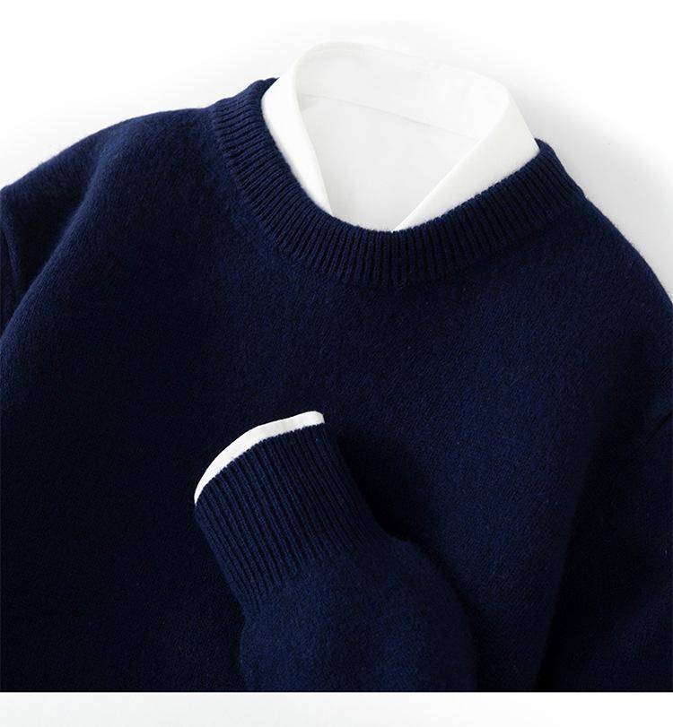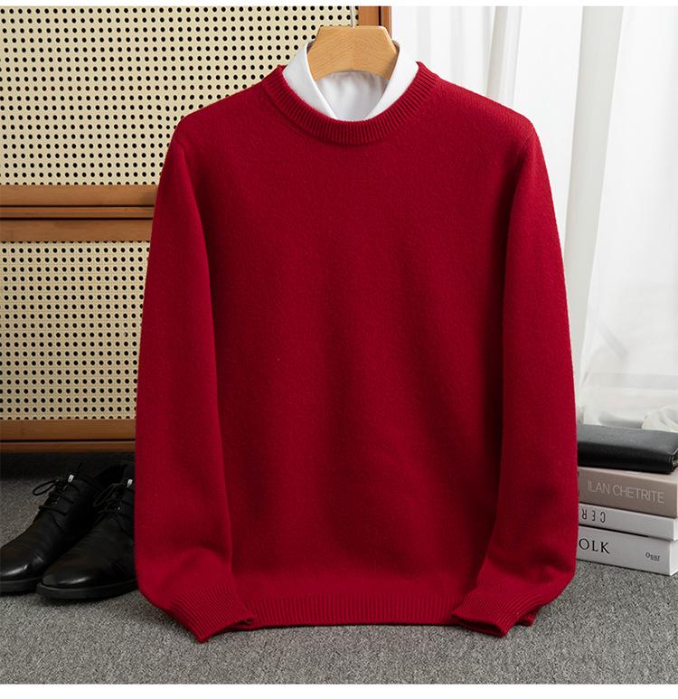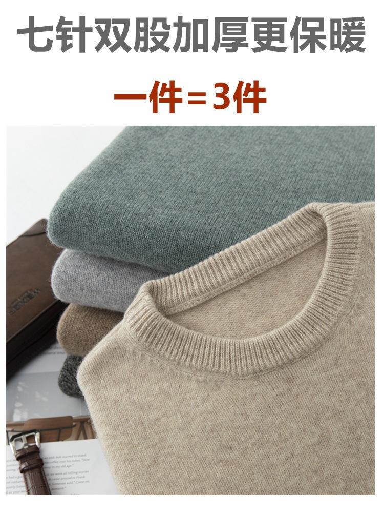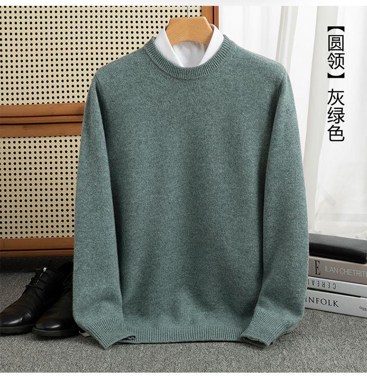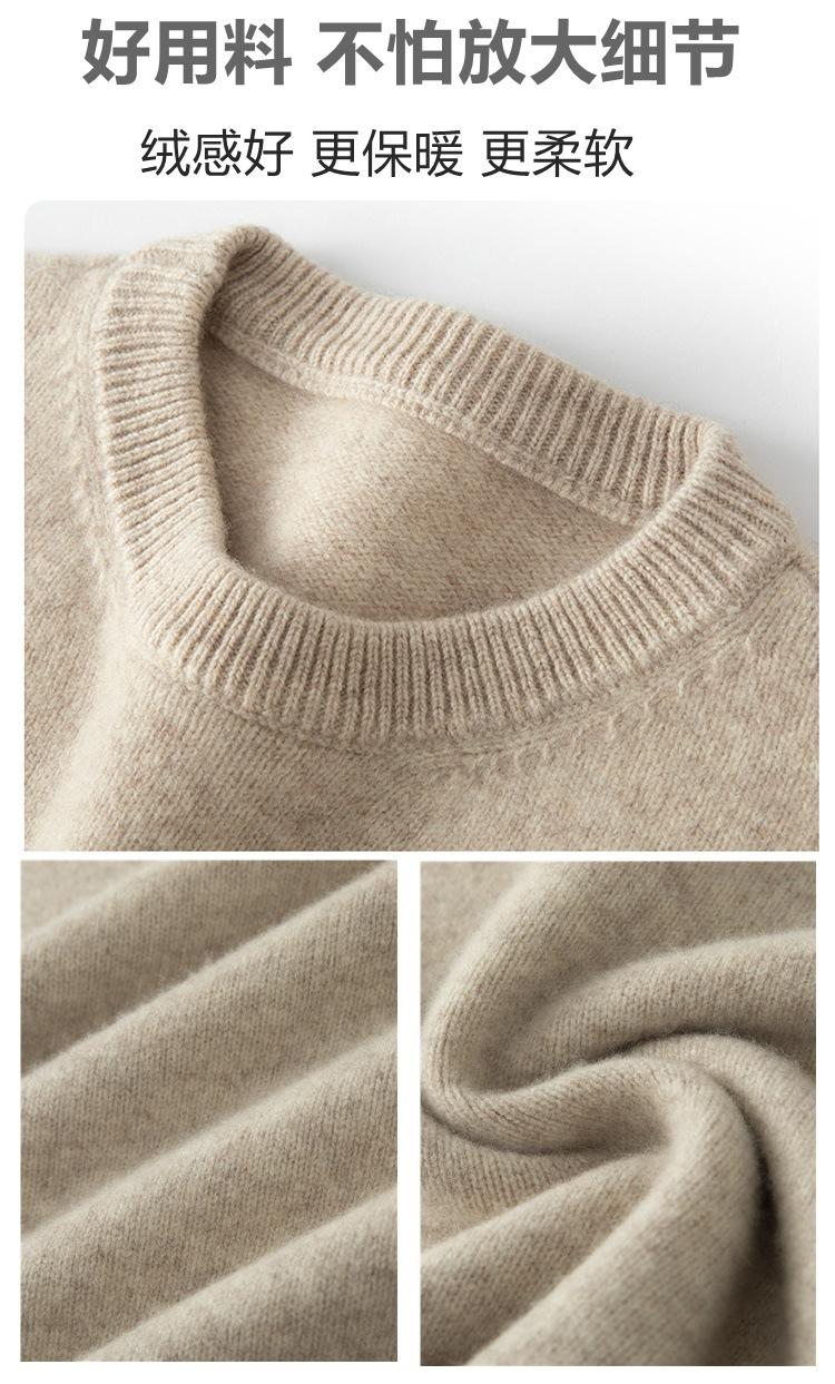 Suéter de lana pura 100% para otoño e invierno, nuevo suéter de cachemira de cuello redondo grueso de alta gama para jóvenes y casuales.