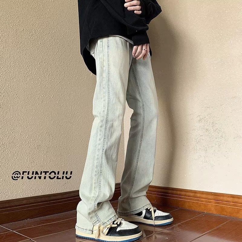 Pantalones vaqueros Micro La de estilo americano para hombre, de primavera y verano, con estilo urbano, color amarillo barro, rectos, de marca de moda, vintage, combinables con todo, casuales.