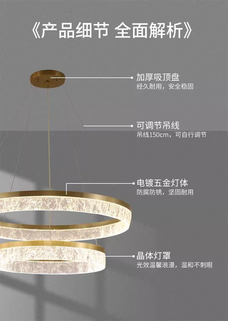 Lámpara de Araña de Sala de Estar de Lujo Ligero Diseñador Minimalista Lámpara Principal Moderna Simple Anillo Italiano 2023 Nuevas Lámparas de Restaurante