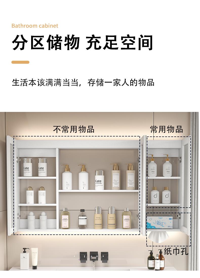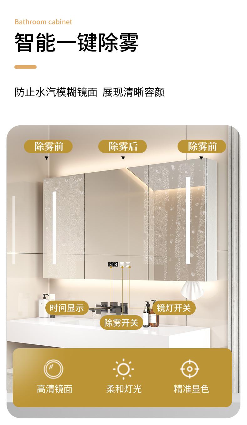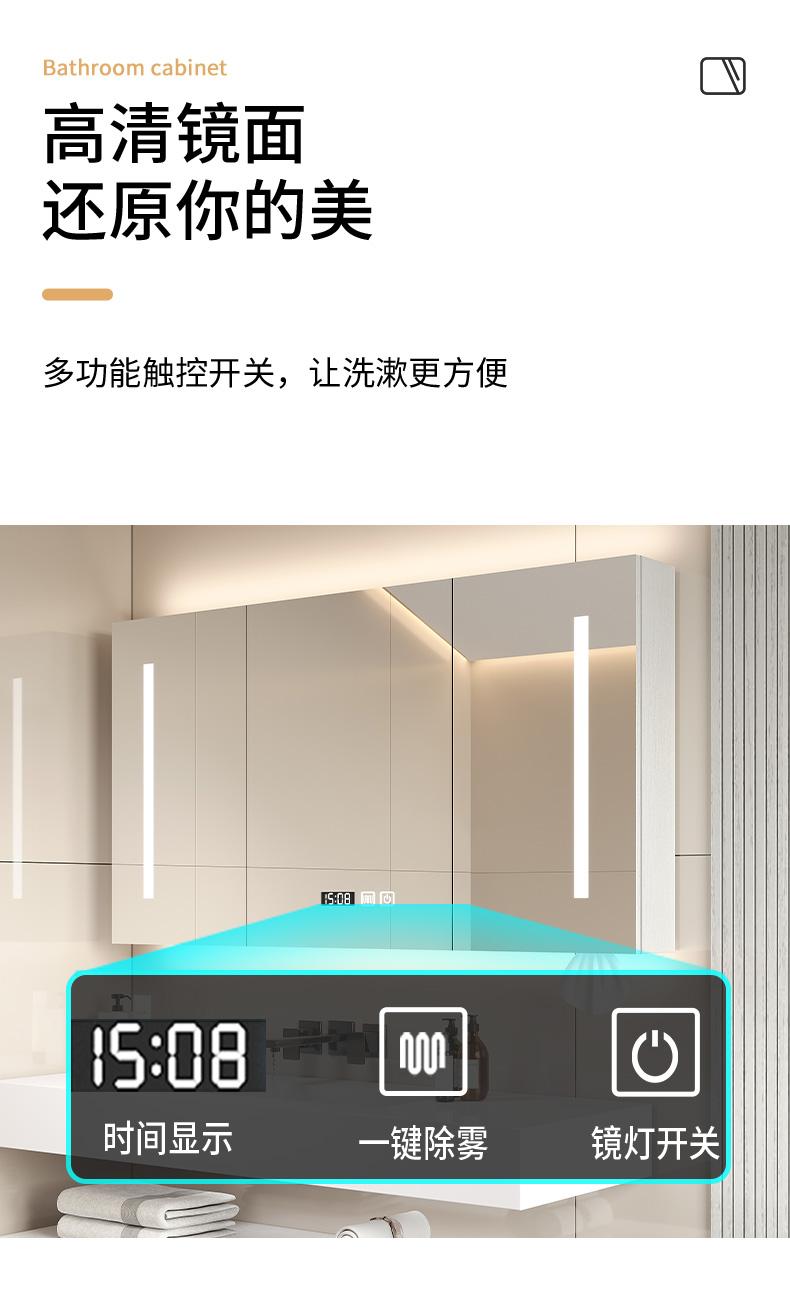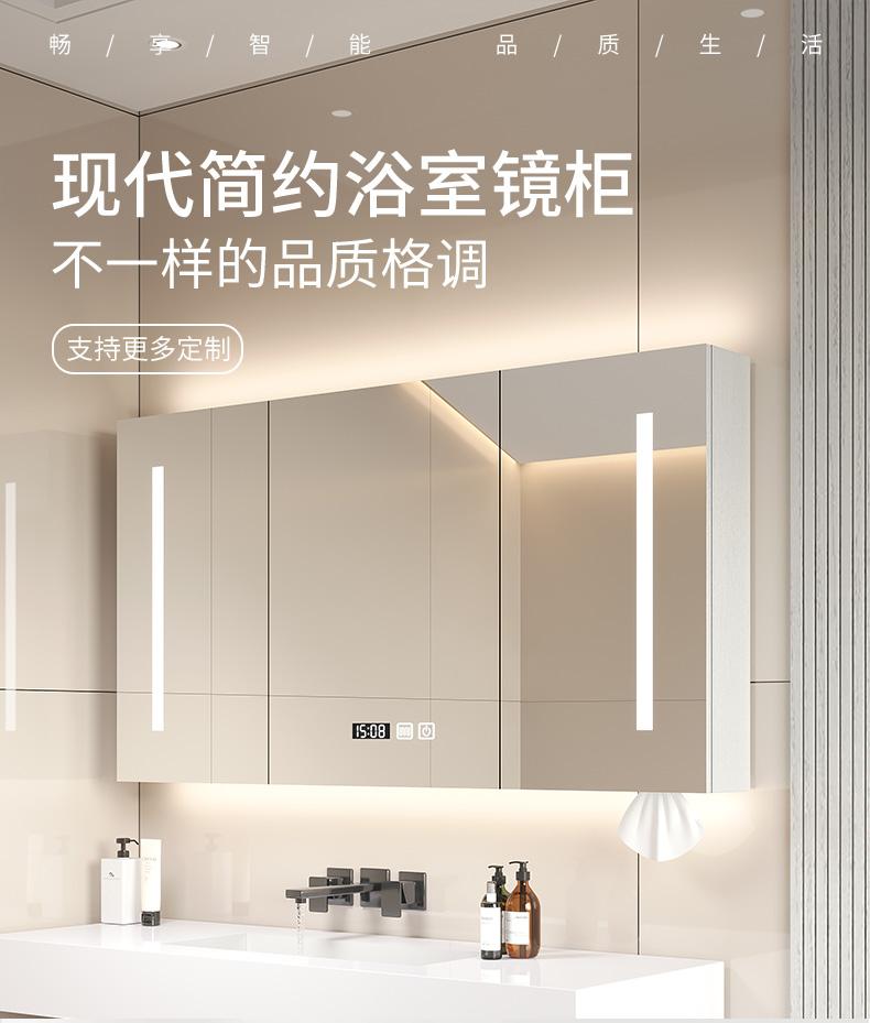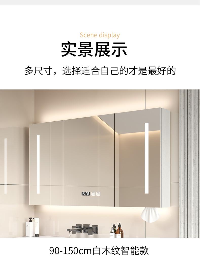 Gabinete de Espejo Inteligente de Madera Maciza para Baño, Espejo de Tocador Simple Moderno para Baño Separado Montado en la Pared, Gabinete de Espejo Montado en la Pared, Nuevo