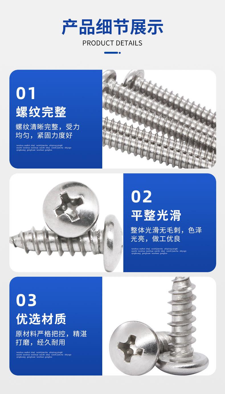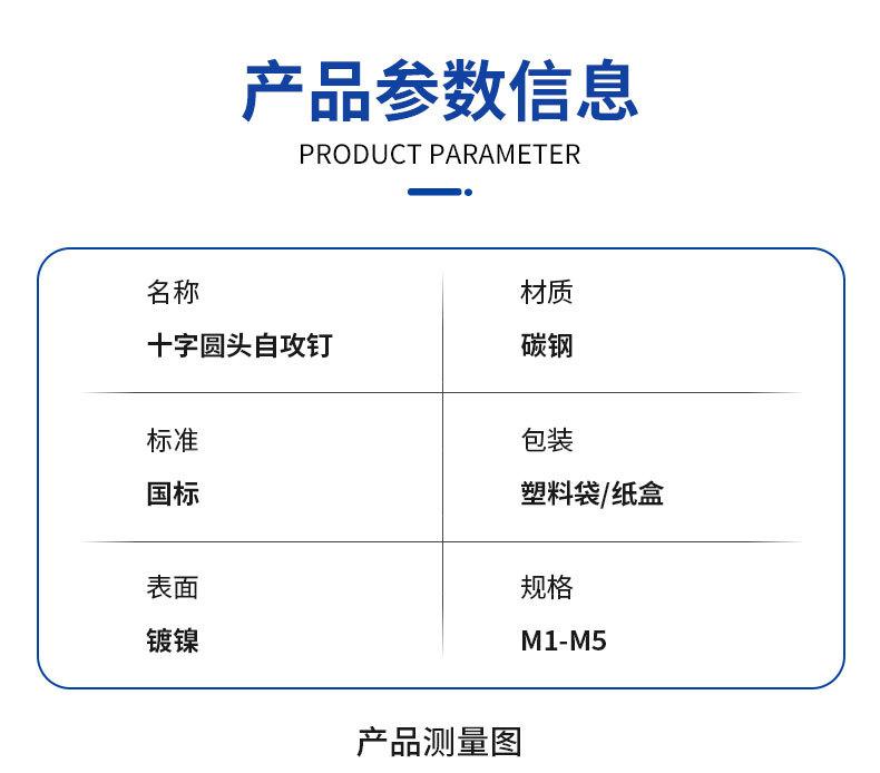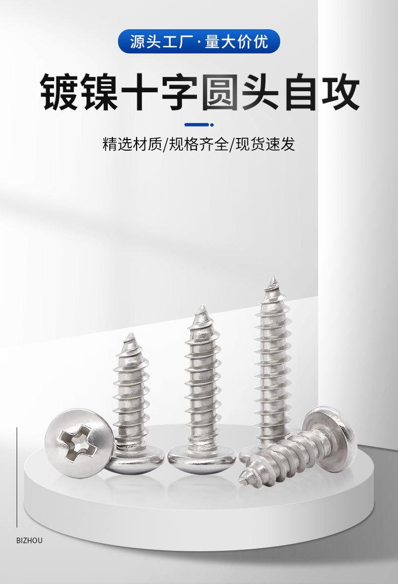 Tornillo autorroscante de cabeza redonda cruzada niquelada de hierro, tornillo de cabeza plana PA, tornillo de cola puntiaguda, tornillo pequeño de cabeza Yuan, tornillo para madera M1M2M3M4M5