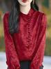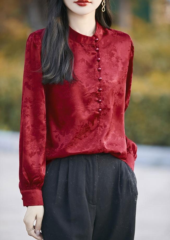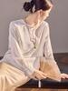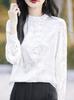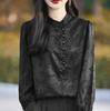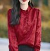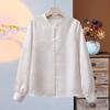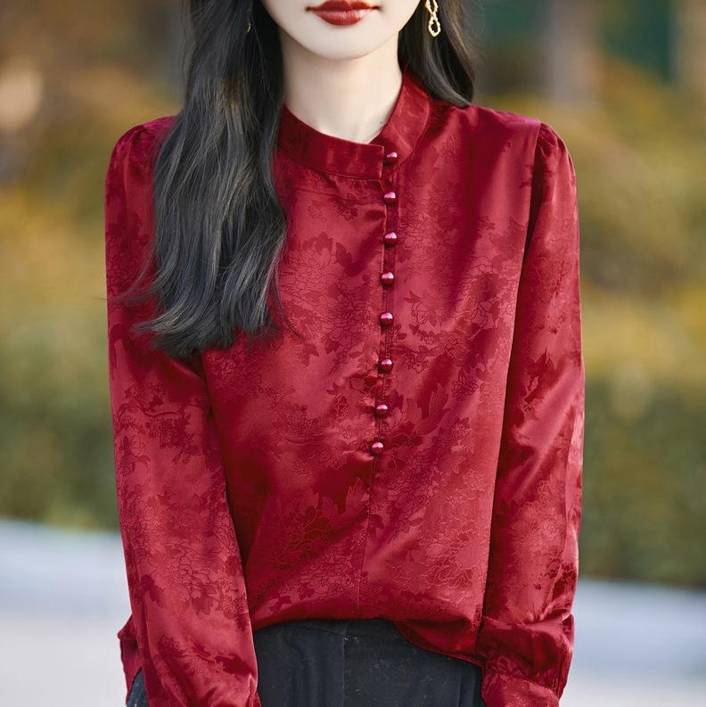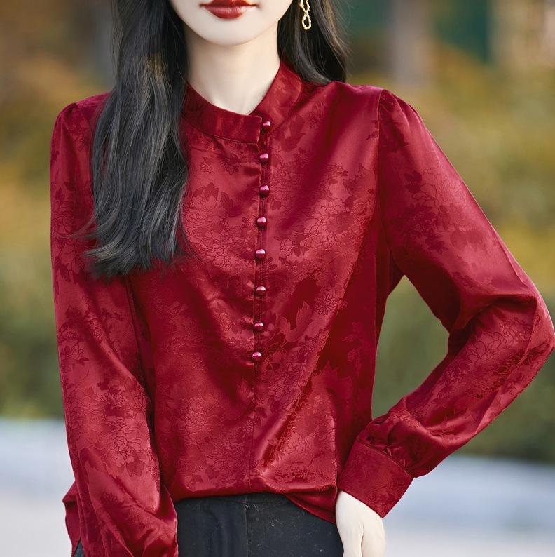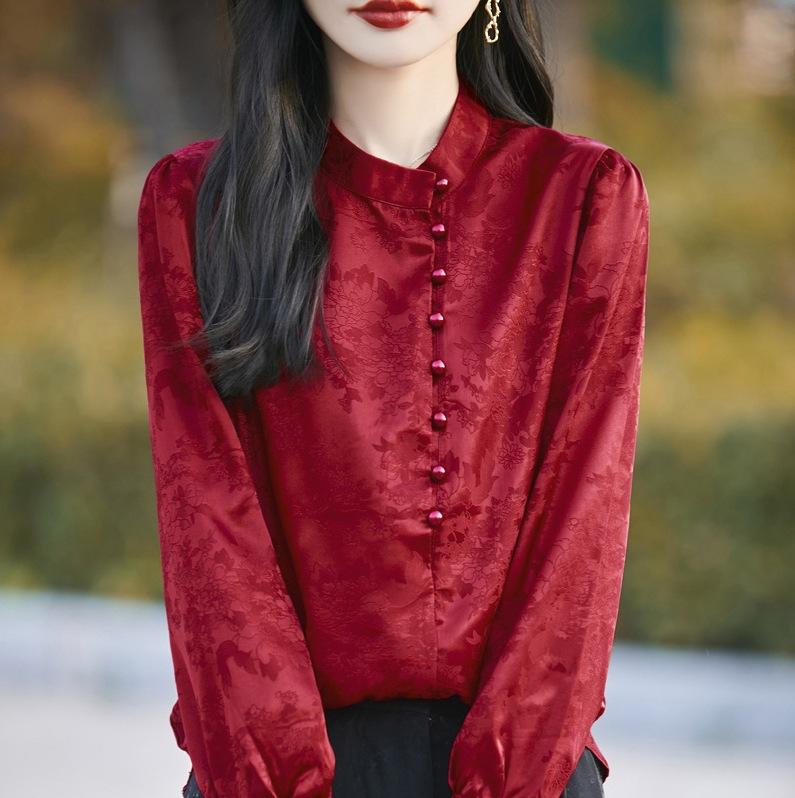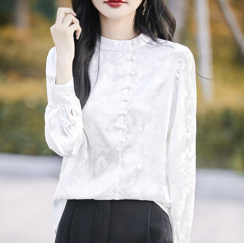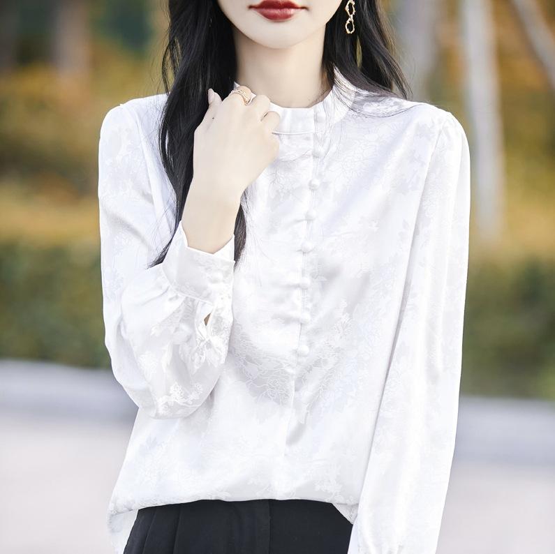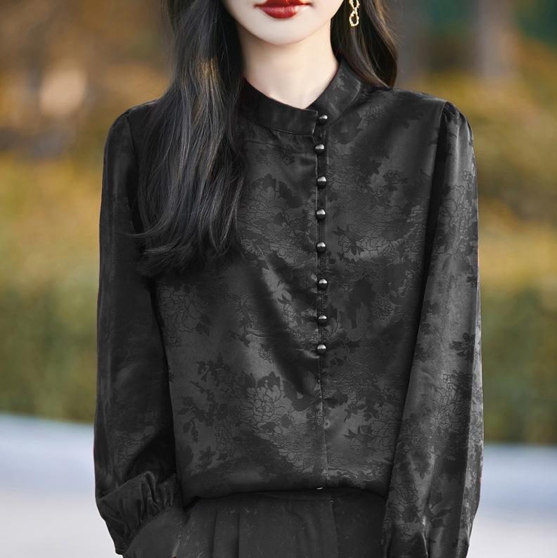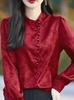 Camisa de estilo nacional chino para mujer, primavera y otoño 2025, nueva, de cuello vertical pequeño, de alta gama, de manga larga, camisa pequeña