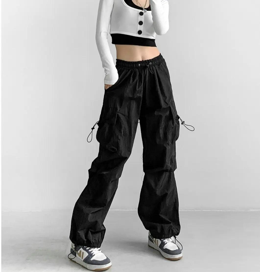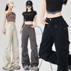 Monos funcionales de cintura alta estilo chica sexy estilo americano para hombre y mujer, diseño con sensación de suciedad, pantalones casuales frescos, pantalones holgados de pierna ancha.